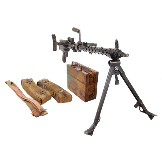 Original German WWII MG 13 Display Light Machine Gun with Carry Handle, Magazine Pouch Set, and Empty Normandy Camo Magazine Case - Maschinengewehr 13
