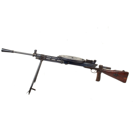 Original British WWII 1943 Dated Bren MkII Display Light Machine Gun by INGLIS Serial 9T2243 with Live Barrel, 1942 Dated MkII Tripod, and Magazine