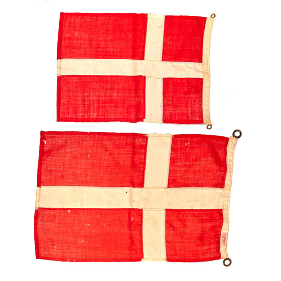 Original Danish WWII Era Pair of Danish Flags with Grommets - 11 x 16” & 13 x 21”