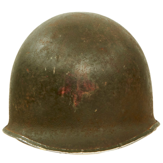 Original U.S. WWII PTO Medic Marked 1943 M1 McCord Front Seam Fixed Bale Helmet With CAPAC Liner