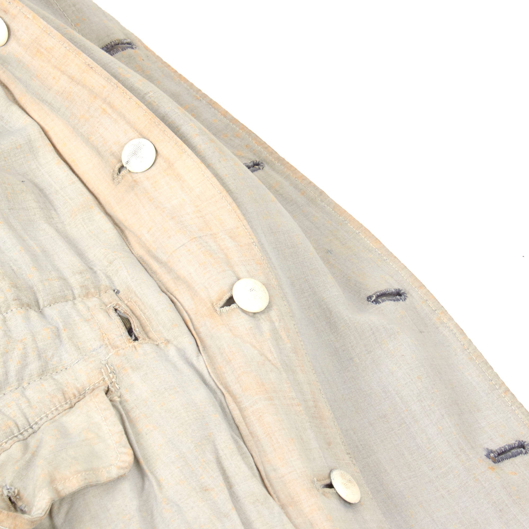 Both the hood and bottom drawstrings are present and move easily. The waist adjustment bands are still present inside the waist sleeve, though there are no buckles on the end, so we assume they would be tied together. The six button main closure retains all buttons on both sides, and the pockets retain theirs as well. The paint is well retained on both sides, which is definitely a rarity.