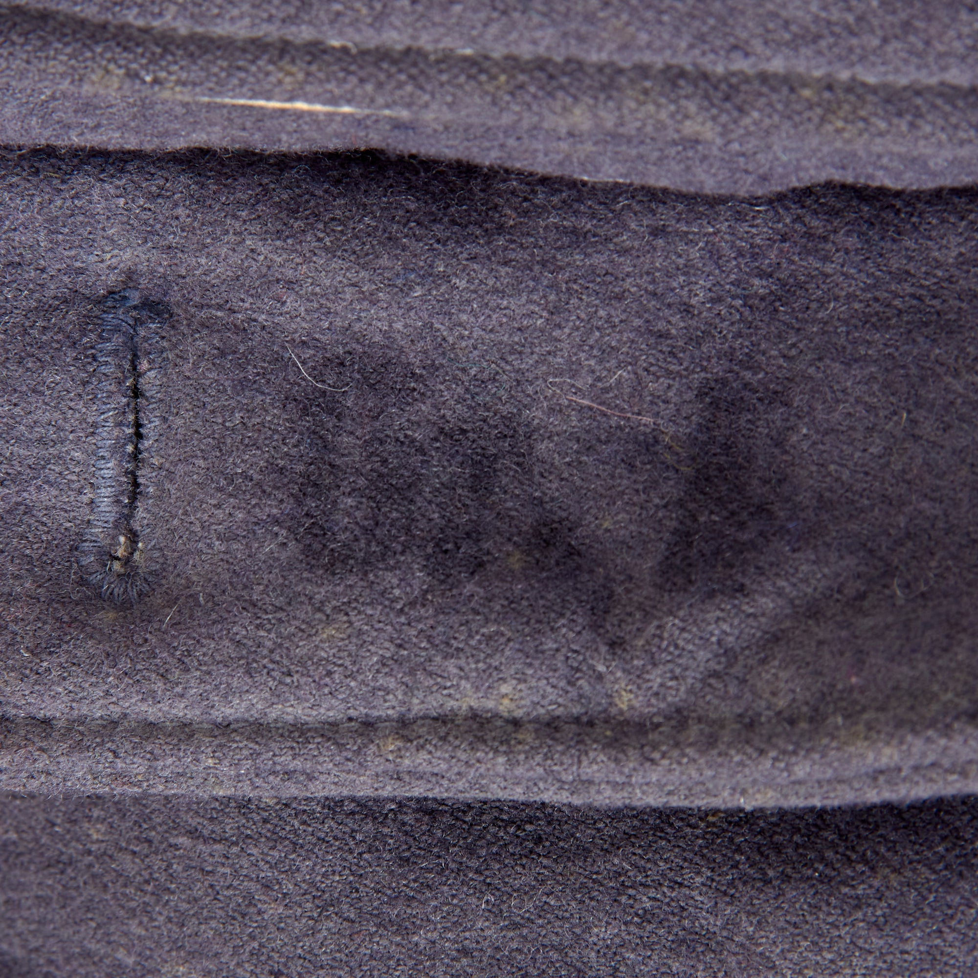Here we have a great Heer Army Winter Parka, one of many items developed for the cold eastern front during WWII. As with many of the "winter" items, they are reversible, with a wool "Mouse Grey" side, and a cotton white side, which is more off white now due to wear and age toning. This looks to be the "second pattern", which features "storm flaps" on the front closures for both sides, which helped prevent cold air and wind infiltration between the buttons. In this case the markings were stamped underneath the wool side storm flap with ink, so unfortunately the maker name cannot be read, however we can read the Gr. I, marking, for "Size 1", though we do not know if that is a larger or smaller size.