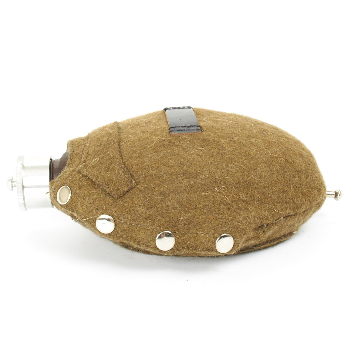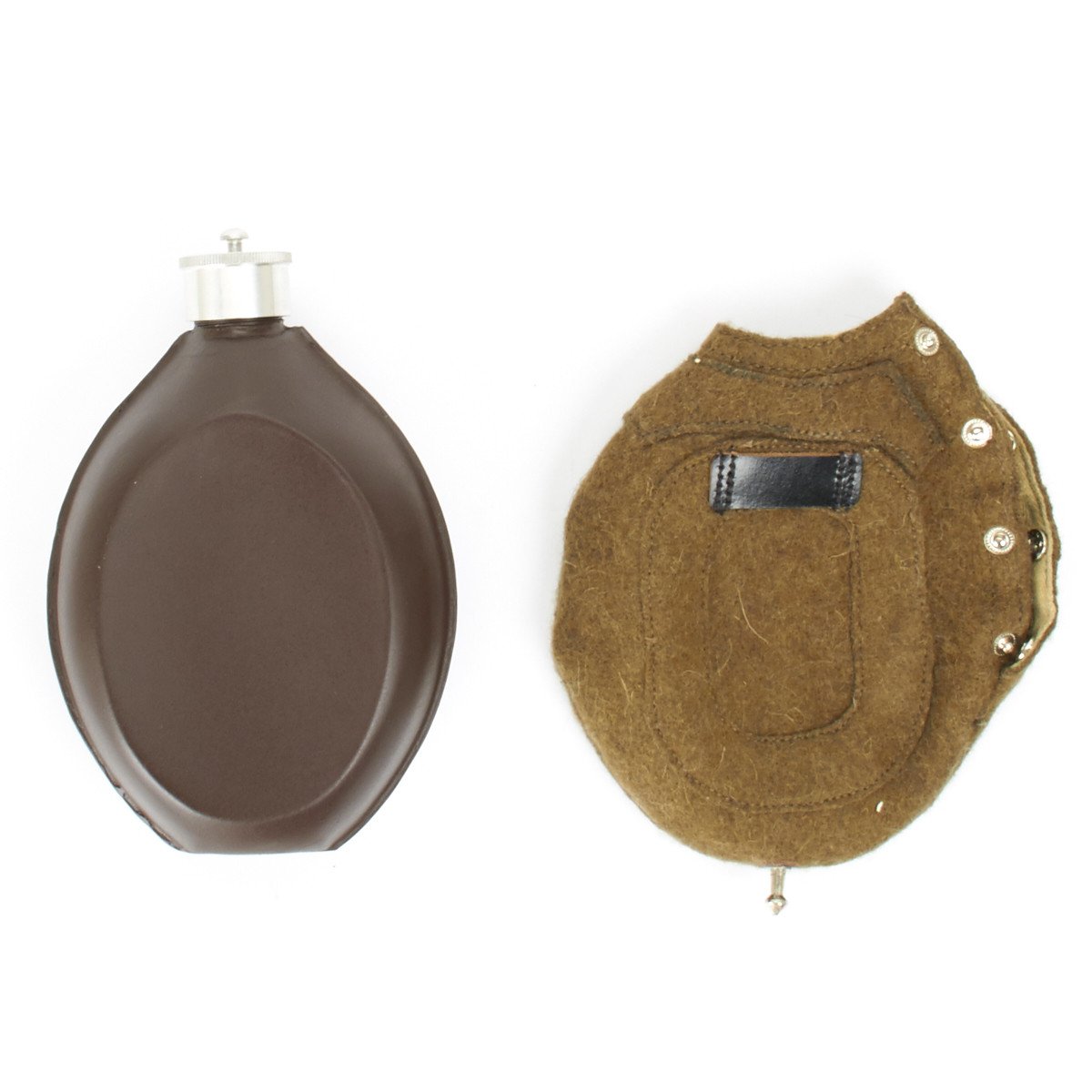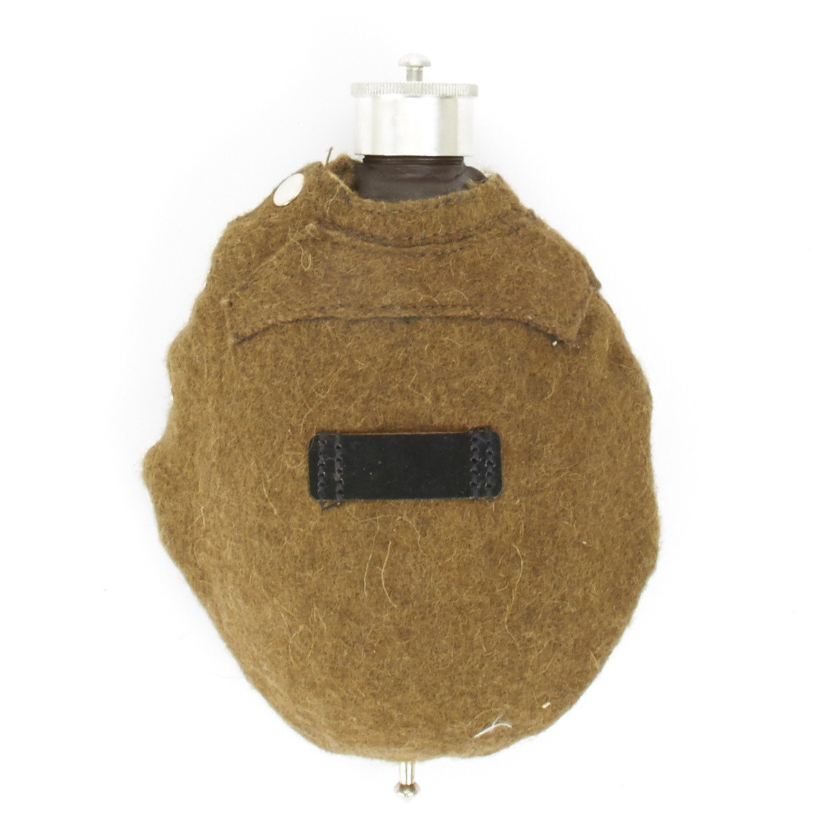 IMA has brought the first and only reproduction Model 1944 (M-44) Canteen to the collectors market. Featuring a the correct red lacquer plate 0.75 liter canteen body (be sure to sanitize before drinking), aluminum screw top cap, complete with wool and leather constructed cover featuring correct snaps. Perfect for display or reenactments. Canteen cup and skeletal carrier are not included.