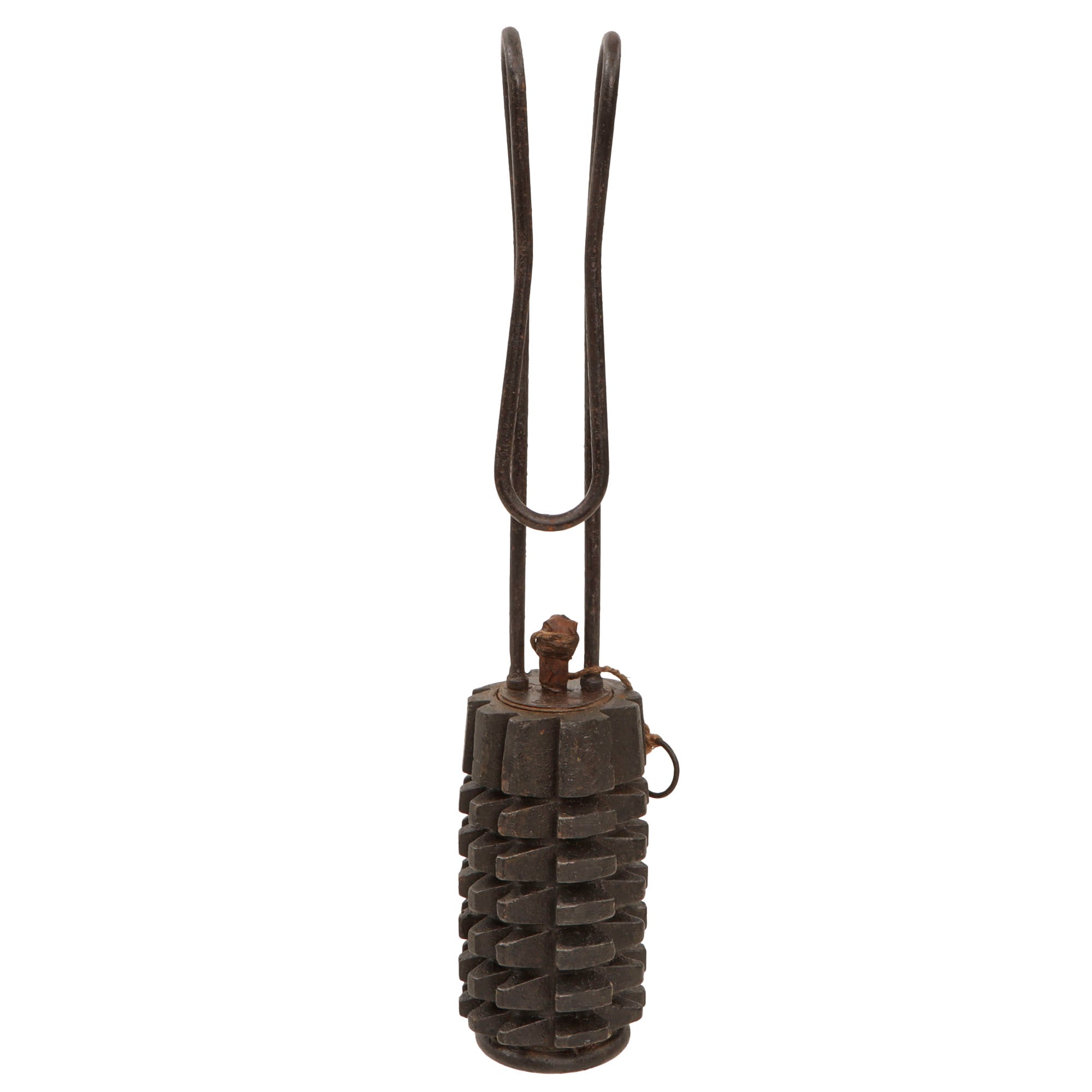 The hand grenade example is staked across the plug of the wire handle. But this also could have been a configuration made in the field, depending on need. (A useful feature). All things considered, this seems to be a pretty versatile design that was easy to manufacture. One significant drawback however is its extreme weight and cumbersome size.