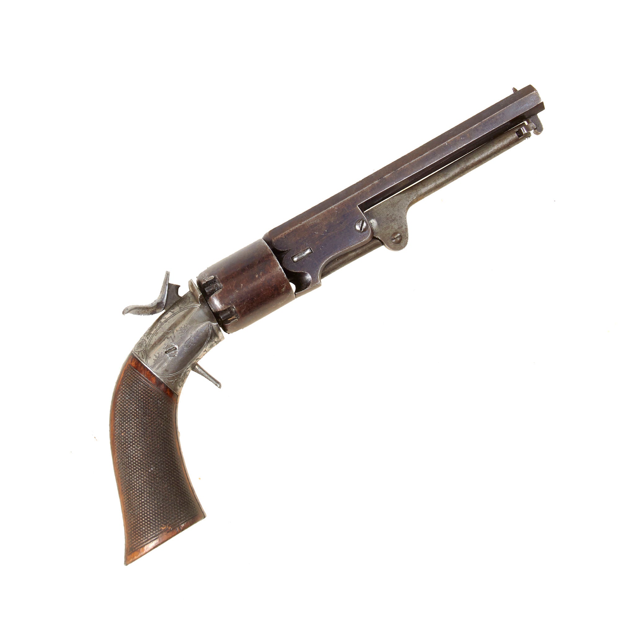 A rare, historically significant firearm combining Belgian artistry, American mechanical influence, and early Colt-licensed technology—a standout piece for advanced collectors of 19th-century percussion revolvers.