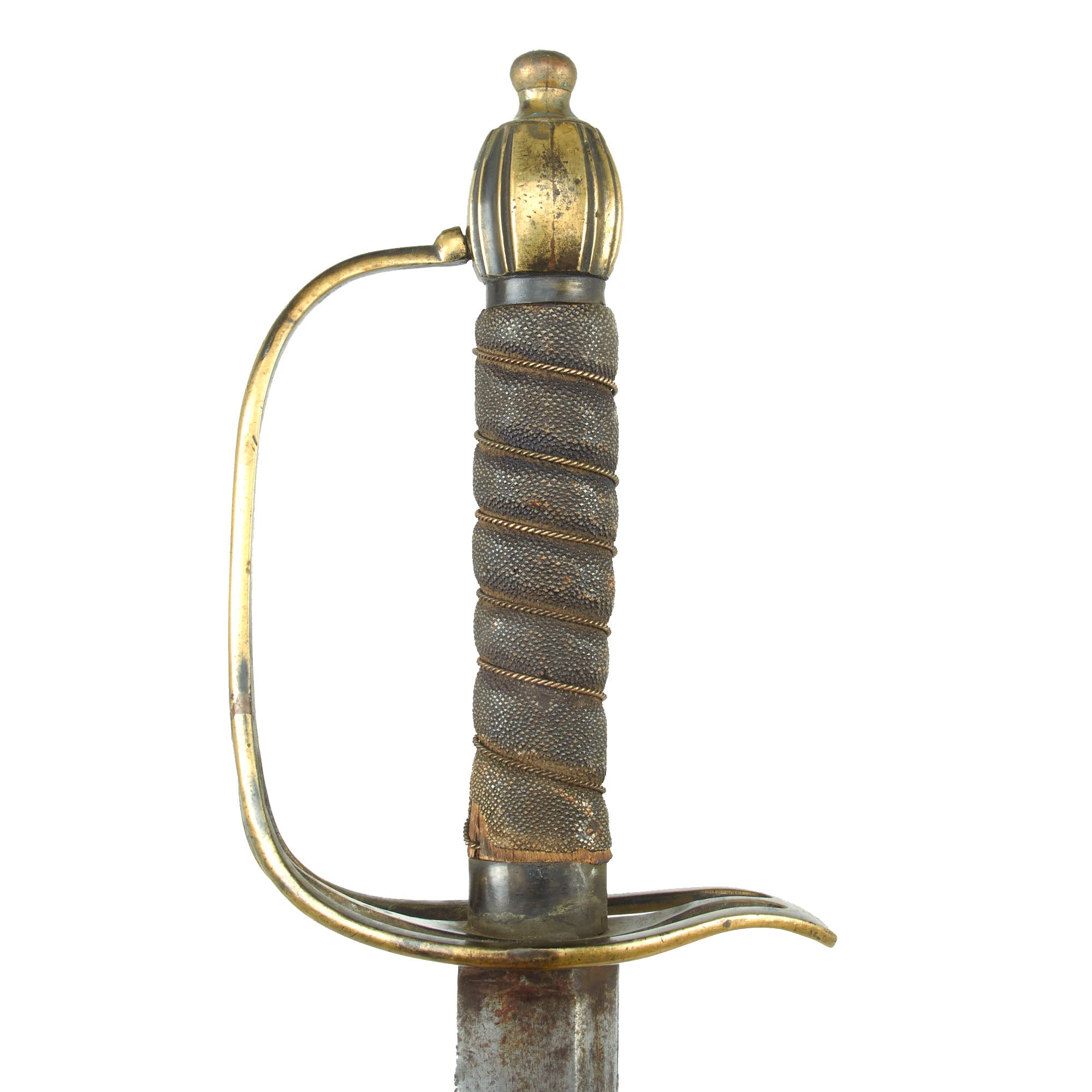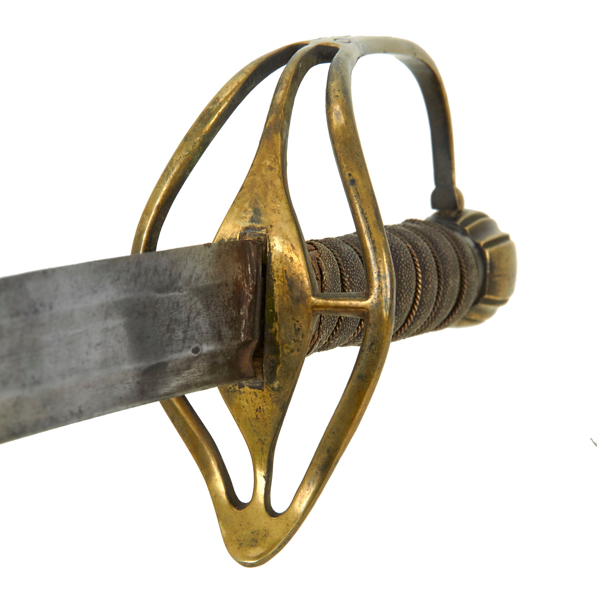 Original Item. One-of-a-Kind. Light dragoons were established in the British Army in 1756, when a troop was authorized to be raised in each dragoon regiment, with entire regiments being converted or raised as light dragoons beginning in 1759. These light horsemen were to be armed with “a straight cutting sword, 34 in. in the blade, with a light hilt, without a basket" per the original 1756 warrant, but from period iconography of light dragoons from c.1759-1763, it can be established that most were furnished with slotted D-guards and both straight or curved blades. Before 1788, the British had no universal patterns of Cavalry saber, each regiment choosing the style it favored.