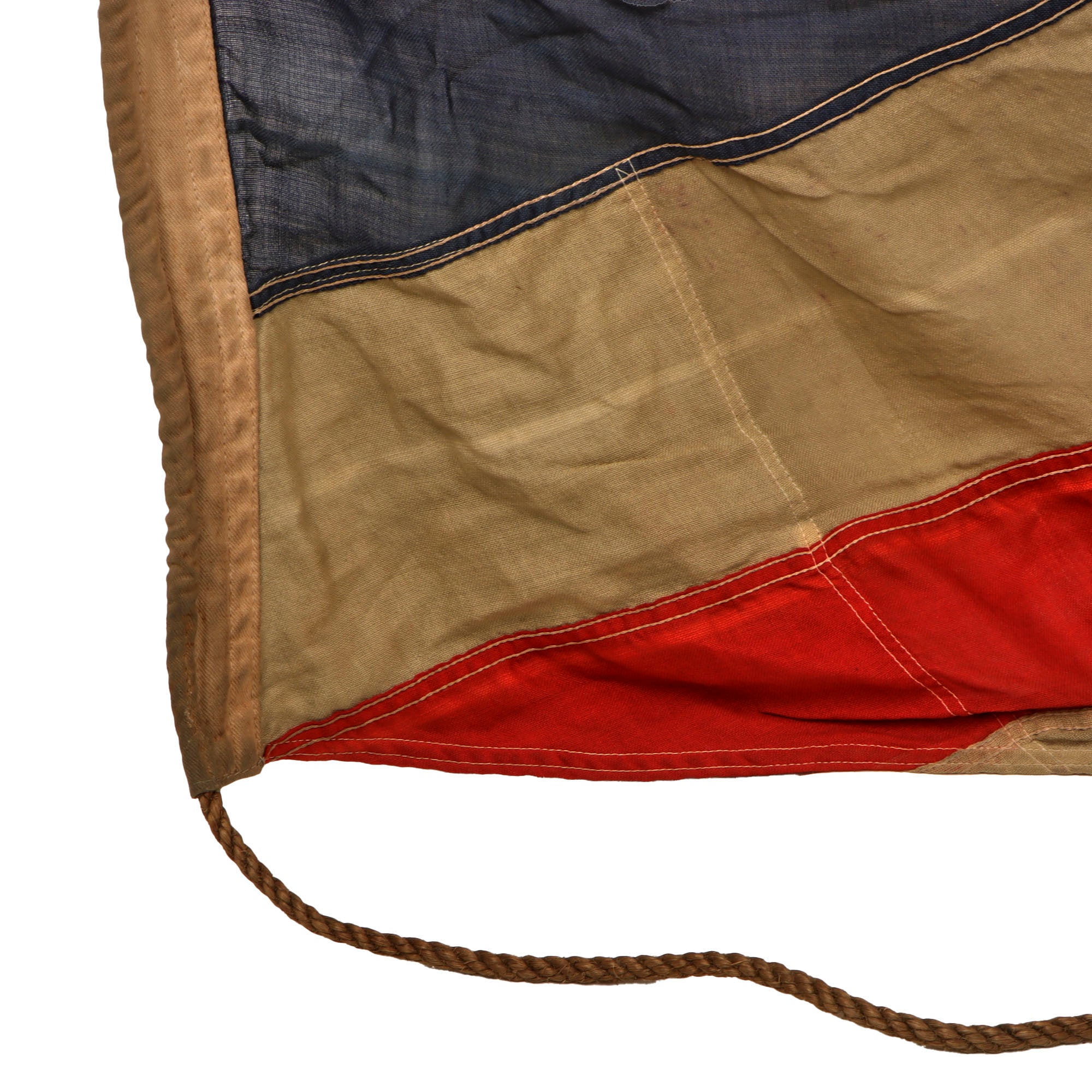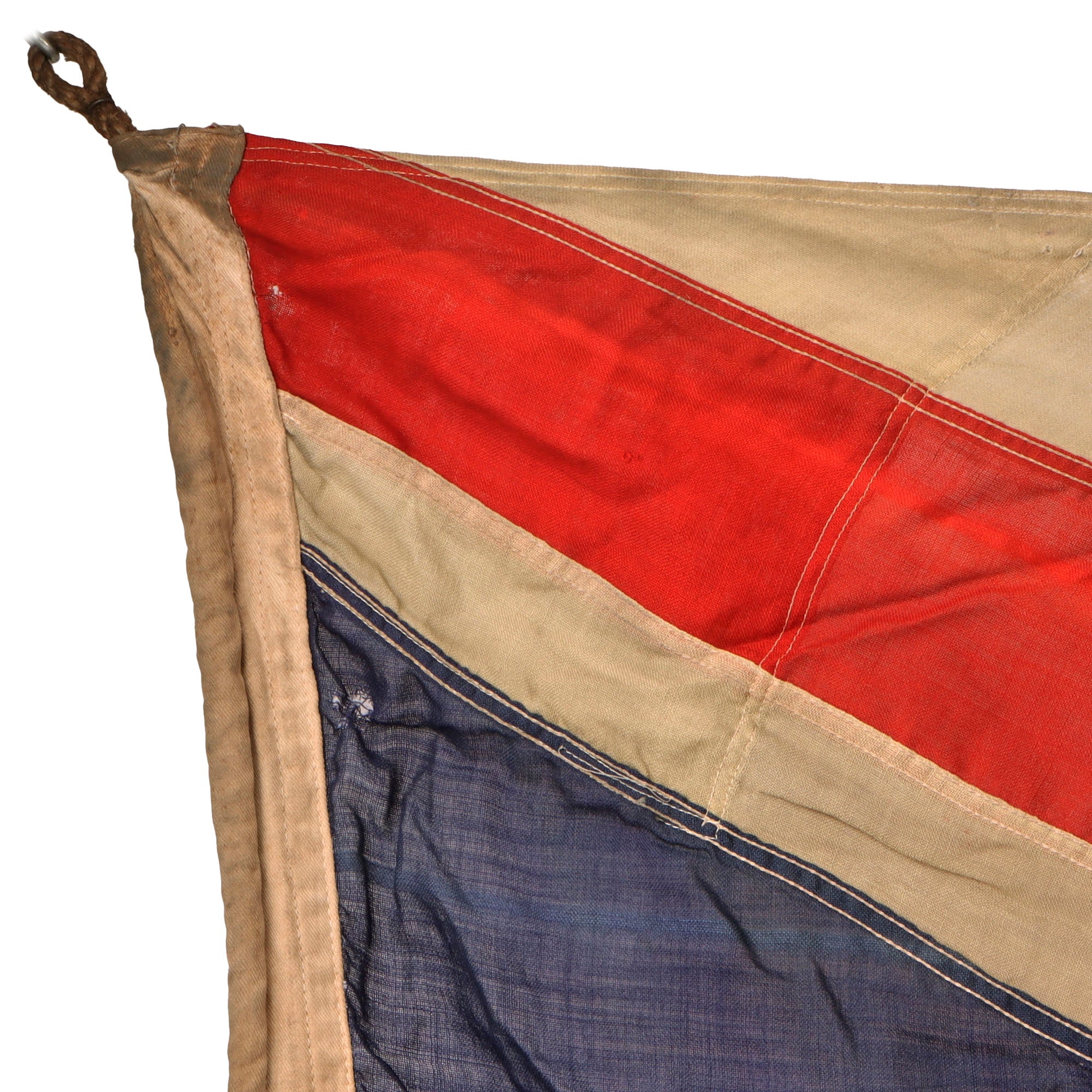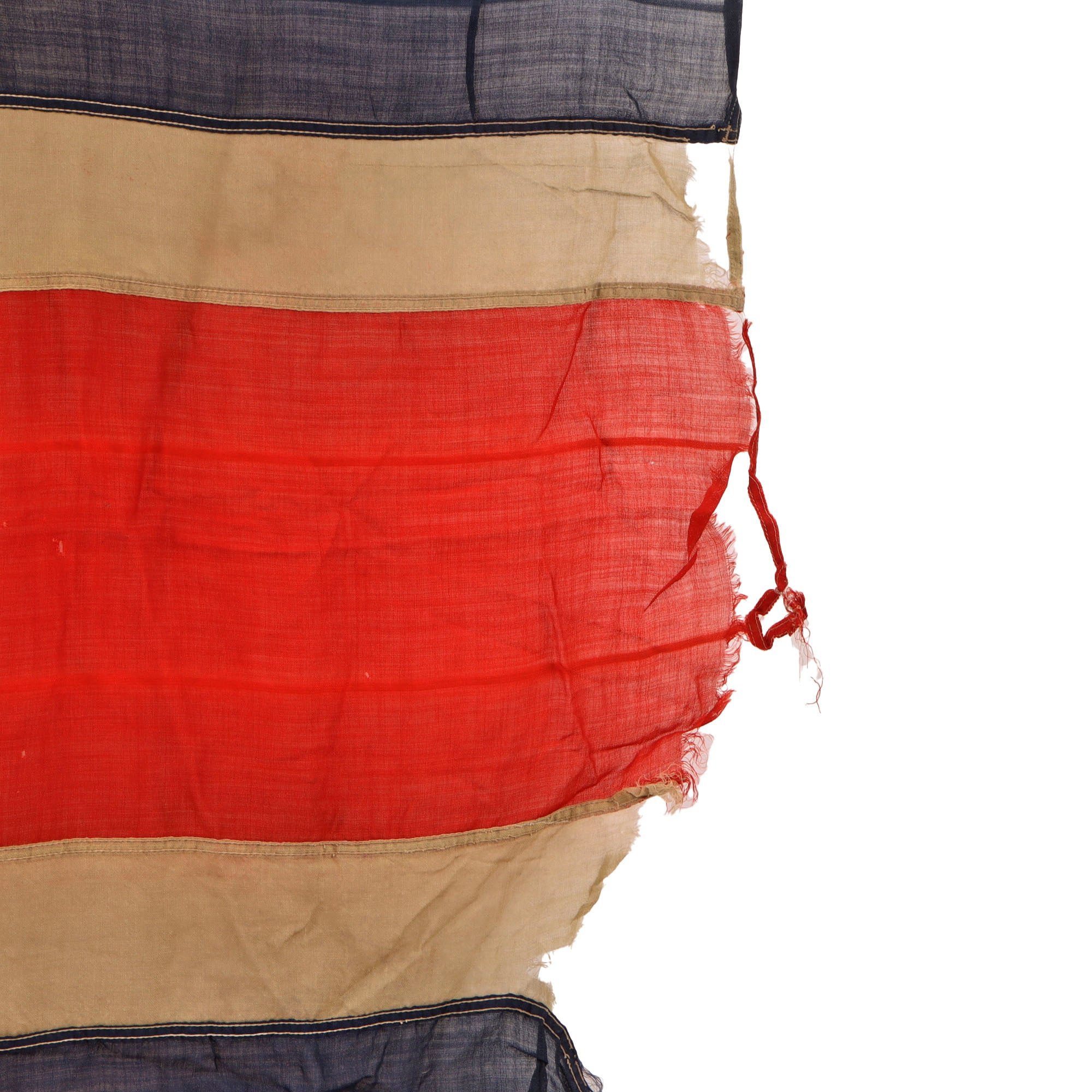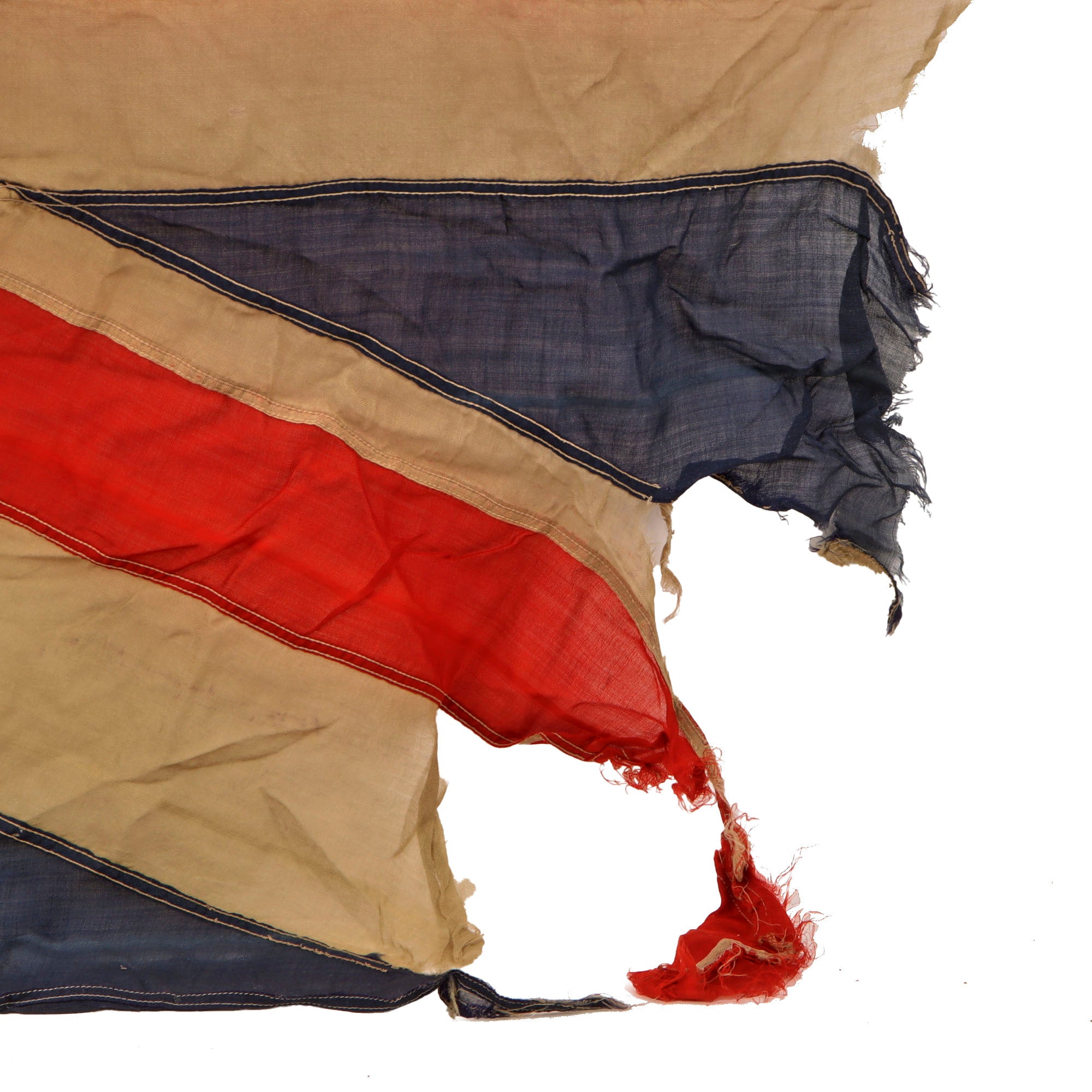 Original Item. Only One Available. This is a tremendous 1870s / 1880s era Union Jack flag in fair but heavily worn condition. The header is unmarked, but retains its original halyard as shown. The flag has heavy tearing across the bottom portion with some spots of heavy material loss. It measures roughly 62 x 132” and could use some restoration or preservation.