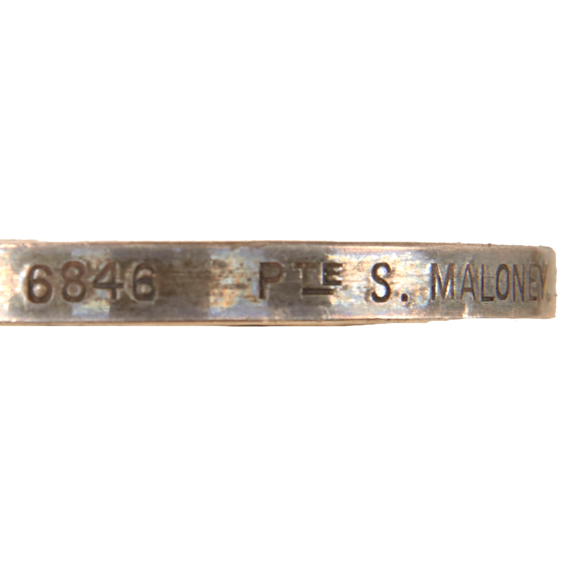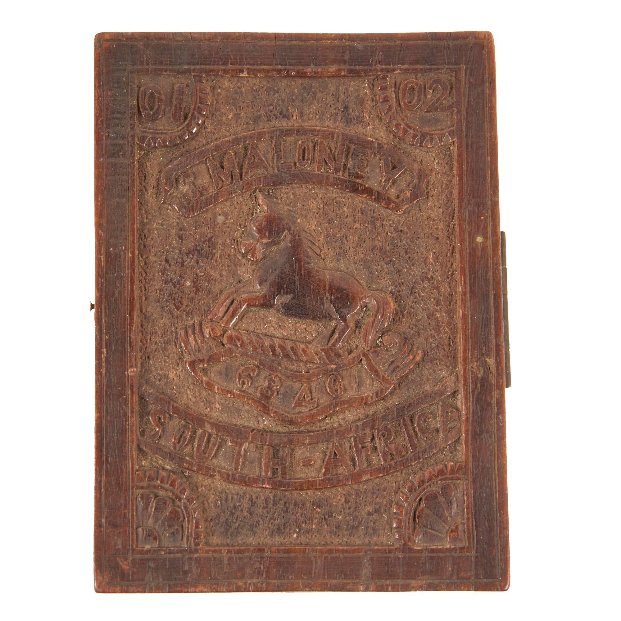 This is an outstanding custom-made trench art display case for a Queen’s South African Medal with the original matching medal inside, identified to Stephen Maloney, Liverpool 30th Battalion, Labour Corps. He received three clasps, for South Africa 1901, South Africa 1902, and Transvaal.