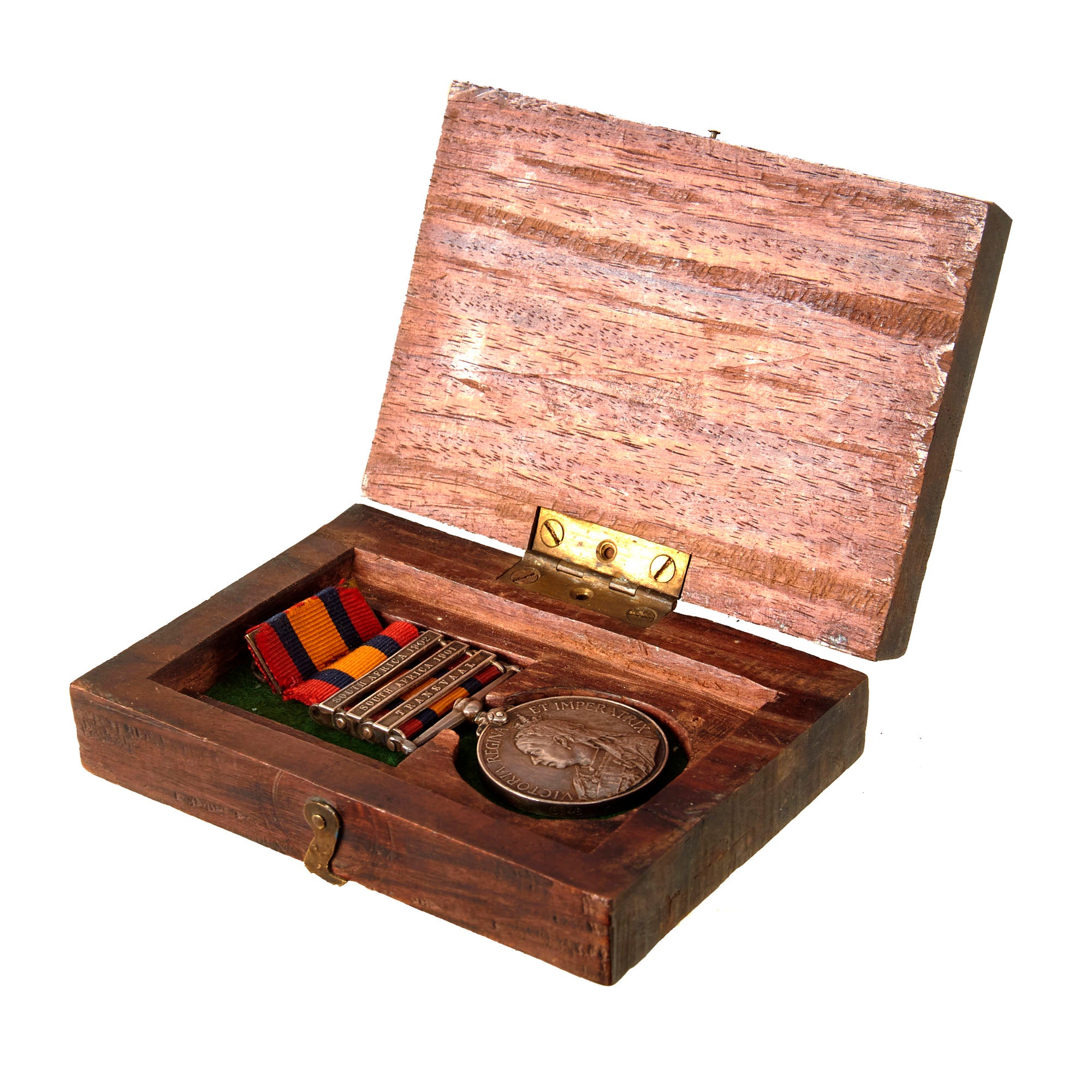 Original Item: Only One Available. The Queen's South Africa Medal is a British campaign medal awarded to British and Colonial military personnel, and to civilians employed in an official capacity, who served in the Second Boer War in South Africa. Altogether twenty-six clasps were awarded, to indicate participation in particular actions and campaigns.