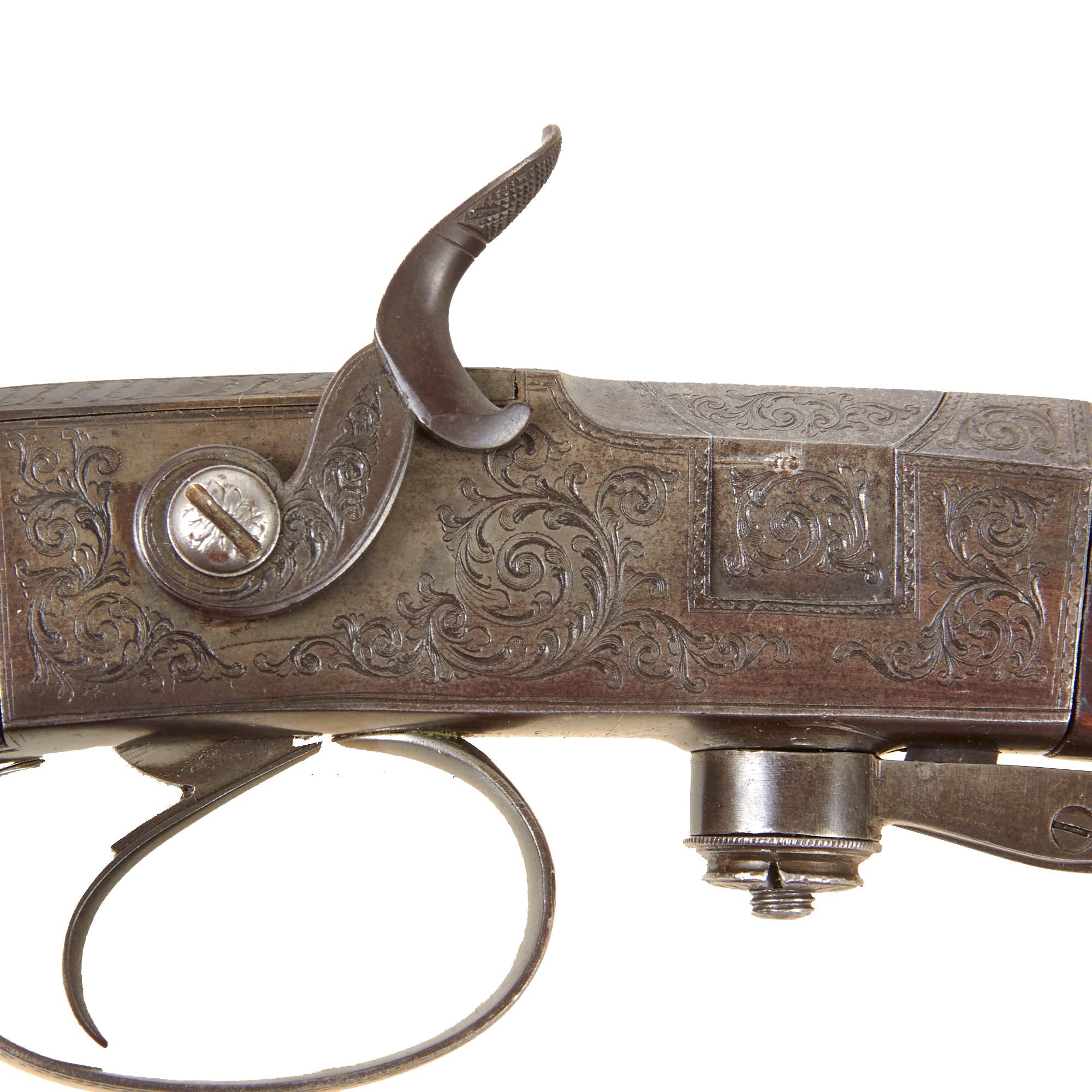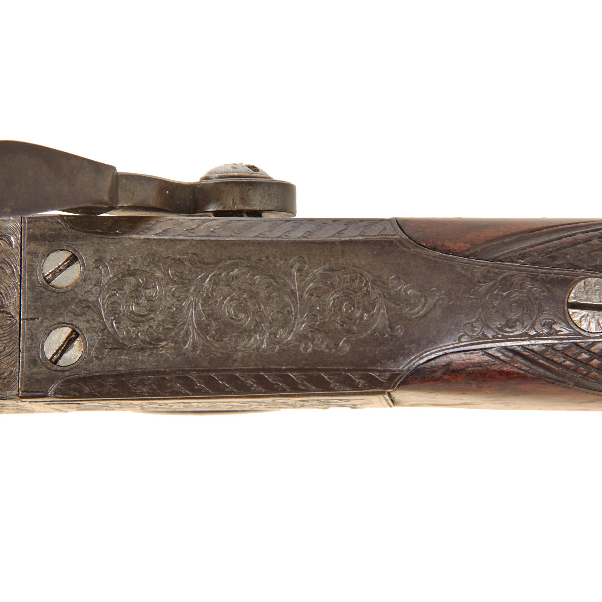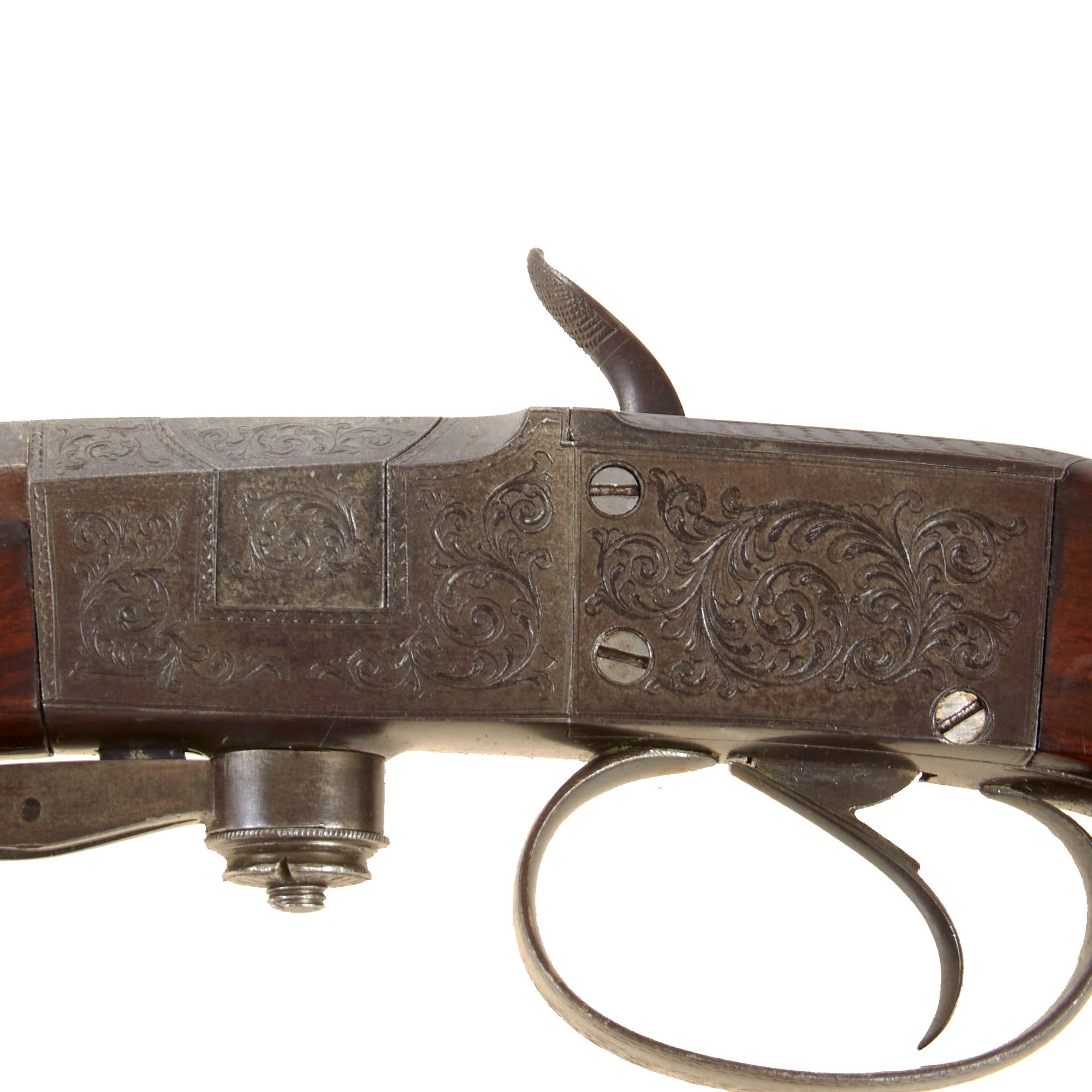 Overall condition is simply lovely, with much of the original finish retained on the action, while the barrel shows some past oxidation and peppering in a few areas, now cleaned away. Certainly a very interesting gun from the Victorian era, more than ready for further research and display!