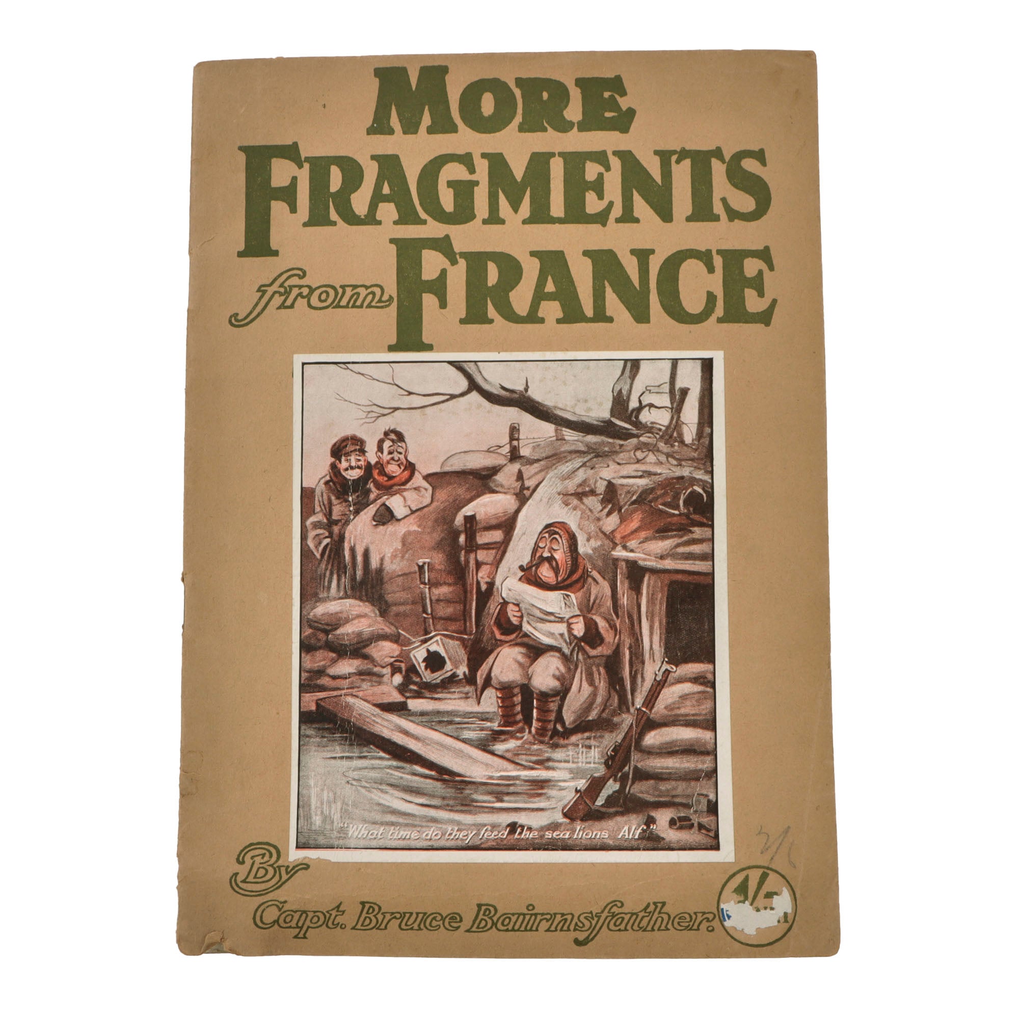The books include “The Bystander’s Fragments from France” and “MORE Fragments from France” both by Captain Bruce Bairnsfather. One is 48 pages, the other 40 pages. Both retain the colorized comic to the front! They measure 8 x 11” and 8 x 12”.