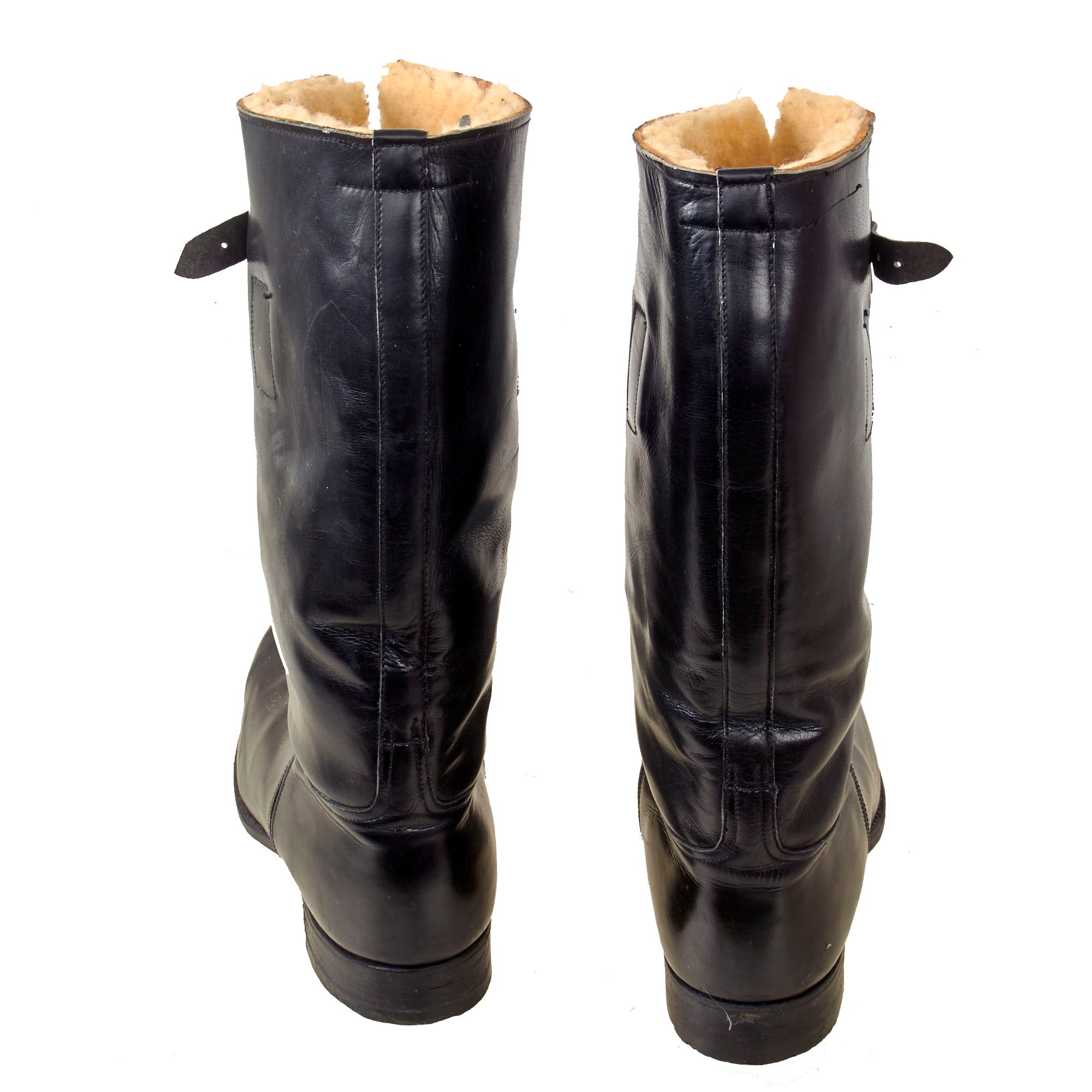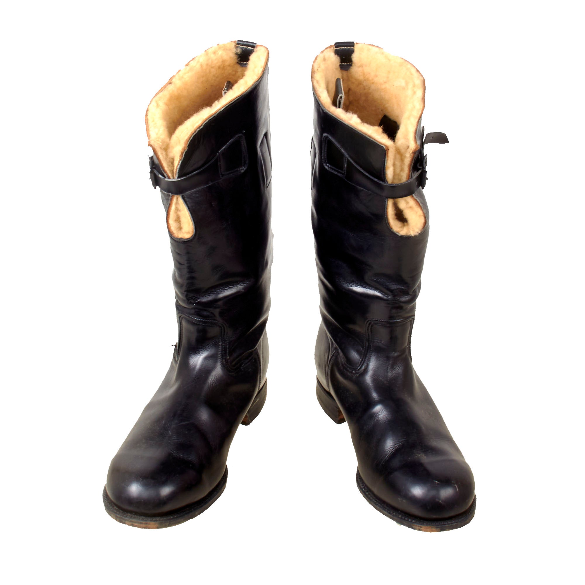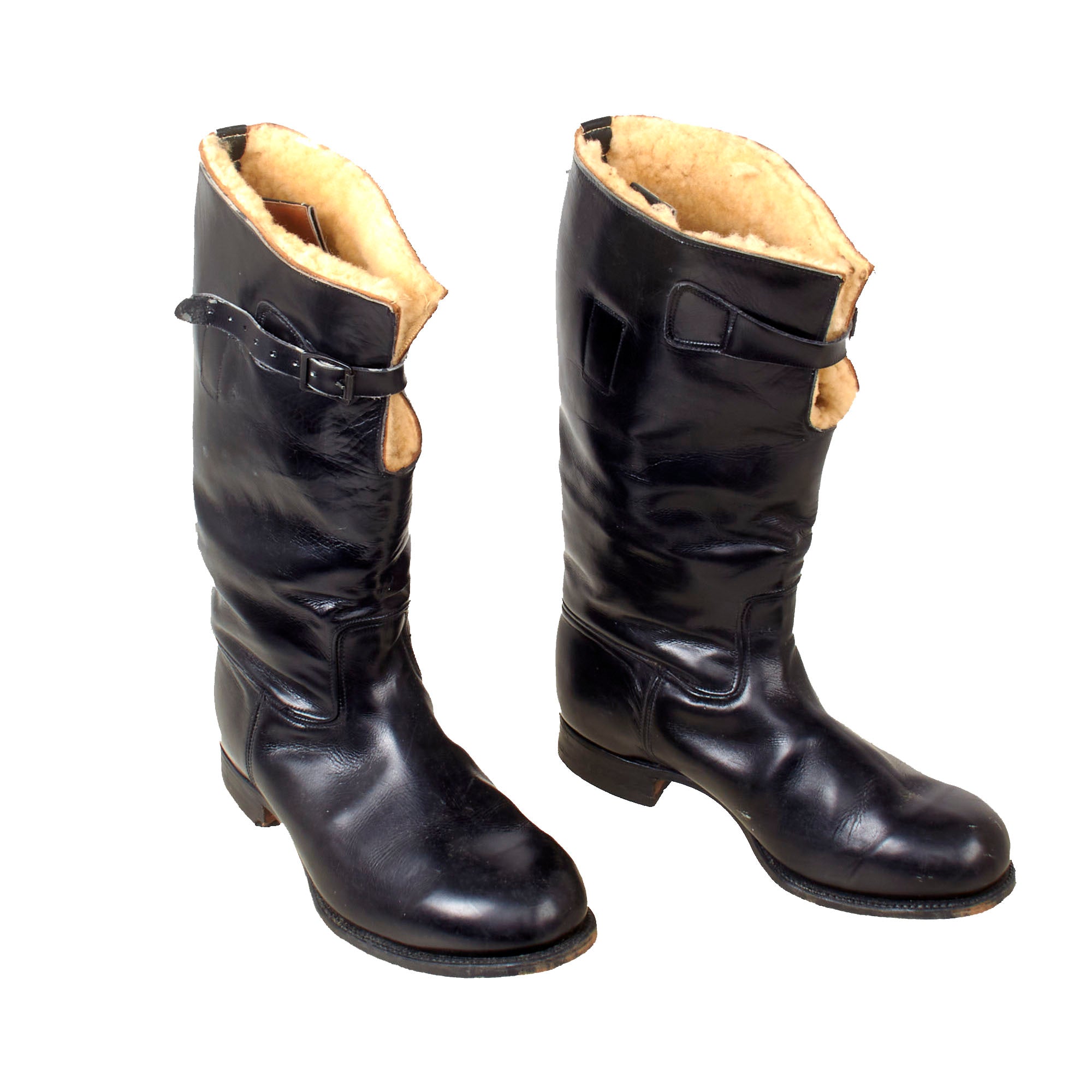 These boots saw issue with the RAAF and RAF as well as the USAAF mainly in the Pacific Theatre and the Far East. They closely resemble the British 1936 pattern flying boot in almost everyway featuring the end on end stitching between the upper and lower sections of the boots, the sheepskin lining and the leather fastening tabs at the top.