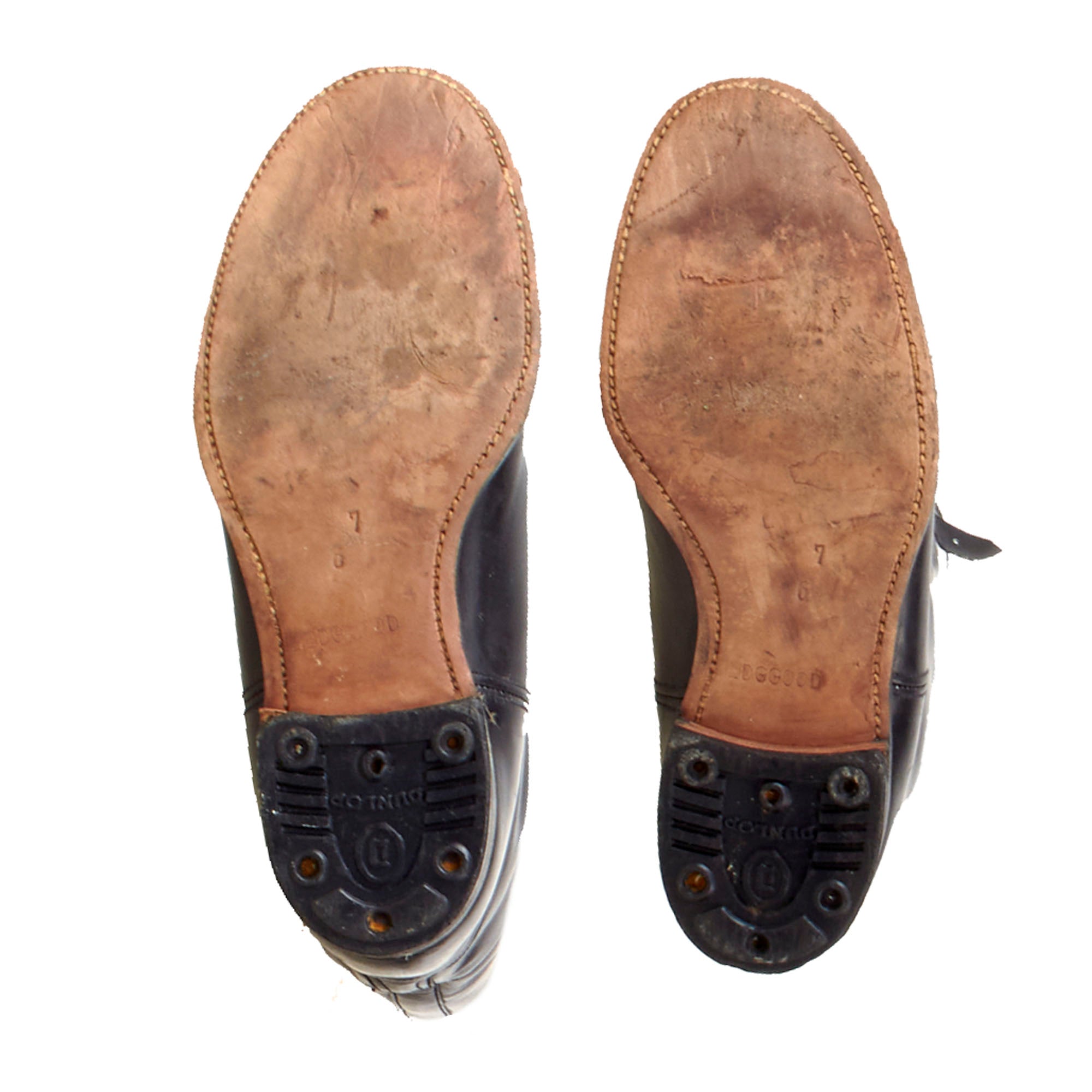 The heels are marked DUNLOP with BEDGGOOD stamped onto the soles. The straps and buckles still work great. This is an outstanding set of these scarce boots.
