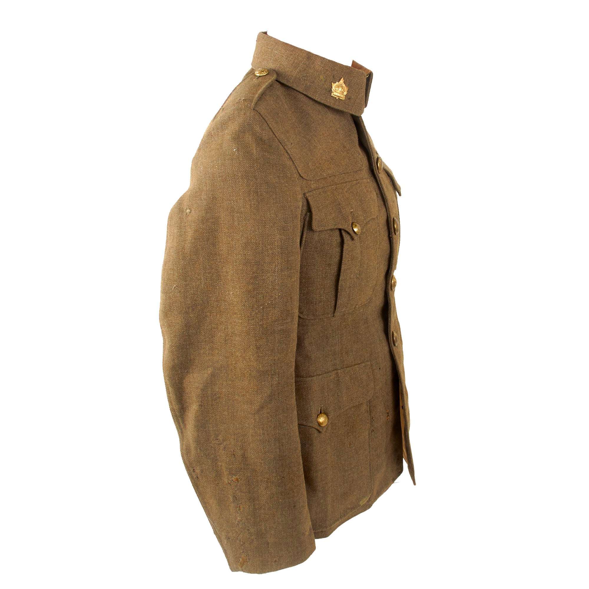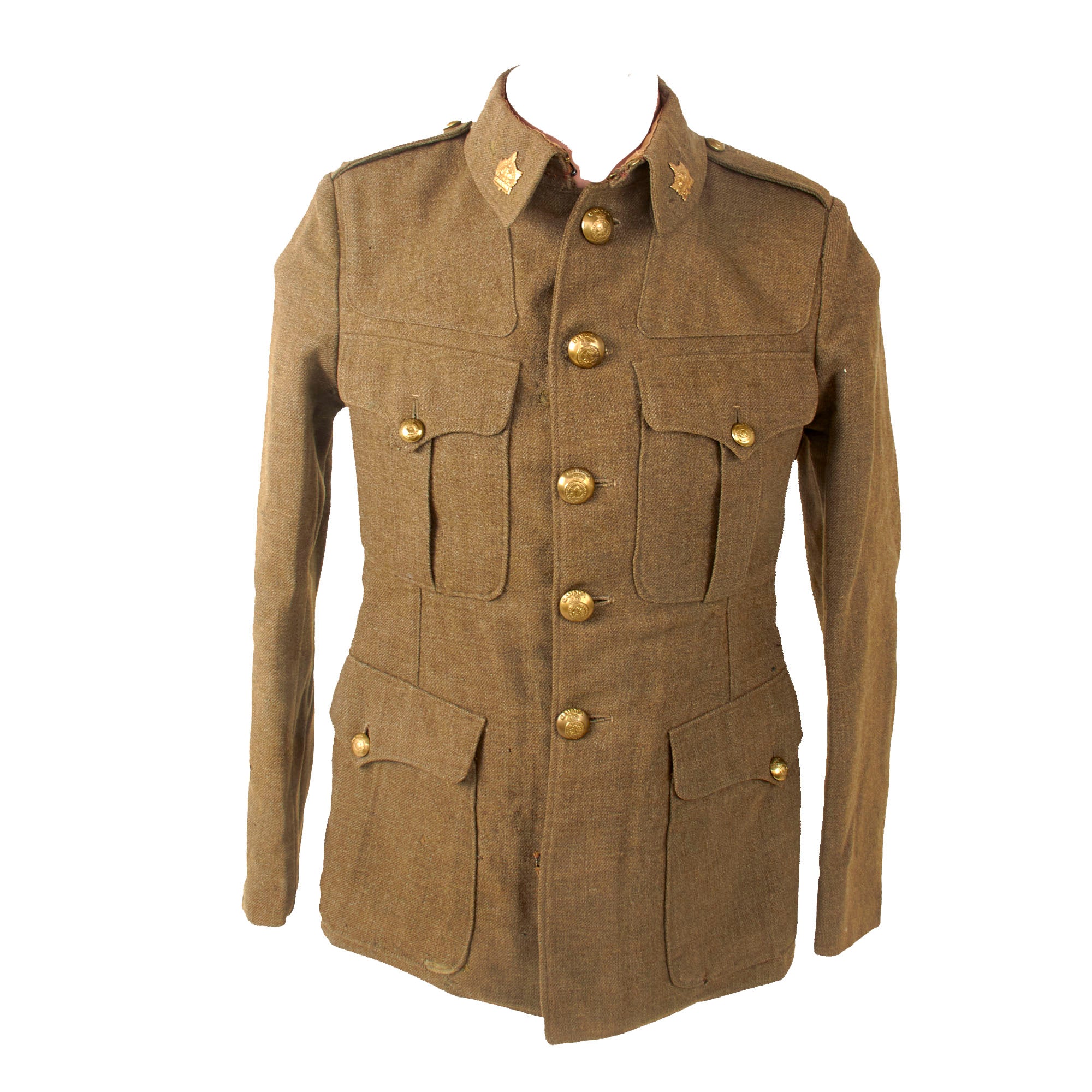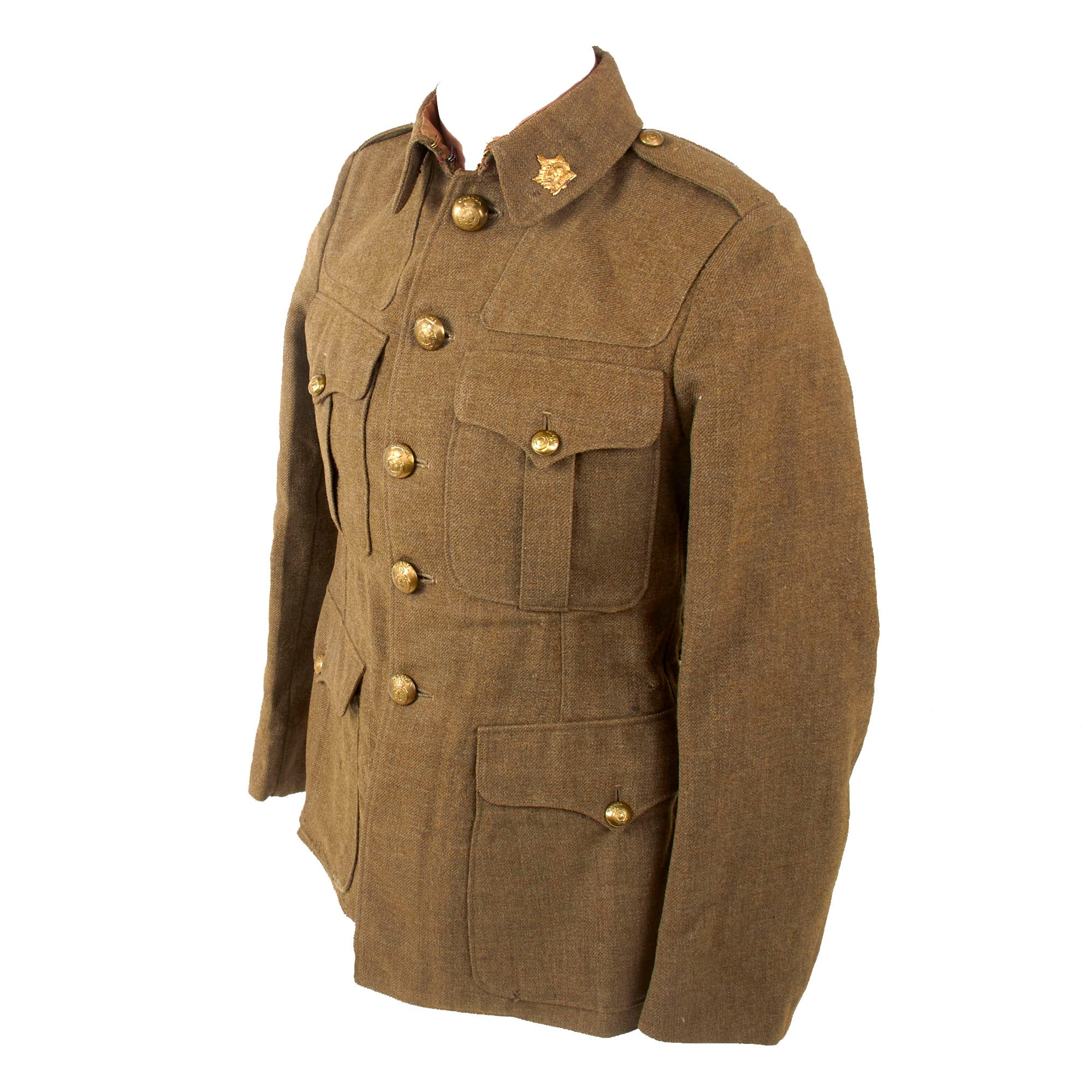 Original Item. Only One Available. Originally introduced in 1902, the British Other Ranks five-button Service Dress (SD) jacket shared some common features with the Canadian seven-button SD jacket such as removable Corps shoulder straps and a restricted fit. By 1907 the five-button SD jacket had matured into the recognizable garment that the British Expeditionary Force was wearing as they marched towards destiny in 1914.