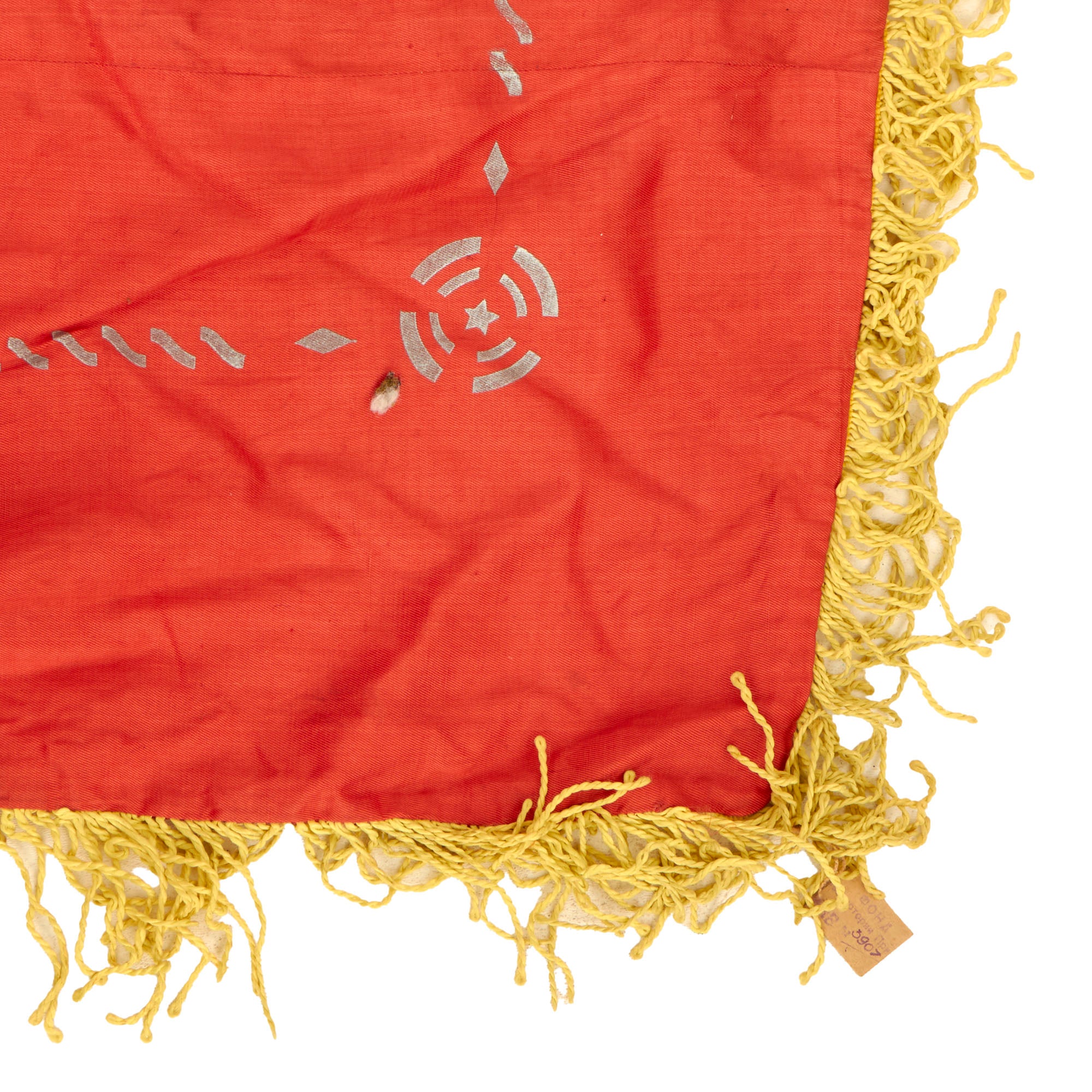 The banner has three pole attachment loops. Comes ready for further research and display.