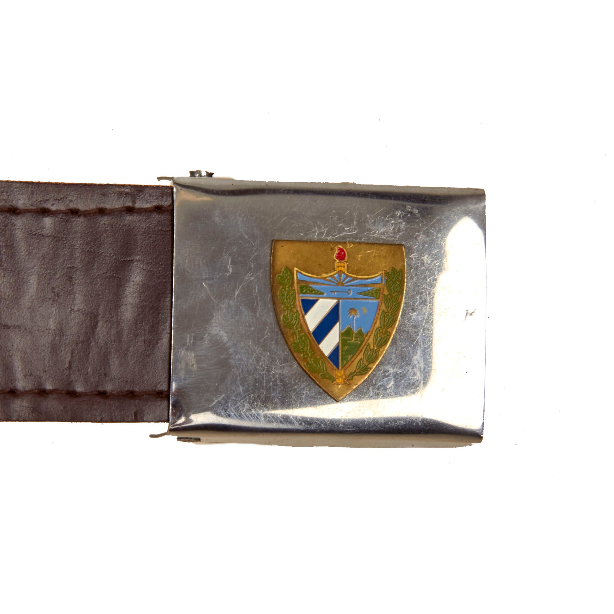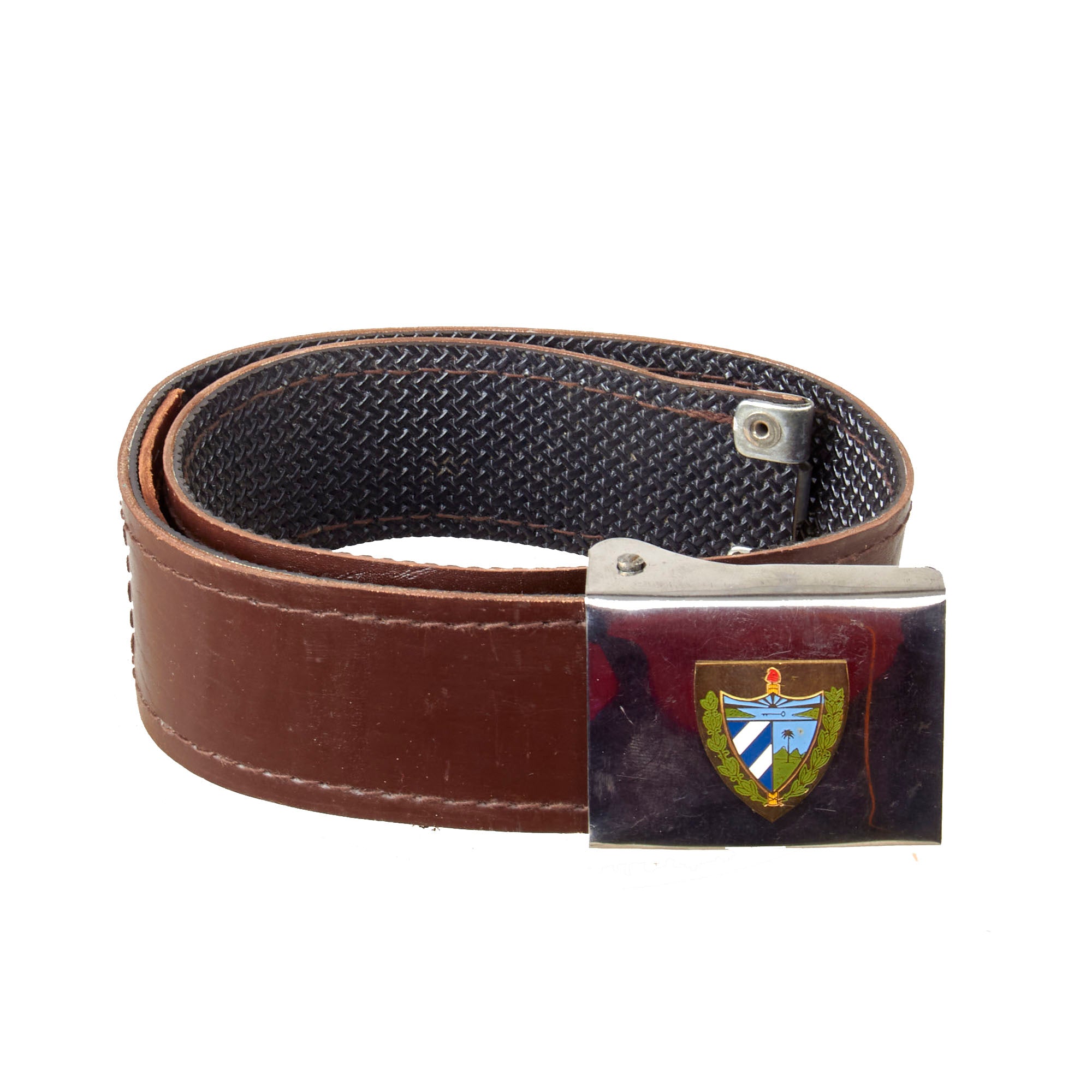 Original Items. Very Few Available. We are offering a great selection of Cuban Army waistbelts from the Late Cold War era. They each have a lovely buckle with a colored coat of arms of Cuba to the front. They are certainly Post-1959 and are likely a bit later than that too.