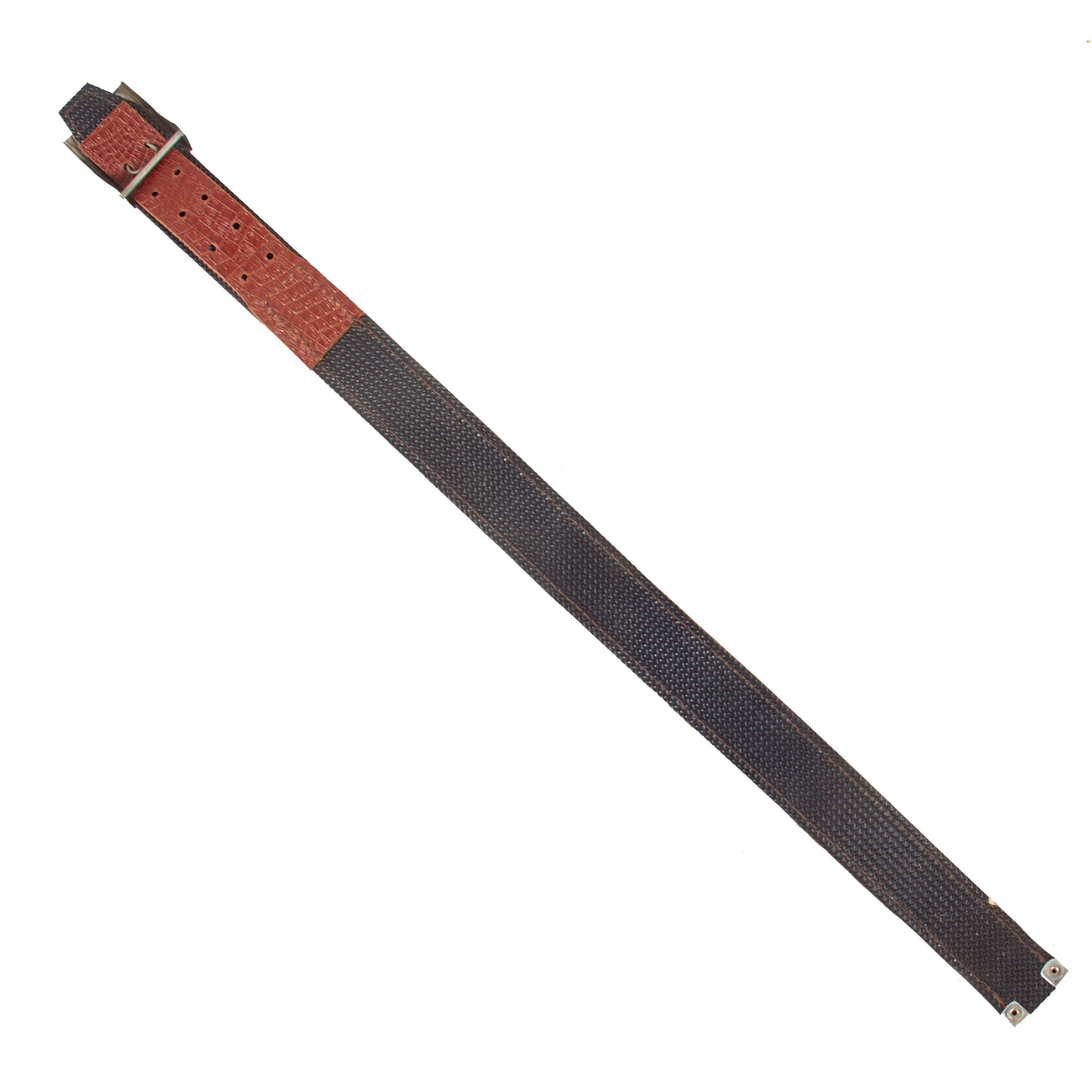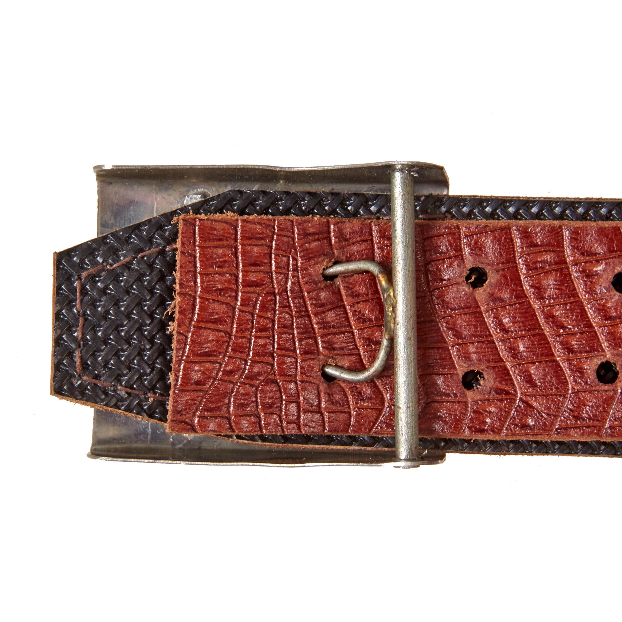 The belts are leather to the front and a rubber-like material to the back. There were a number captured during the invasion of Grenada in 1983 during Operation Urgent Fury, which is where these may have come from.