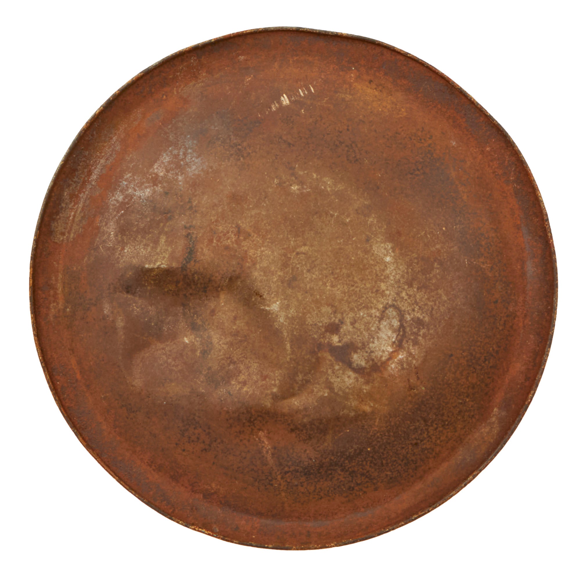 The plate measures roughly 6 ¾” in diameter and has very heavy denting and rusting as shown. A good representative example. Ready for further research and display.