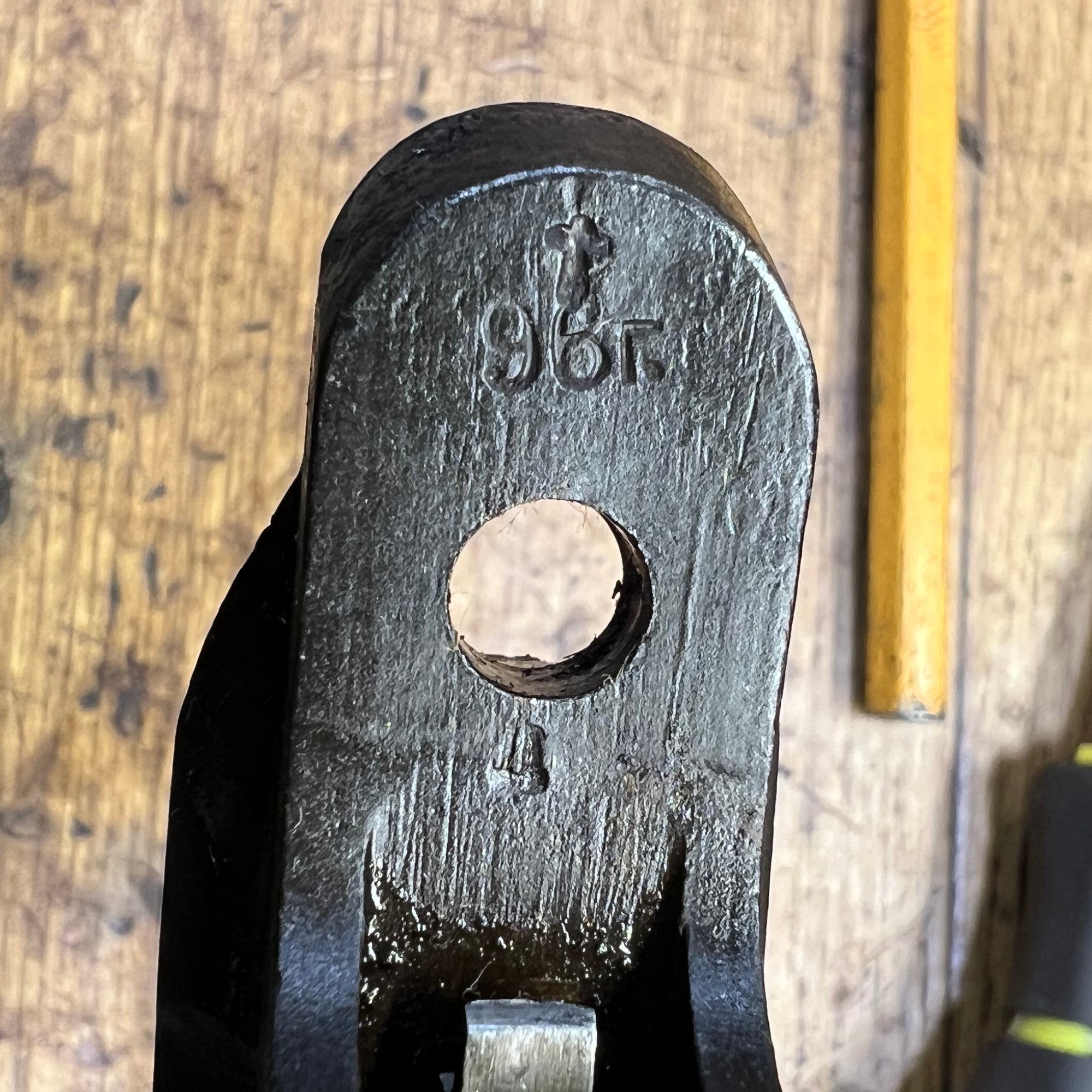 The receiver shows past oxidation and cleaning, which has made the original Imperial Russian Double Headed Eagle proof faint. More importantly, the bottom of the receiver tang is dated 96г for 1896 (г is short for год "god", or year in English), legally classifying this as a Pre-1899 Antique Firearm. Above the date is a HAMMER, the marking of Императорскій Тулбскій Оружейнбій Заводъ, the "Imperial Tula Arms Factory", one of the most prominent in Russia. Reconstructed in the 19th century Tula Arms Factory became one of the most prominent arms factories in Europe. In 1879 the plant started production of the famous Berdan rifle with an improved bolt. Workshop was organized by a model where created their own models of small arms and hunting weapons. Increased production of various products: single- and double-barrel muzzle-loading shotguns, breech-loading center-fire rifles. Designer Sergei Ivanovich Mosin took part in devising damascus steel technology used in production of barrels. He also designed a bolt-action rifle which was put to testing along with a rifle developed by Émile Nagant. In 1891, as a result of complex tests Mosin's entry was chosen over the Belgian design and it was adopted by the Imperial Russian Army as the three-line rifle of 1891. This is one of many Imperial Russian receivers that saw service for well over half a century.