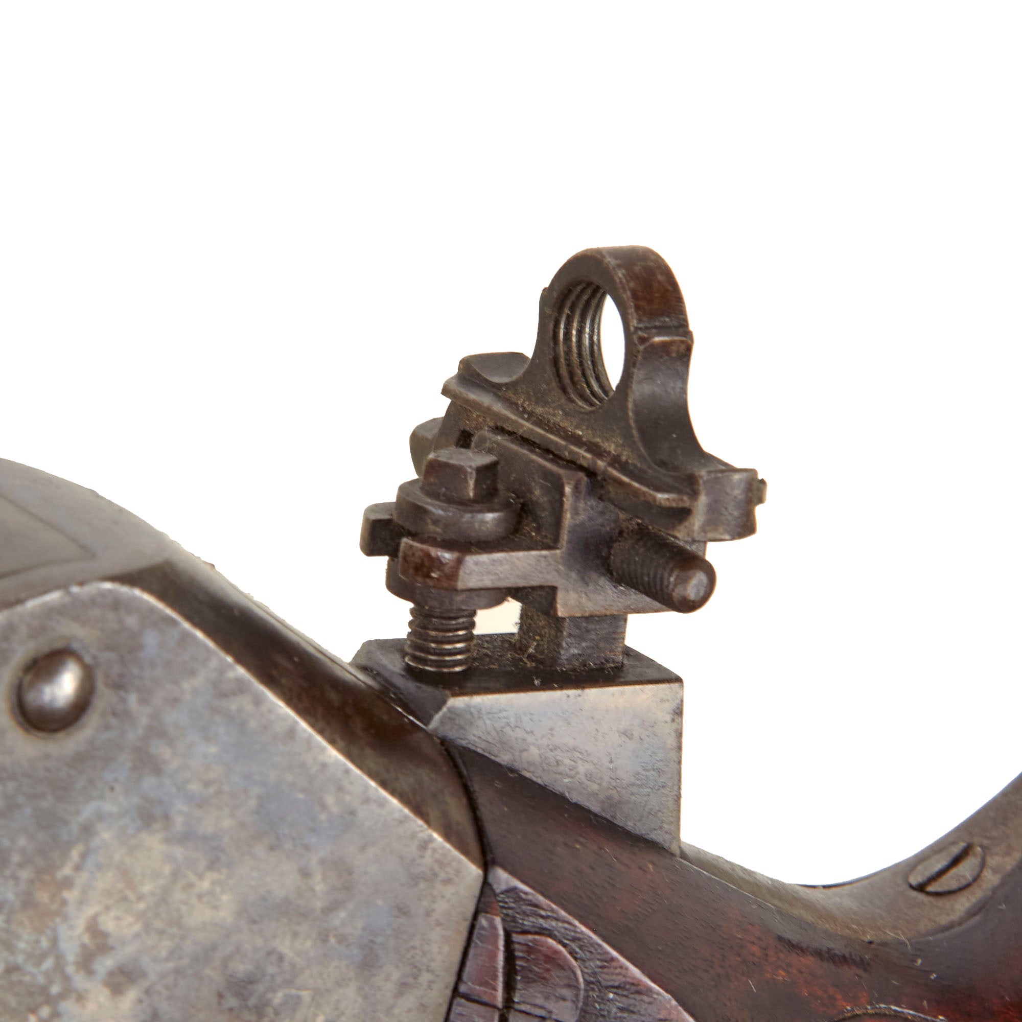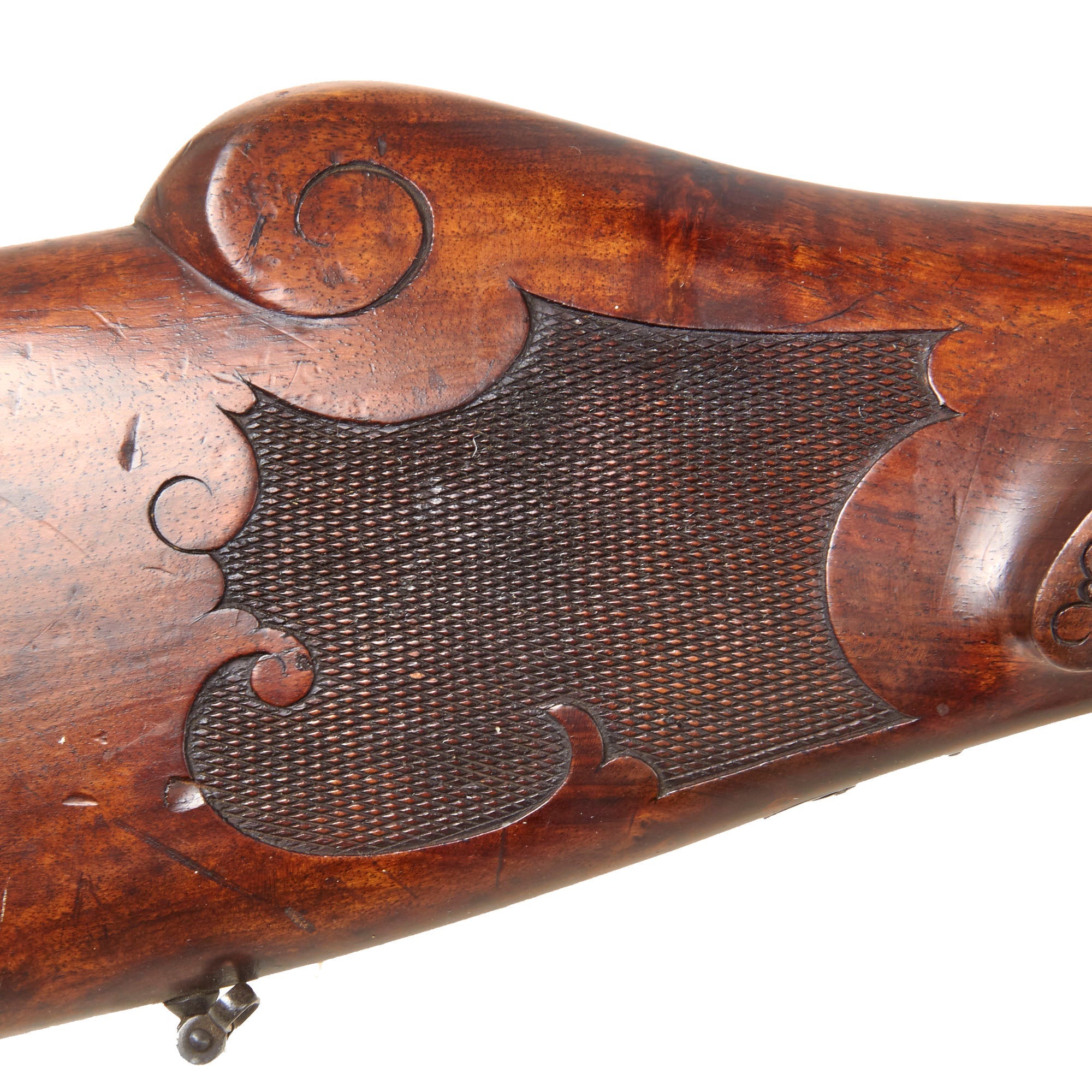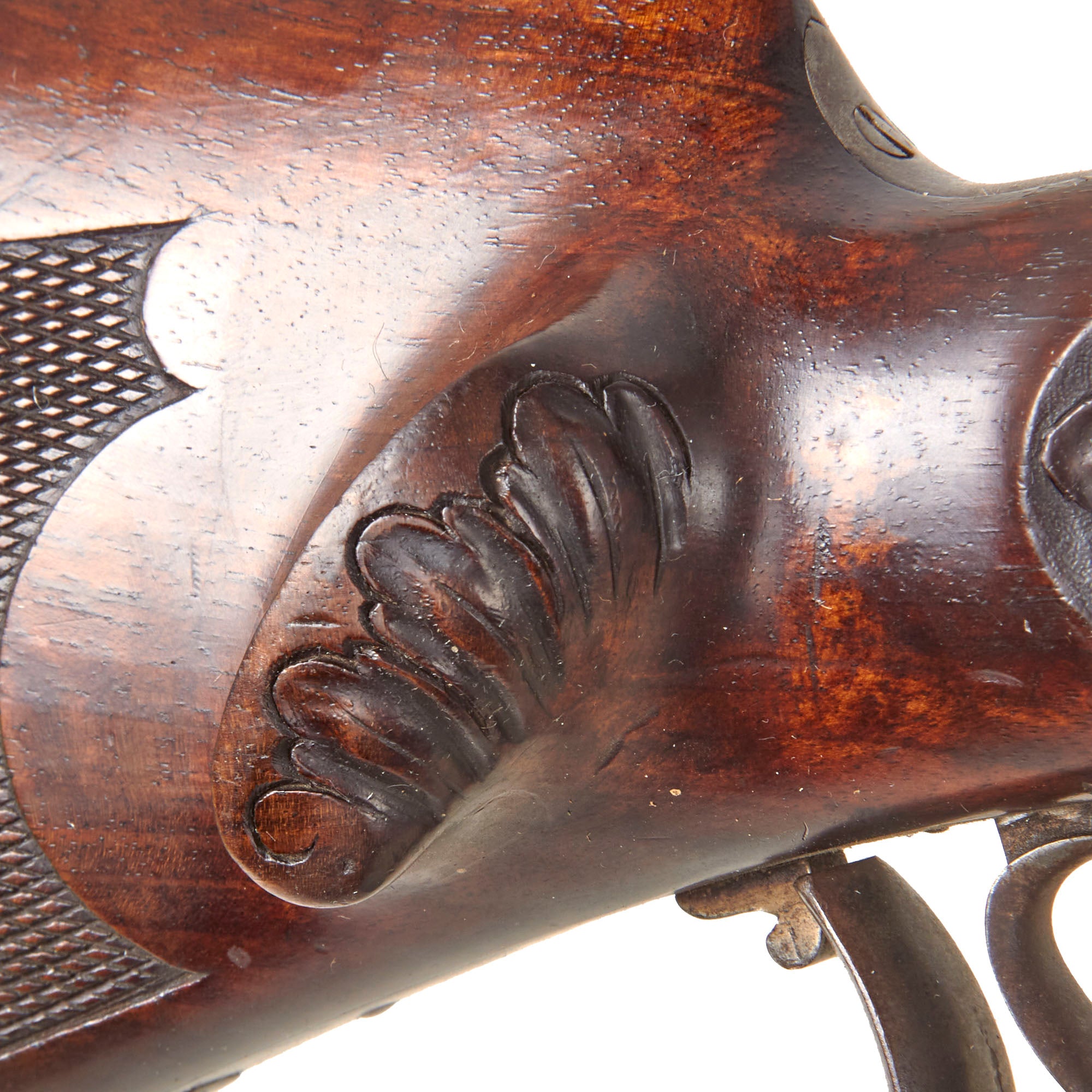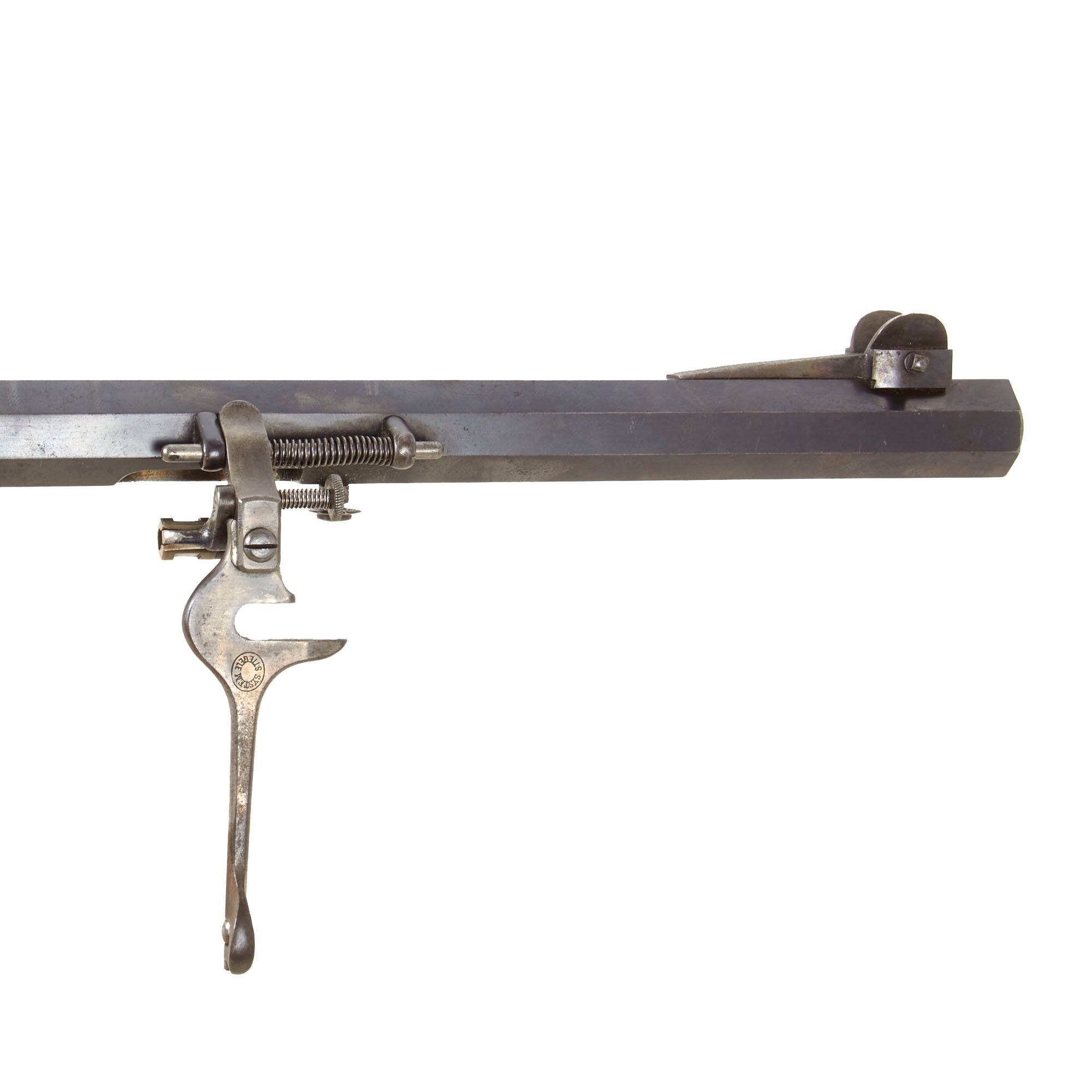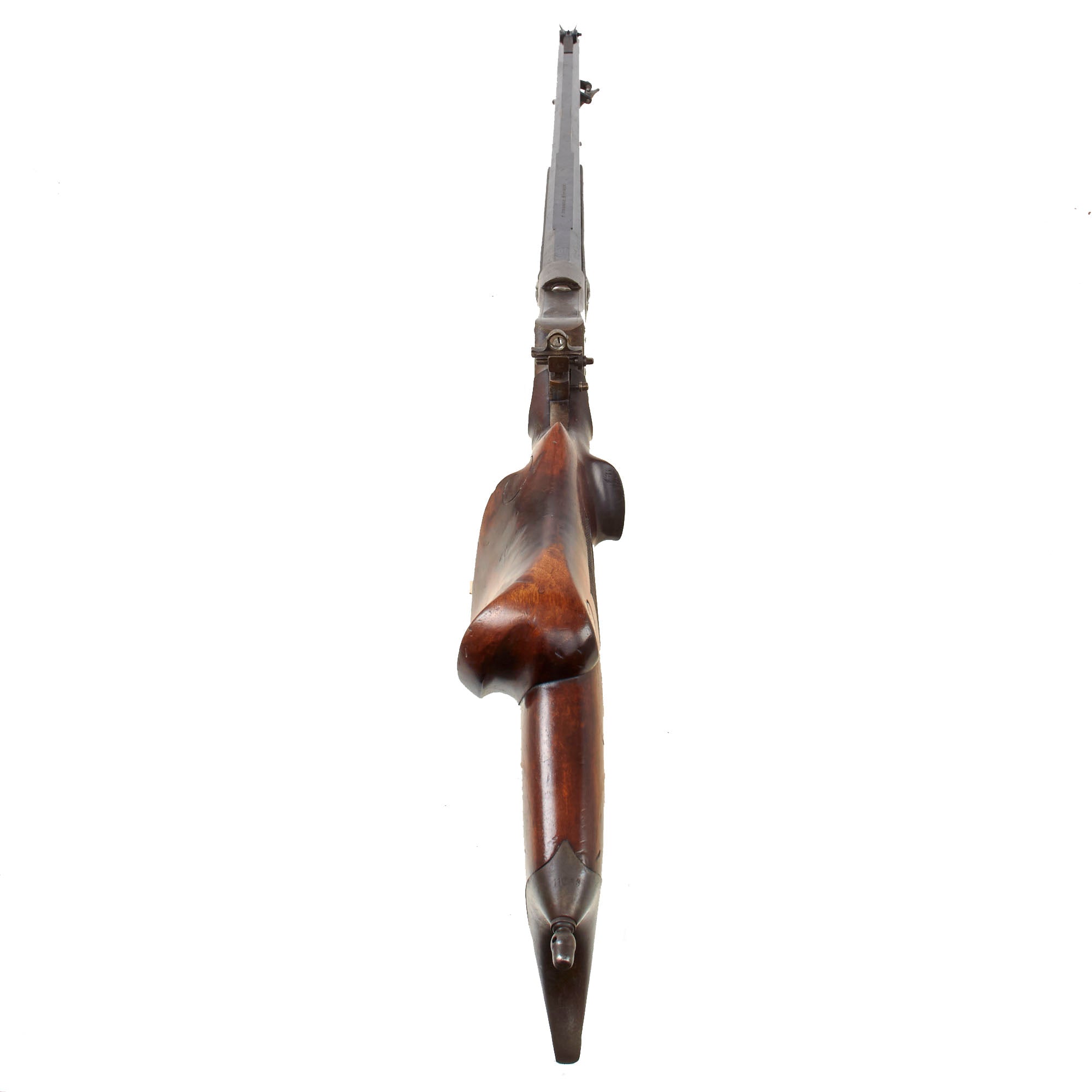Original Item: Only One Available. A Schützen (also spelled Schuetzen) is a type of rifle used in European long-range competition. Its German root is from the word Schütze which can be translated as “shooter.” The earliest usage was to denote units of marksmen or sharpshooters back in the days of muzzleloading firearms. Some sources claim that it was once used to describe archers or more specifically crossbowmen. These rifles are typically heavy and can weigh upwards of 15 pounds. All shooting with these rifles is done standing using a palm rest and butt stock prongs to help the shooter balance the rifle so the weight aids in stability.