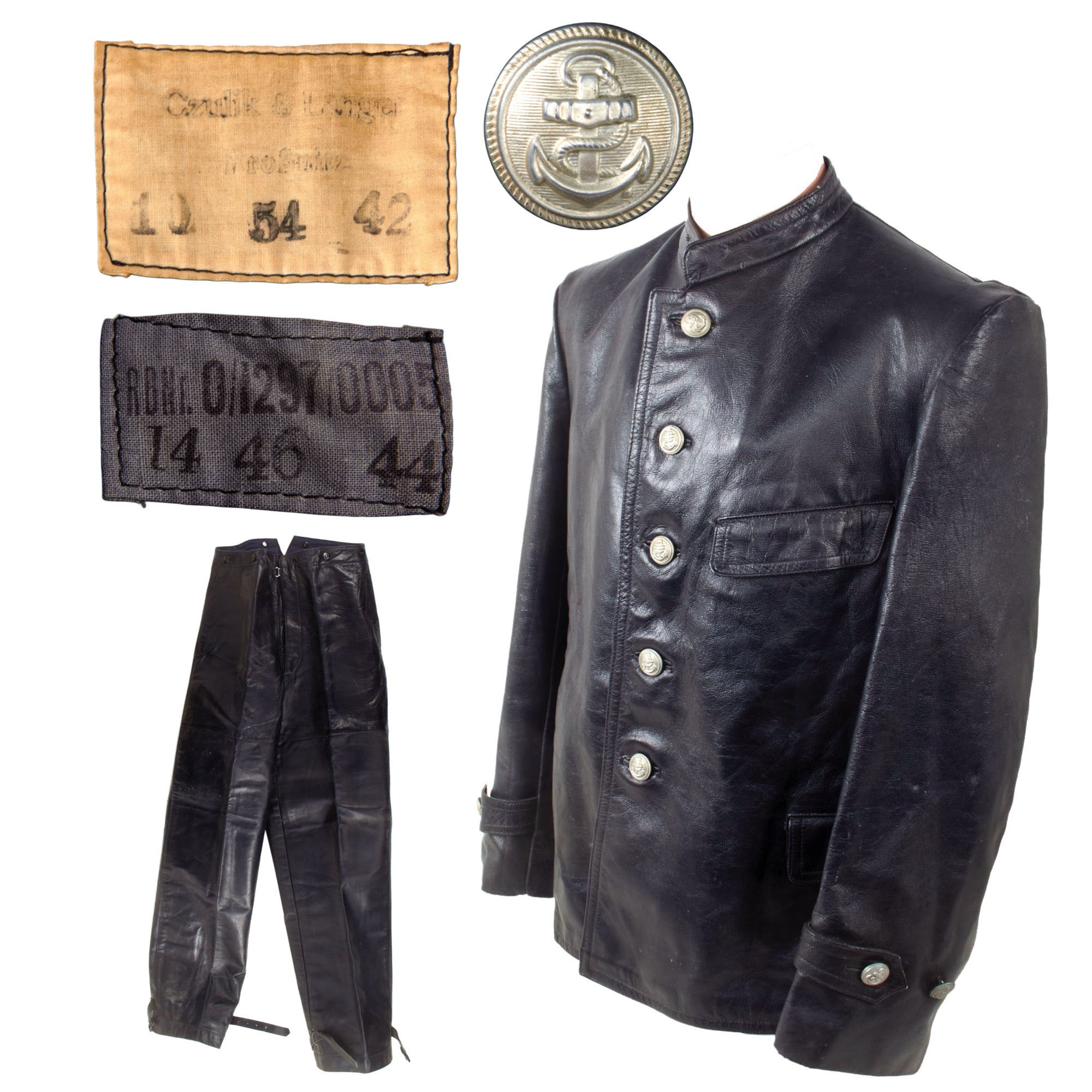 Original German Kriegsmarine Private Purchase U-Boat Leather Jacket and Trouser Set - Maker Marked with Sizes