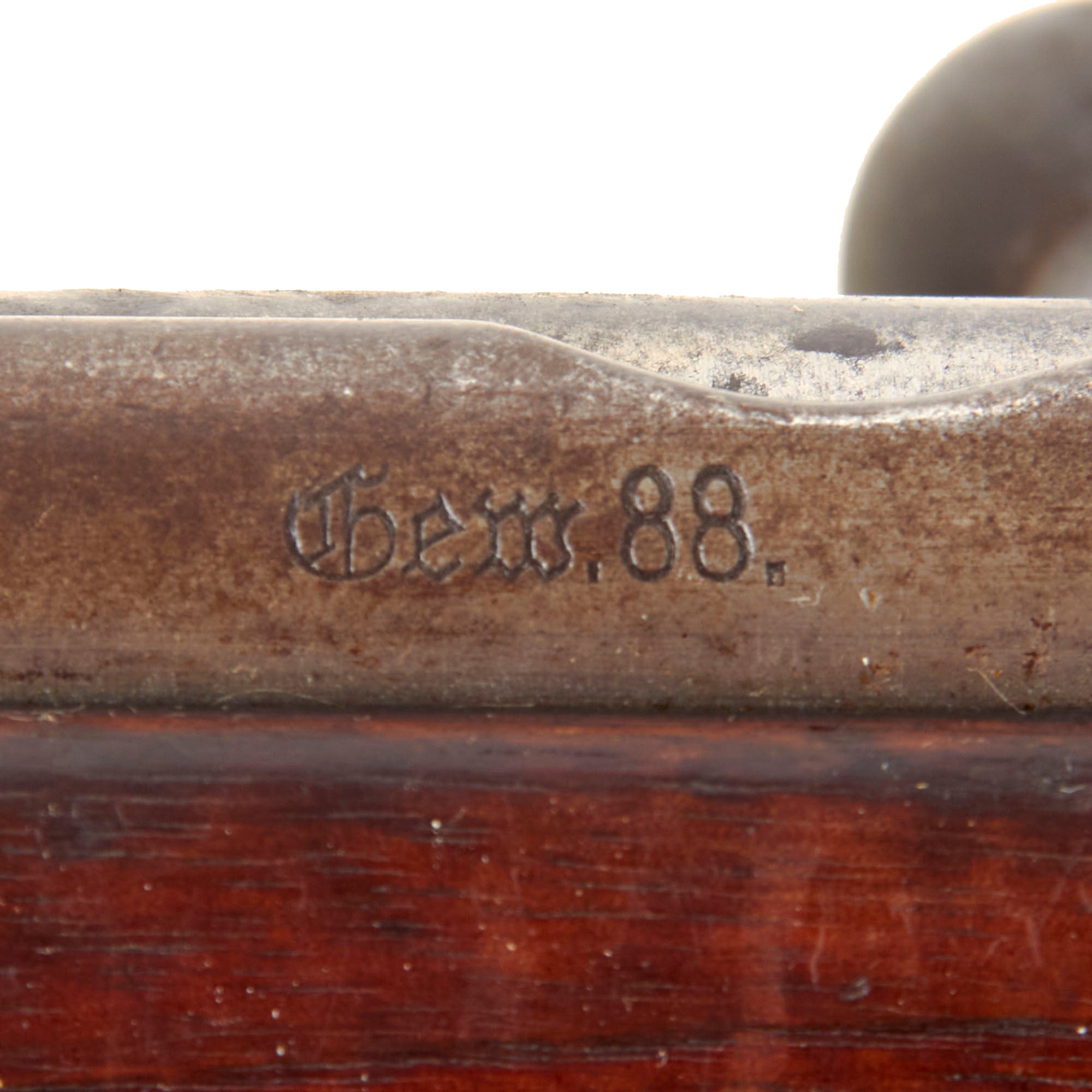 • Original Item: Only one Available. This is a very good example of the iconic German Gewehr 1888 "Commission Rifle", also known as the Gewehr 88, or GEW 88. It was made by Ludwig Loewe & Company in Berlin, the company that eventually become the famous Deutsche Waffen- und Munitionsfabriken Aktien-Gesellschaft (German Weapons and Munitions public limited company), known more commonly as DWM. They were a major producer of weapons for Imperial Germany before and during the First World War. The rifle then saw long service, as indicated by the large number of different markings on the gun.