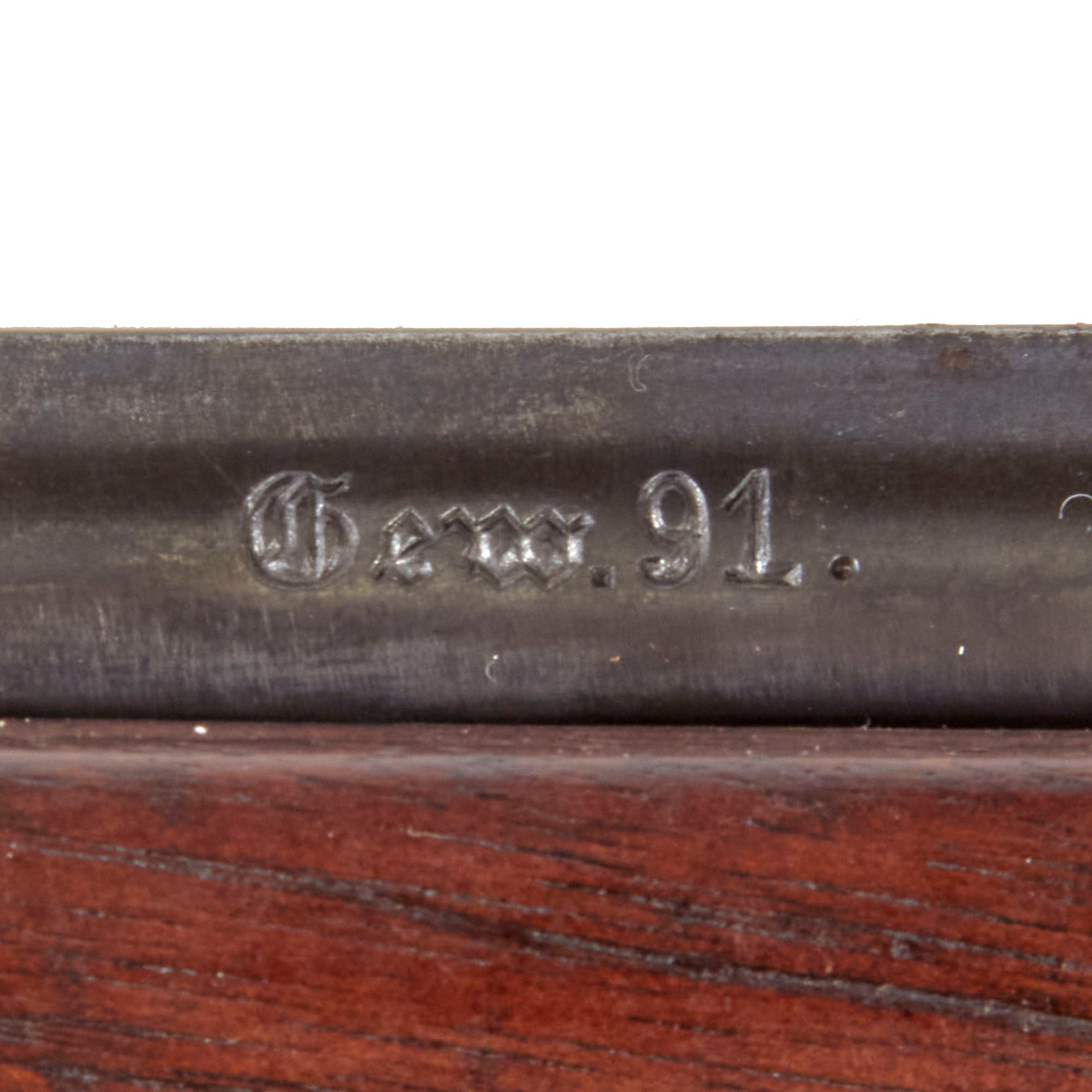 The gun was adopted for Prussia, Saxony and Wurttemberg on 25 March, 1891. They were produced between 1891 - 1896 by private contractors, mainly C.G. Haenel or V.C. Schilling, and the Erfurt Arsenal. Those manufactured or rebarreled post 1896 were Z modified (deepened rifle grooves), and most were "S" modified (like this one) between 1903 - 1905. The Gew 91 were replaced by the Karbiner 98 AZ between 1909 - 1910, and were stored away for the Reserves & Landwehr, then in turn for the Landstrum. They again were re-issued in 1914 after the war began. The rifle was carried throughout WW1, there are many known 1918 dated photographs showing it was still in use with the artillery at the end of the war.