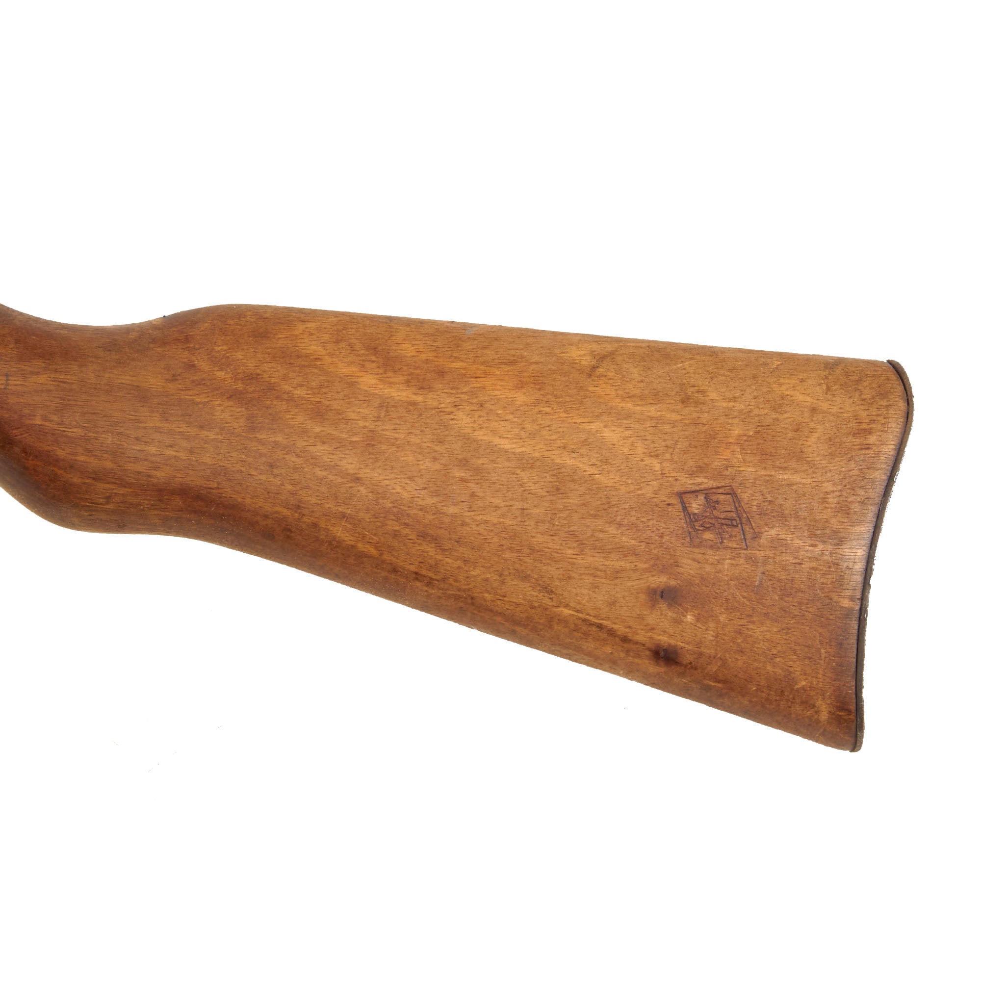 Condition is very good, with a moving trigger and release for the receiver, though the receiver can no longer be unlocked with it. The selector switch on the right side is still present and moveable, clicking into both positions. The stock is in very good shape, showing the usual dents and dings from service, but no major damage such as cracks or past repairs. The sling loop is intact as well. The included magazine will be deactivated where required.