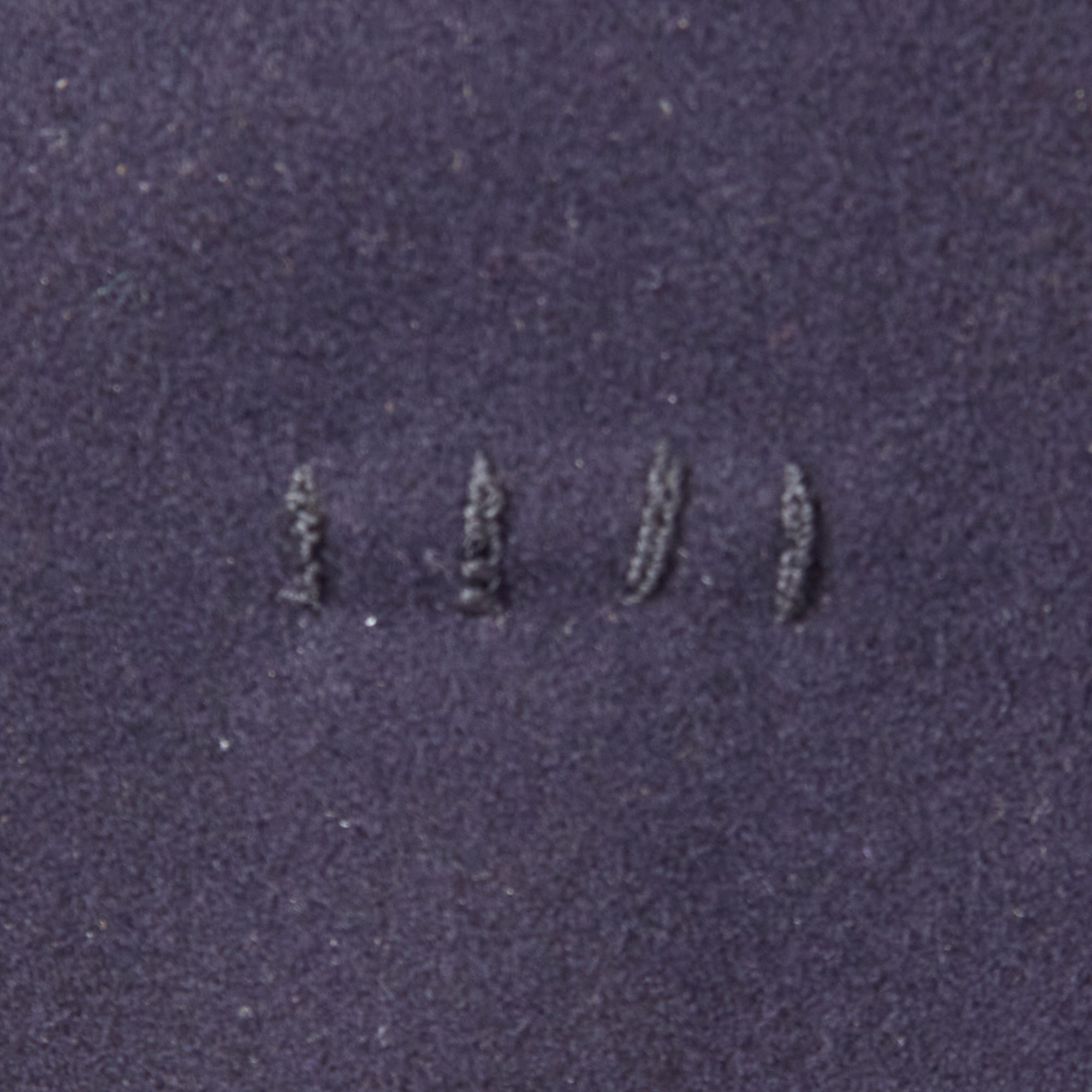 The jacket has an impressive double breasted 9 button front, featuring all original Kriegsmarine buttons, and still retains the vest "button chain" in the top two buttonholes. The interior is lined with what feels like brushed cotton twill, while the sleeves are lined with blue striped white rayon. There are horizontal slash pockets on the inside chest on either side, with a laundry tag in the left side, and a small embroidered tag reading Tittel / N345 / 25. inside the right pocket. There is also a faint maker / issue marking on the rear right, which looks to read B. A. K. / 14. 9. 36., indicating that it was made or issued September 9, 1936. We assume the letters above the date are some type of depot marking.