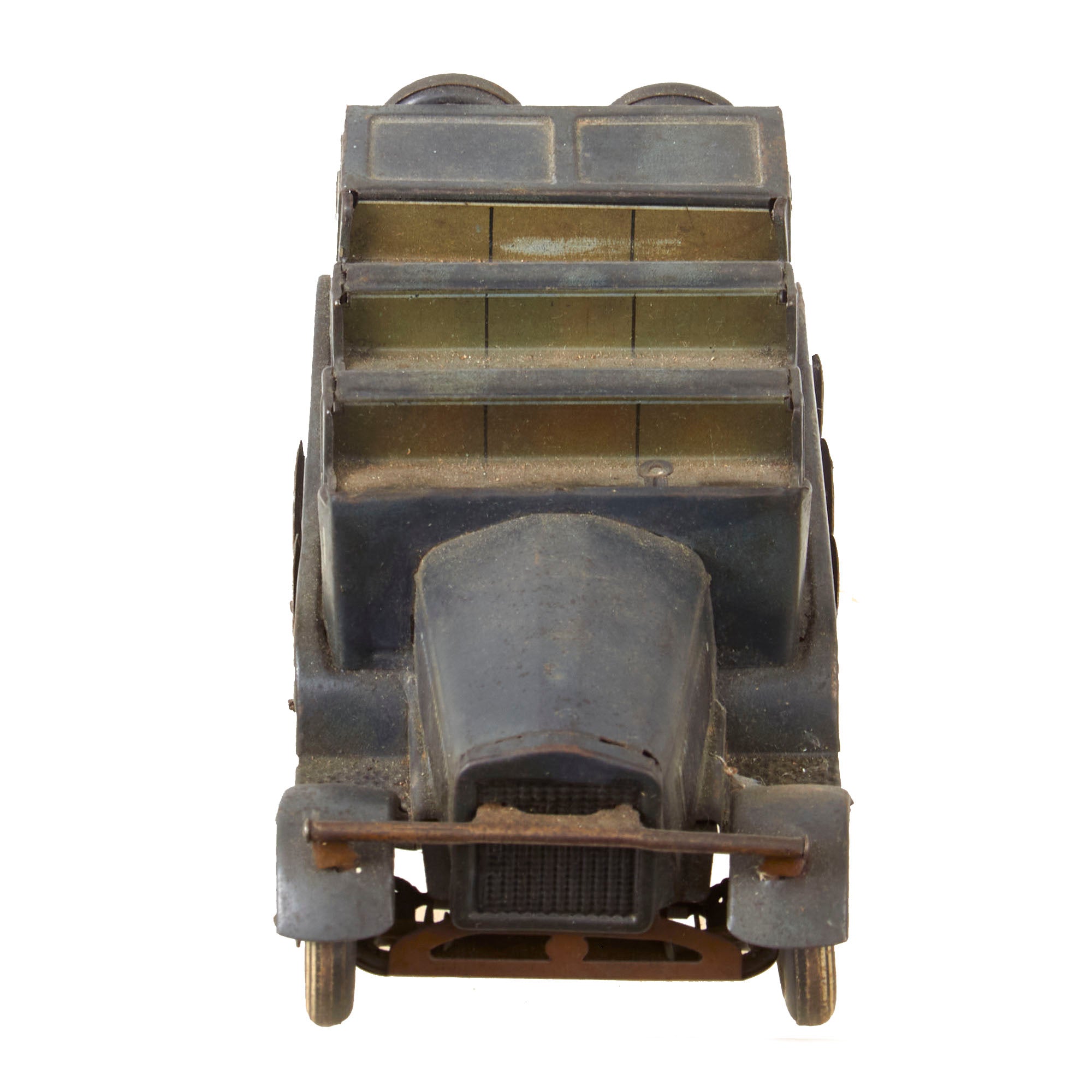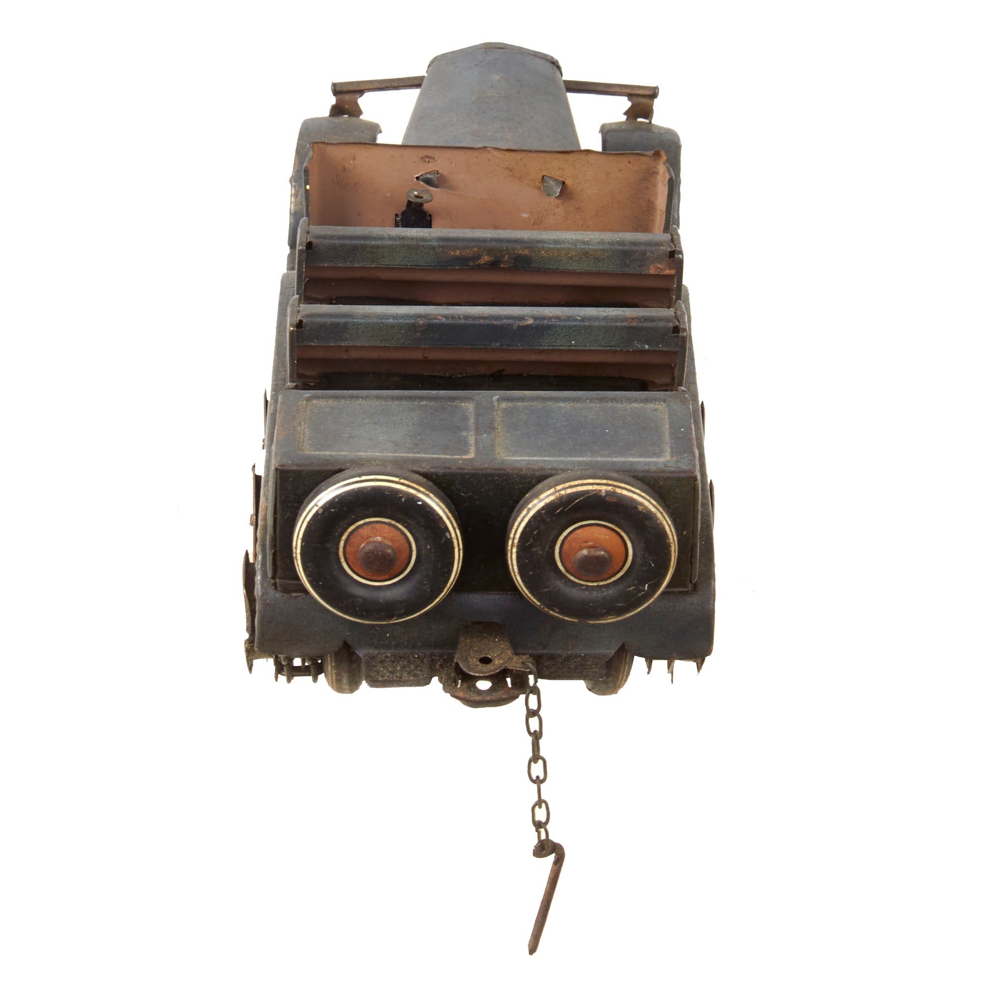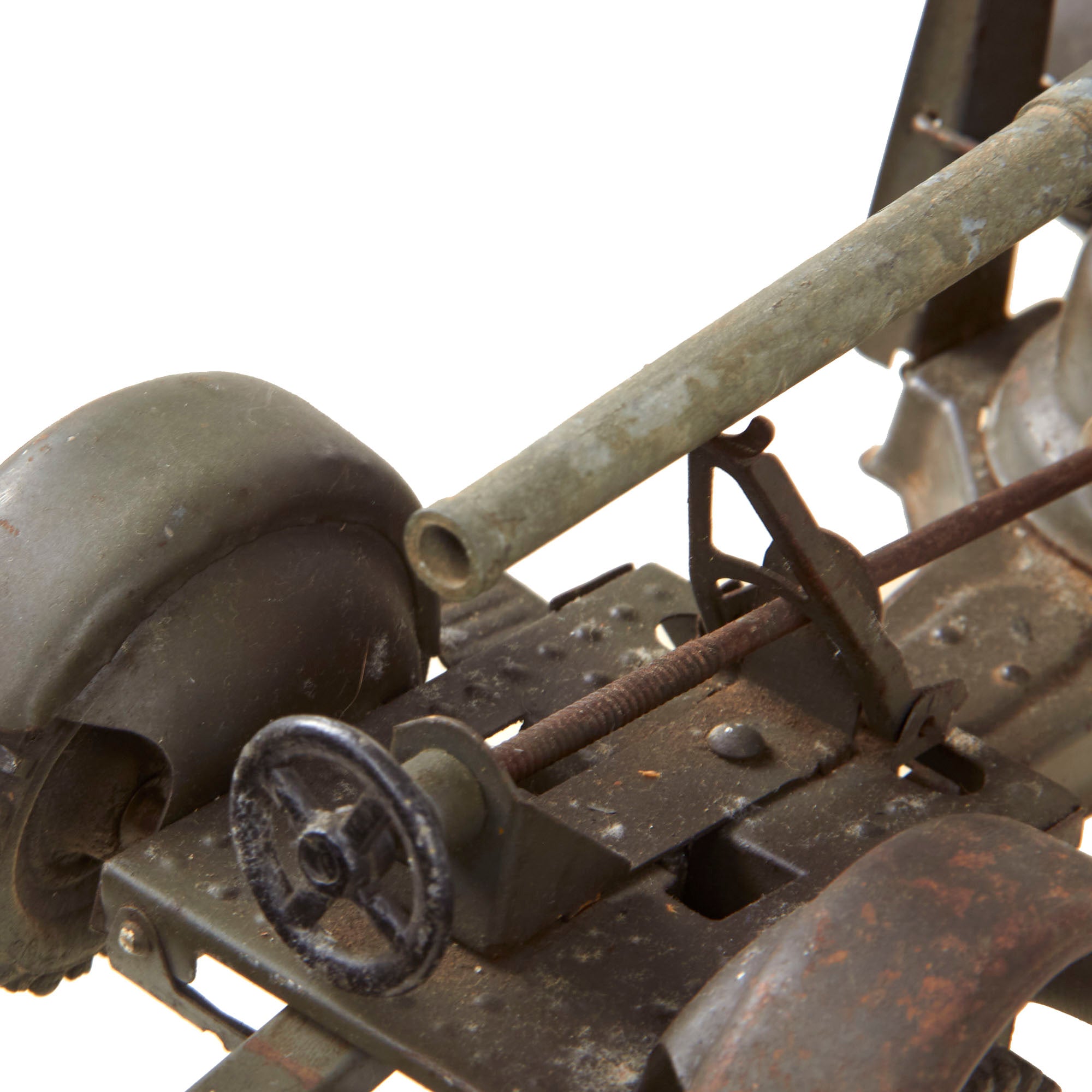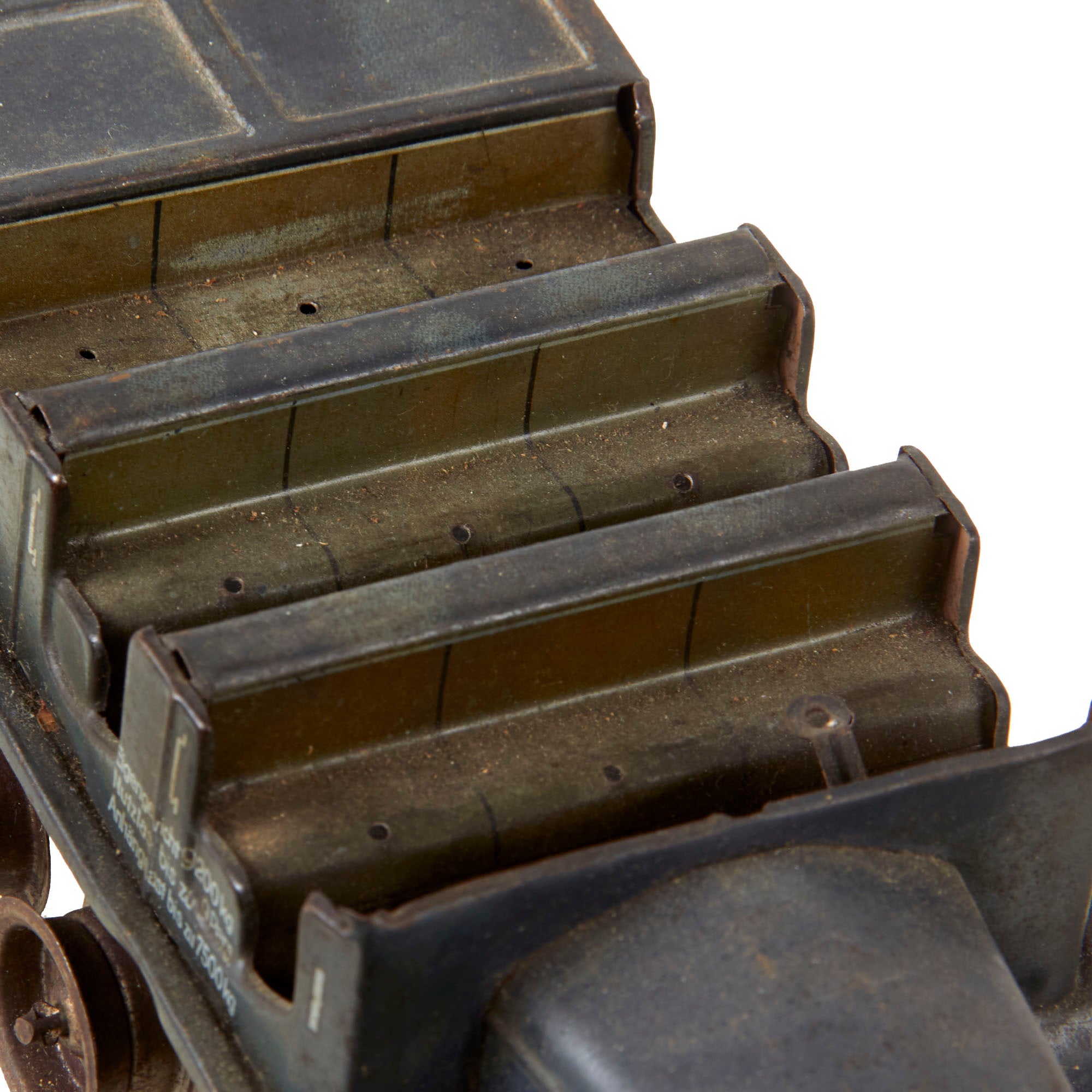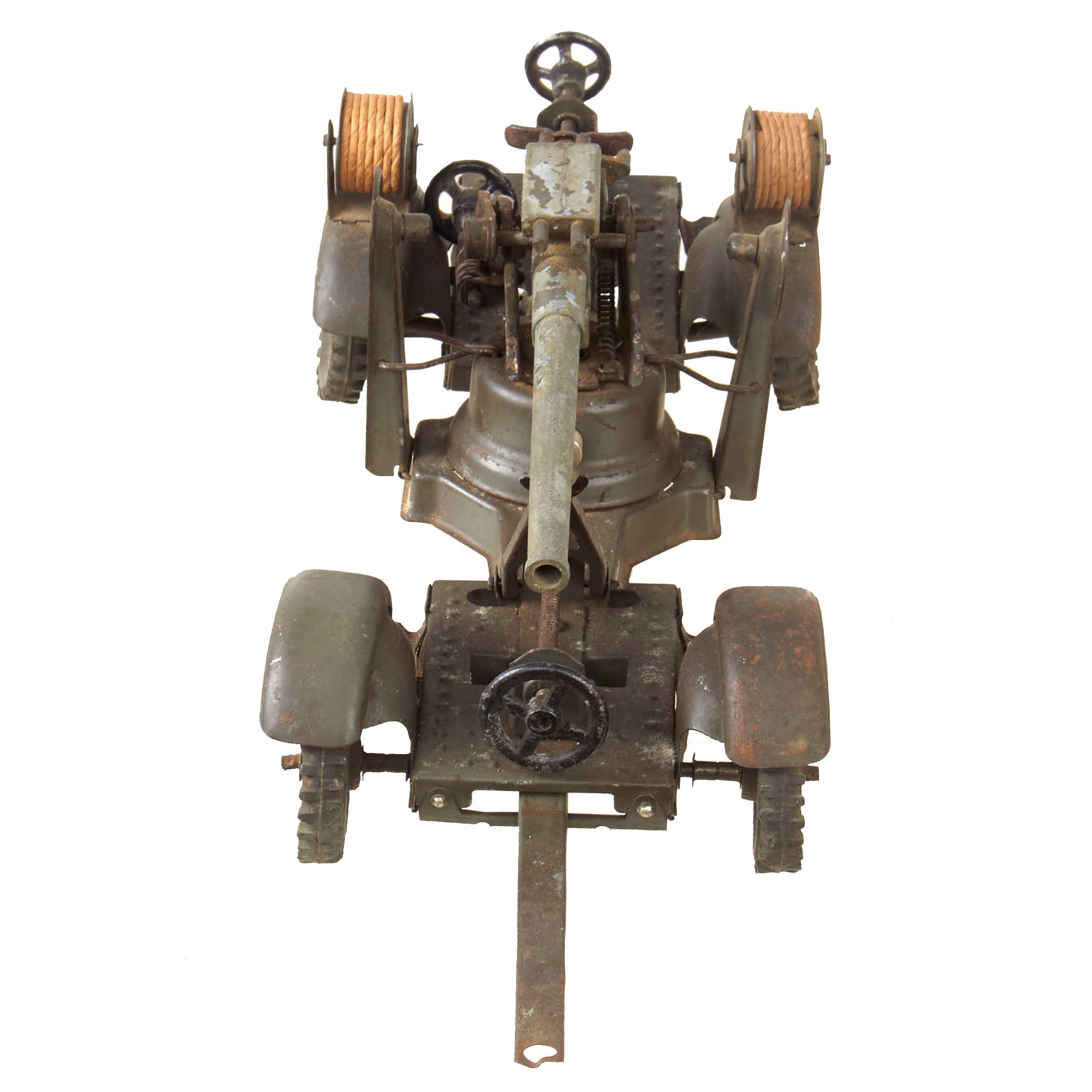 Original Item: Only One Available. This is a lovely German toy Wehrmacht Sd.Kfz. 11 Prime Mover with a towed Flak 88 gun from the WWII period, made by O&M Haußer from tinplate steel. They made a whole variety of these well made trucks. The car with the flak gun attached measures 20 3/4" x 7 3/4" x 7" with the gun barrel extended upwards, and features 14 wheels, with a Flak 88 gun mounted to the towed vehicle.