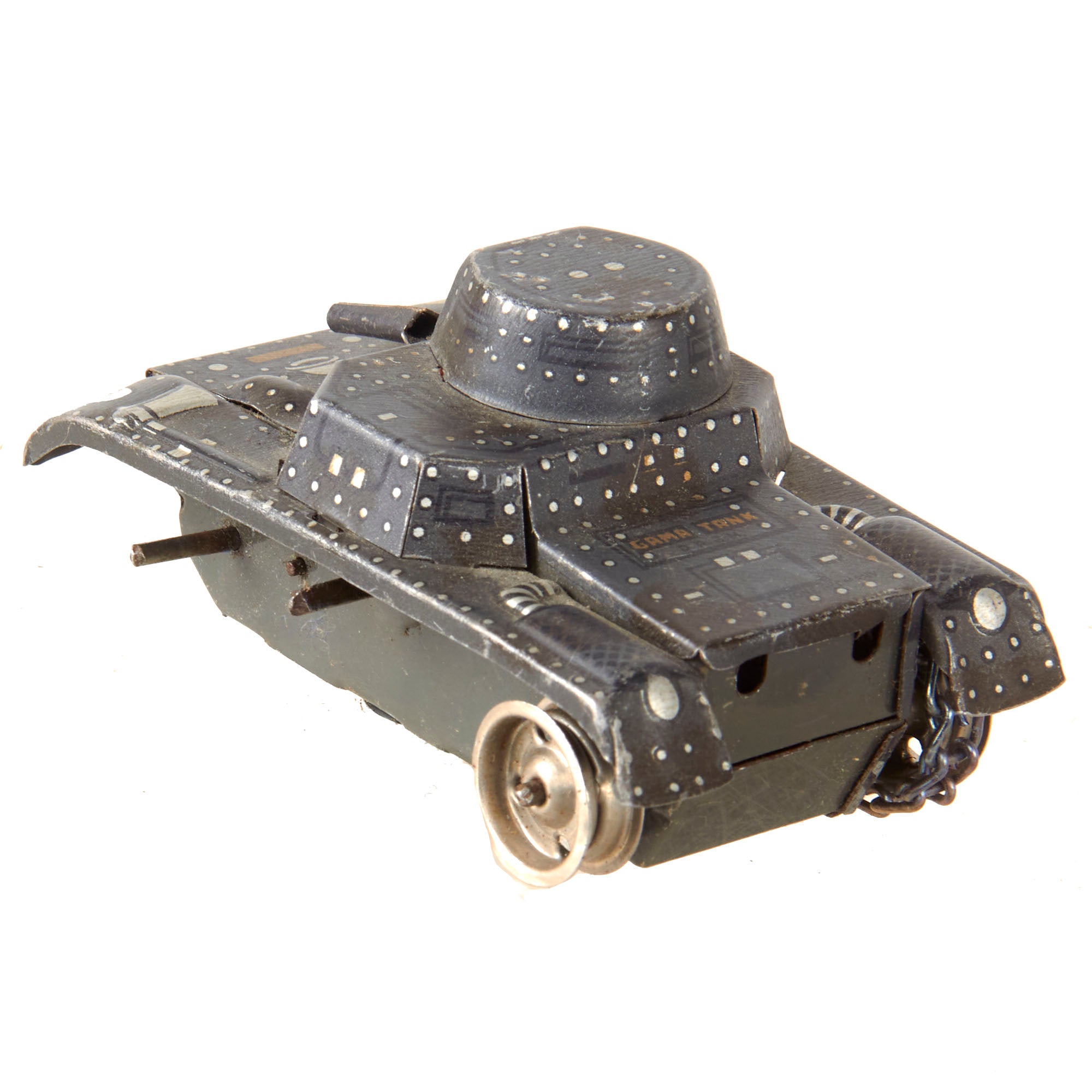 - Gama tank, small and missing several wheels and the tread on one side. 3 ½ x 2 x 1 ½”.