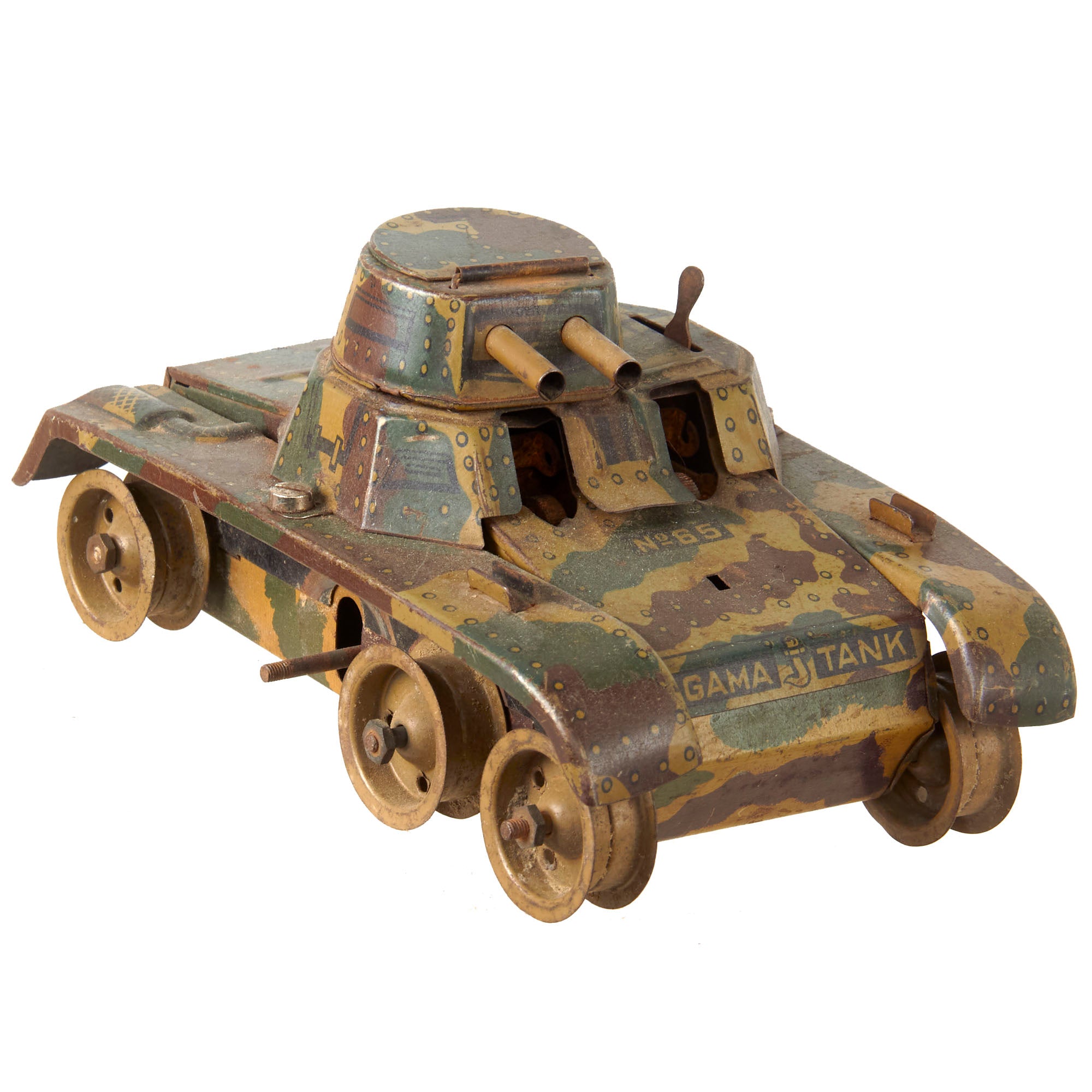 - No. 65 Gama Tank, missing 2 wheels and does not function. 6 x 3 ½ x 3”.