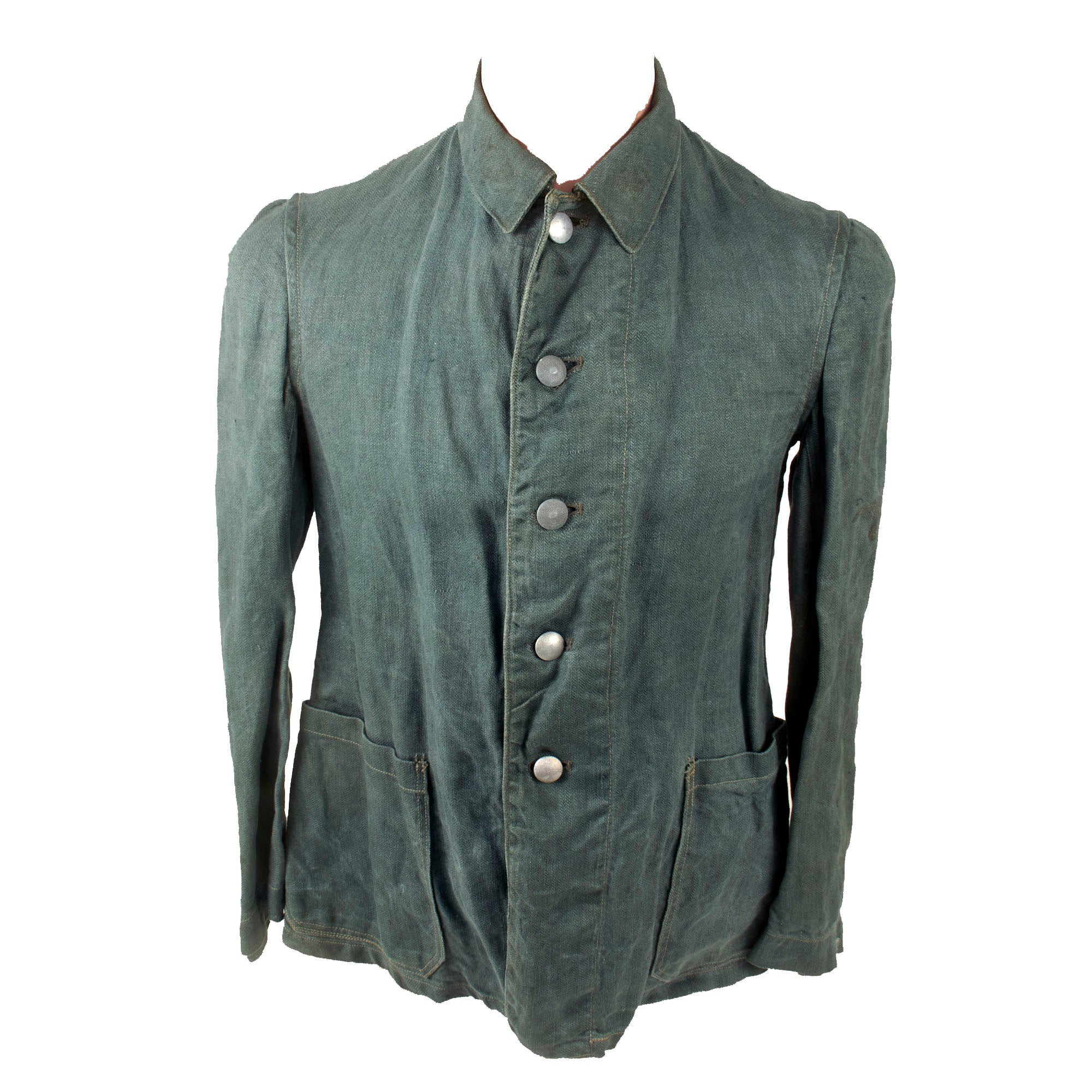 Because of the conditions on the many fronts and the fact that conflicts quickly flared up across much of the Greater Germany landmass, the gray color of this fatigue uniform didn't really match the new camouflage concepts, especially because when in service it would fade to an off white color. By an order of February 12th, 1940 orders were issued stating that these drill uniforms had to be manufactured in green, a color often called "Reed Green". This new version was very popular at the front during the summer months as a cooler alternative to the combat jacket and also as an overall.