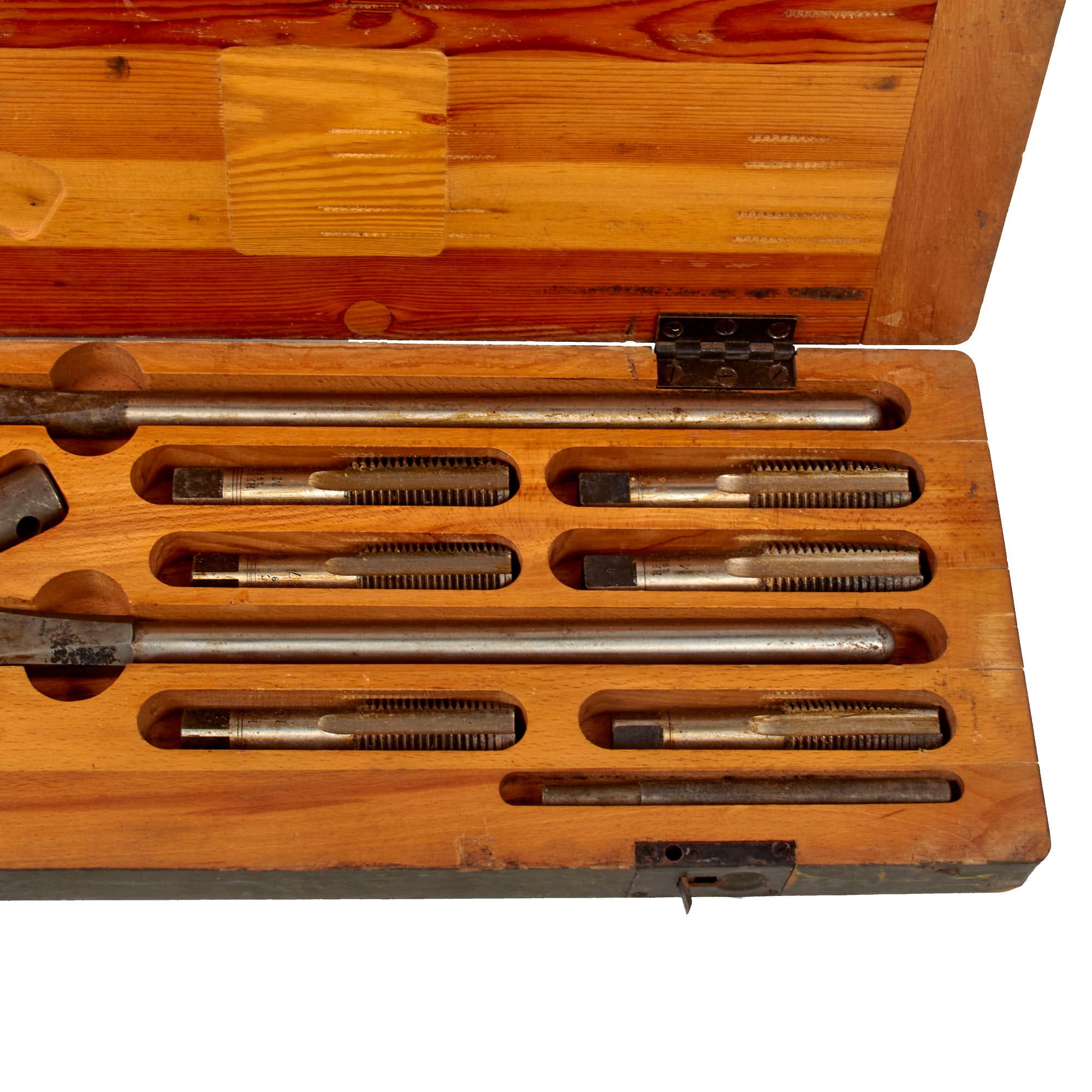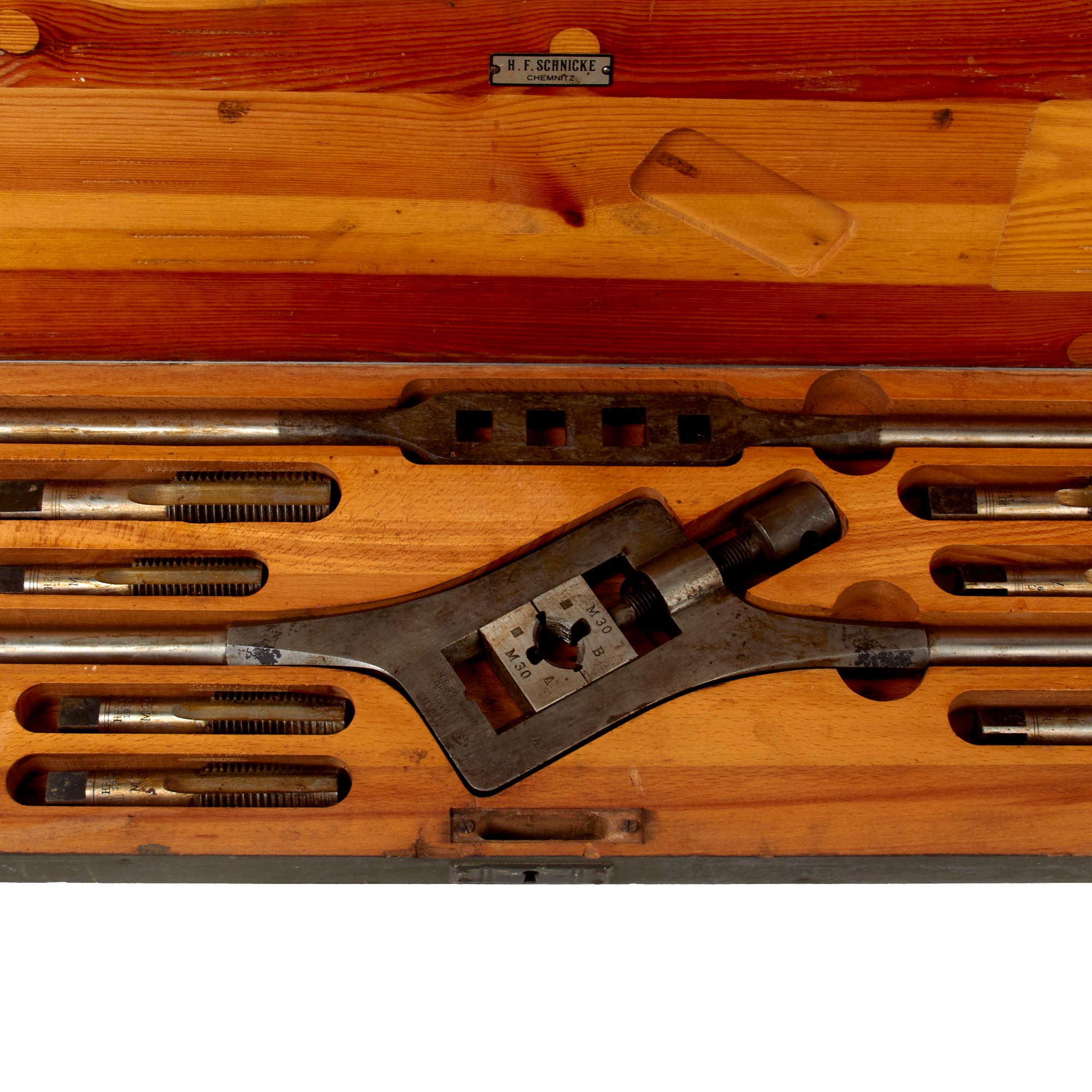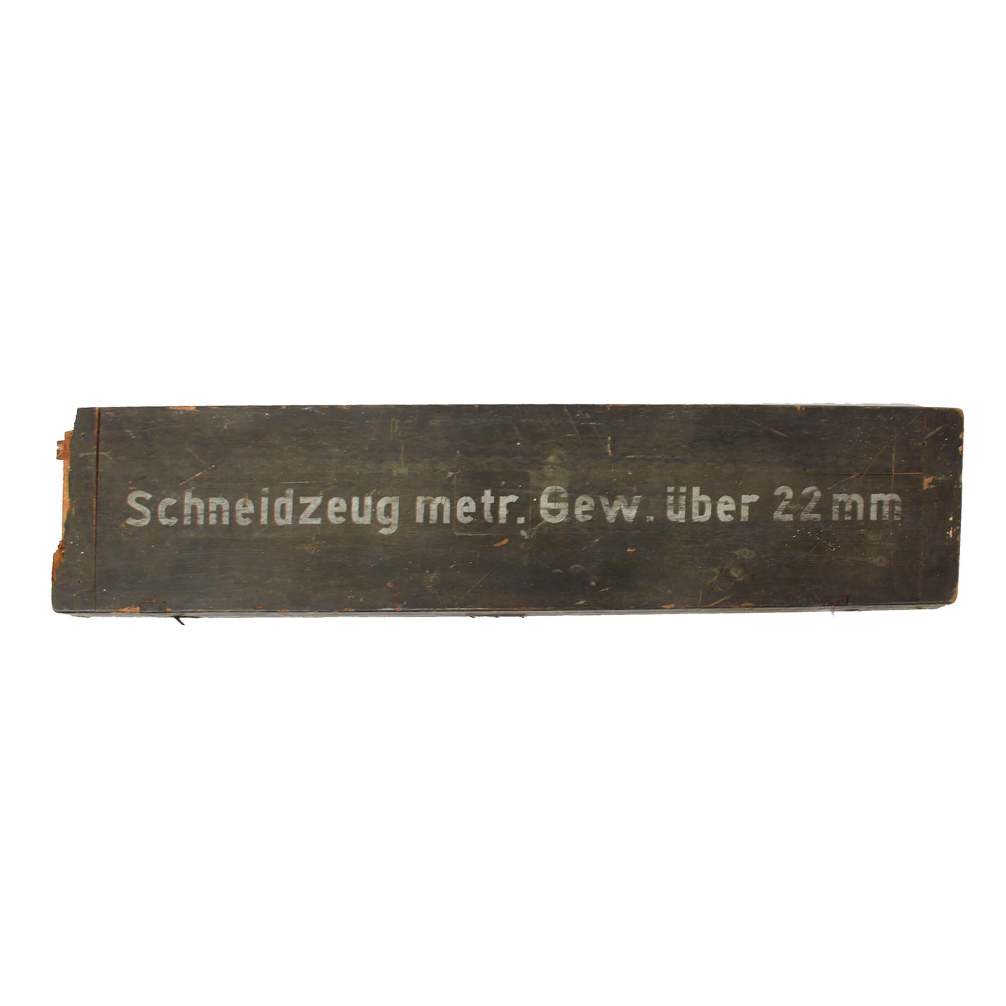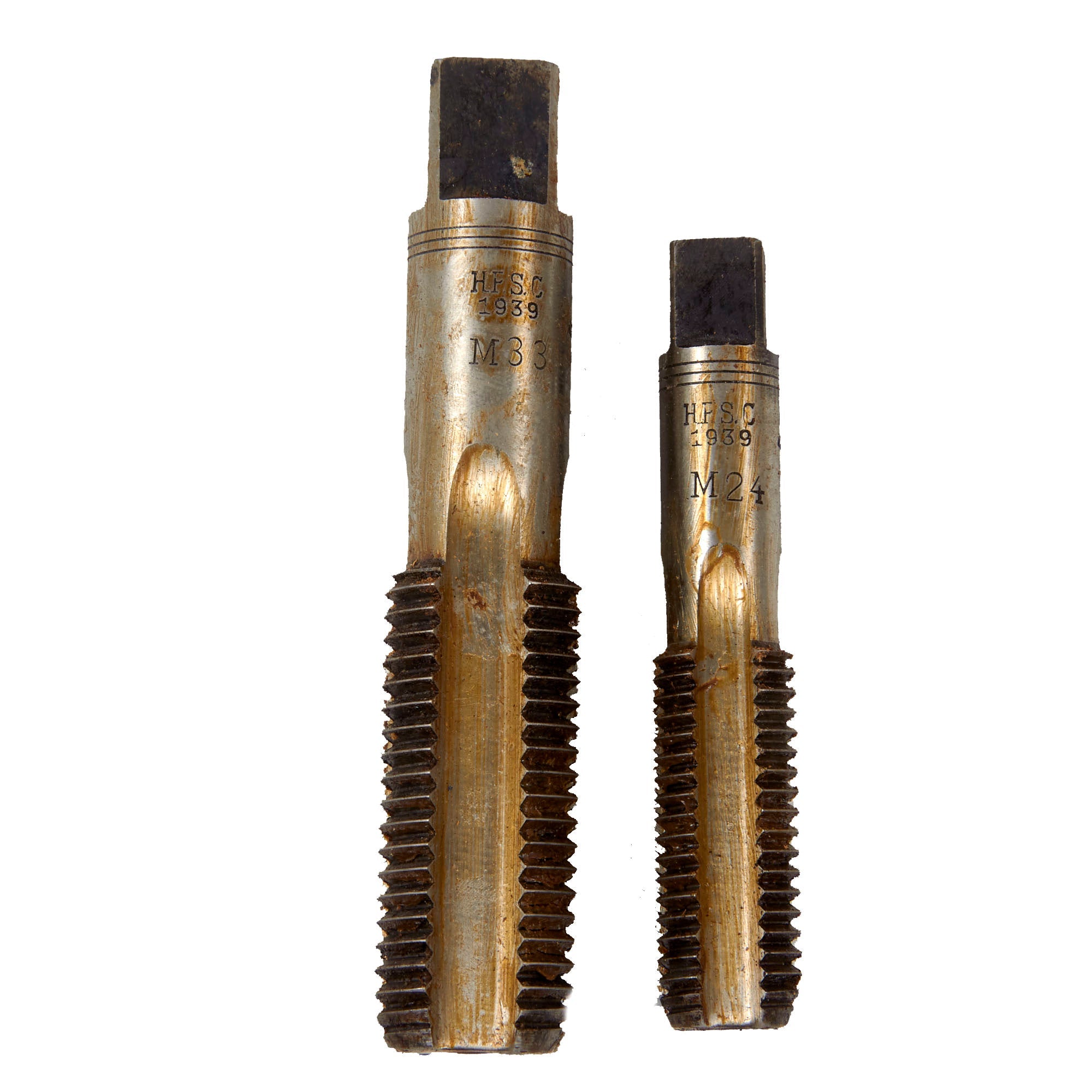 Original Item. Only One Available. This is a great complete set of taps & dies used during Germany during World War II. In the context of threading, taps and dies are the two classes of tools used to create screw threads. Many are cutting tools; others are forming tools. A tap is used to cut or form the female portion of the mating pair. A die is used to cut or form the male portion of the mating pair.