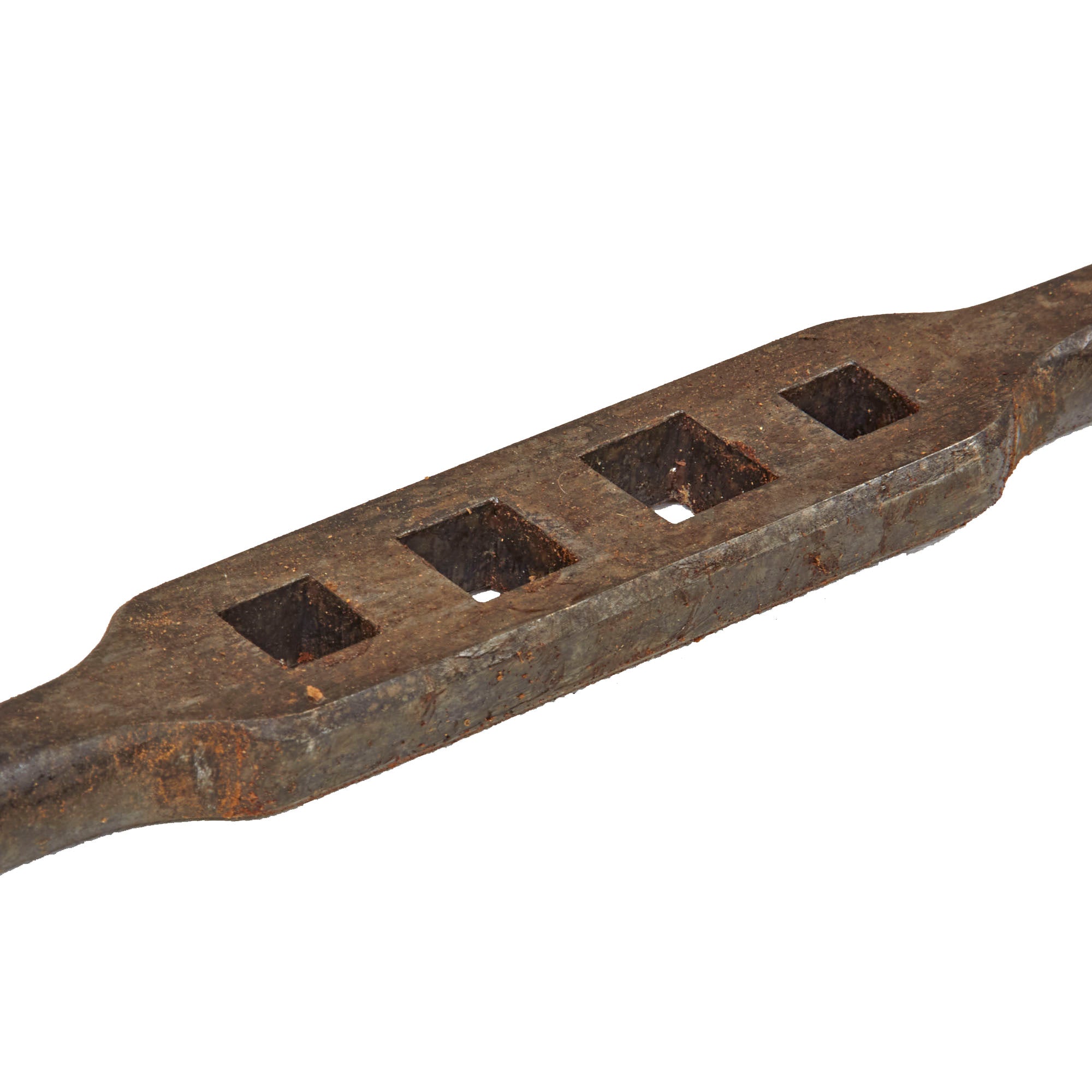 The crate looks great on the interior but the exterior shows heavy damage to one corner and what appears to be woodworm damage, although it should look fine for display. The crate measures 9 ¼ x 2 ¼ x 39 ¾”, and weighs 42lbs.