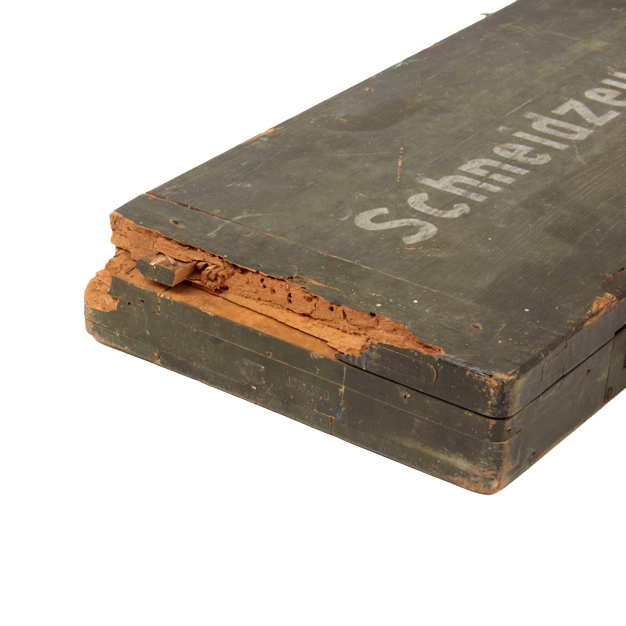 Schneidzeug translates to cutting tools. The crate has a small tag on the interior naming the manufacturer: