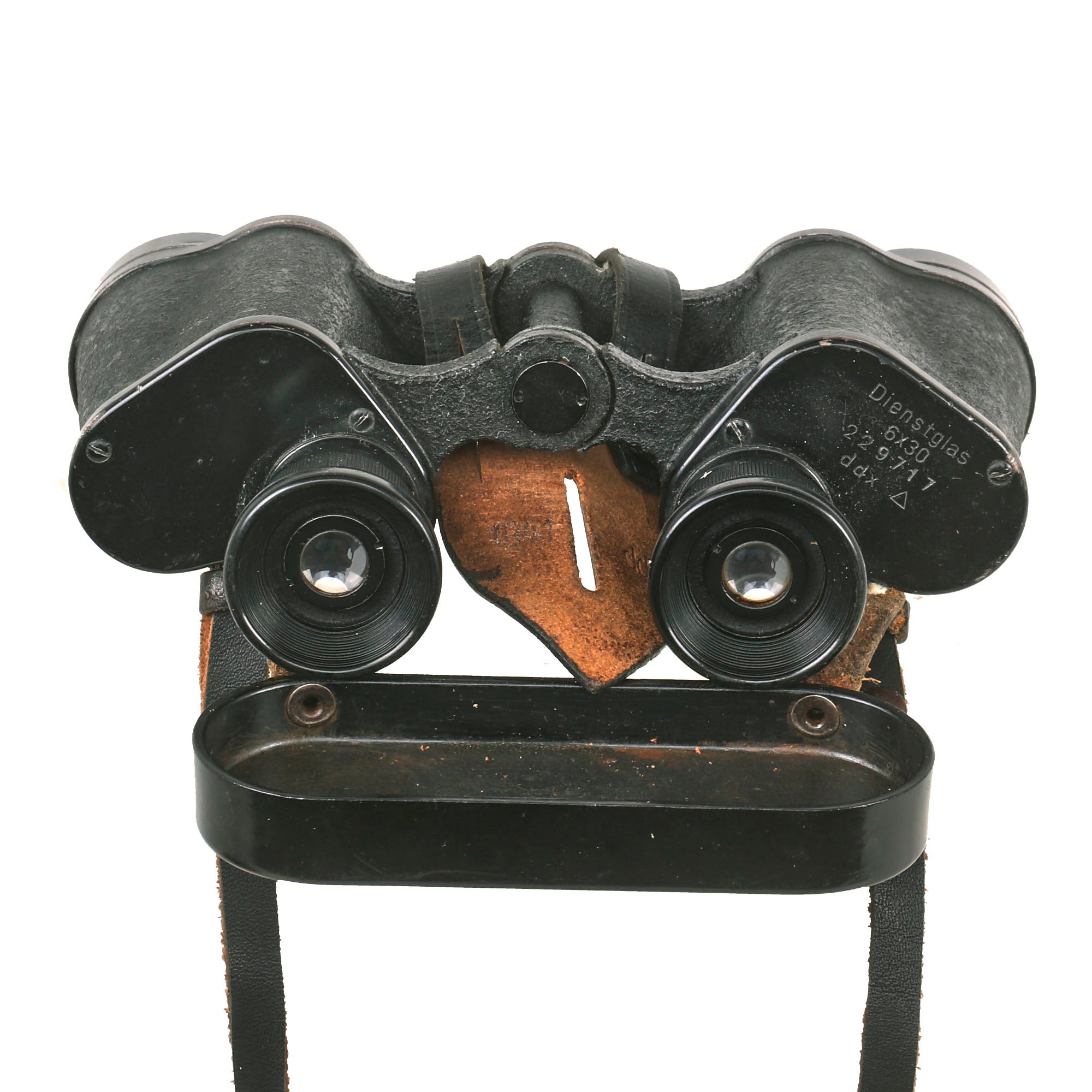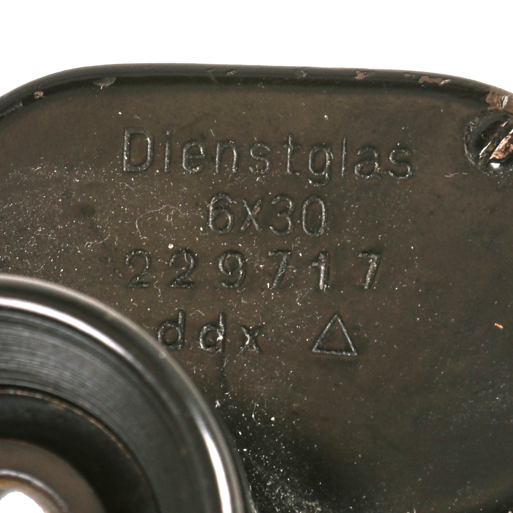 Original Item: Only One Available. The 6x30 Dienstglas (Service Glass) was one of the most used German issued binoculars of WWII. This example is fully functional, with clear optics, and working adjustments. It is nicely marked as follows on the base of the right barrel:
