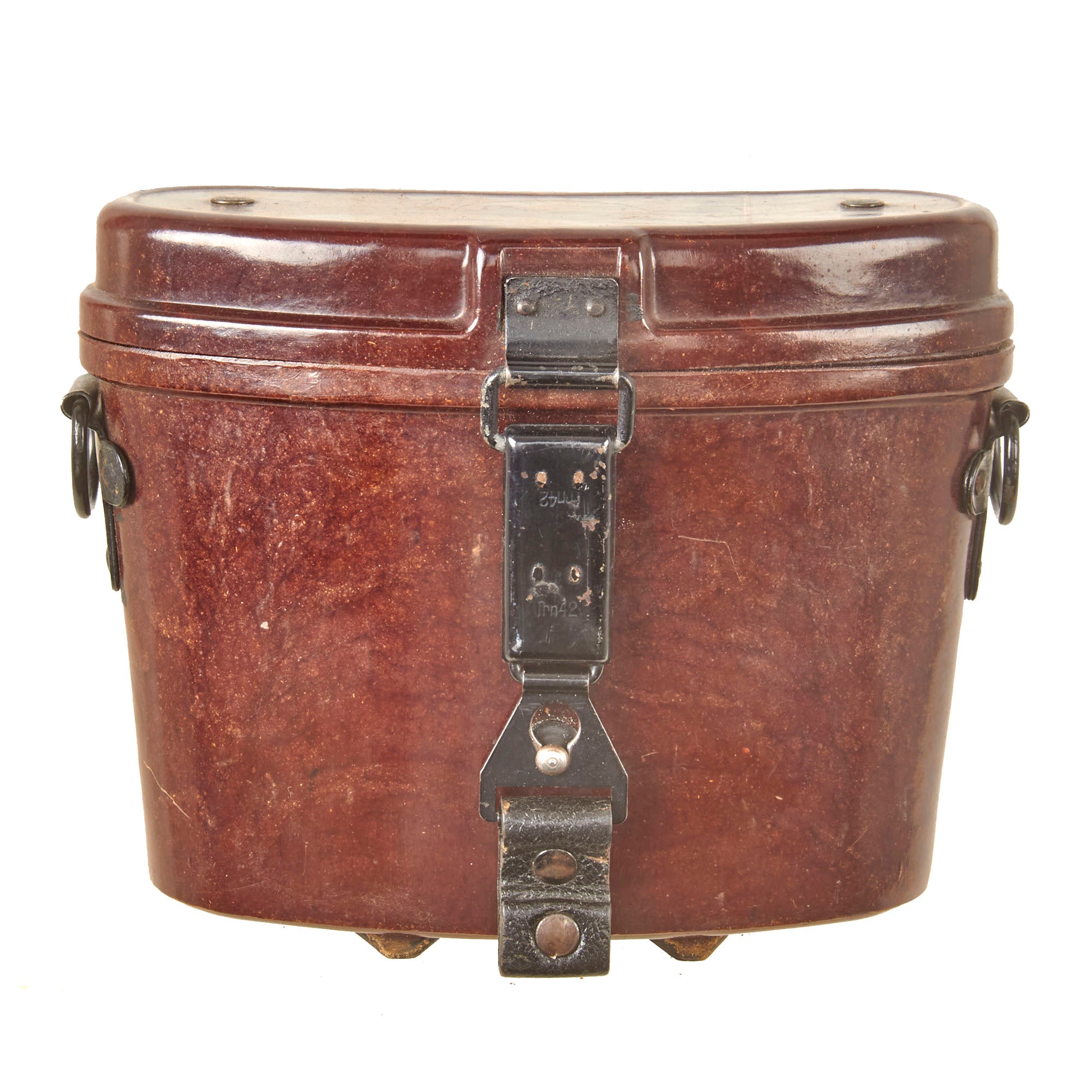 This is the maker code for Srb & Stys Fabrik Praziser Messinstrumente, Prague, Czechoslovakia. The use of the three letter code indicates that these were made after 1940. The included Bakelite carry case is in fair condition overall and retains the belt attachment straps, but no carry strap. Inside the case are mold numbers, as well as a maker code, ehe, for H. Römmler of Spremberg / Nieder Lothringen. This was a known plastic maker during WWII, who also produced bakelite buttstocks for the MG 34.