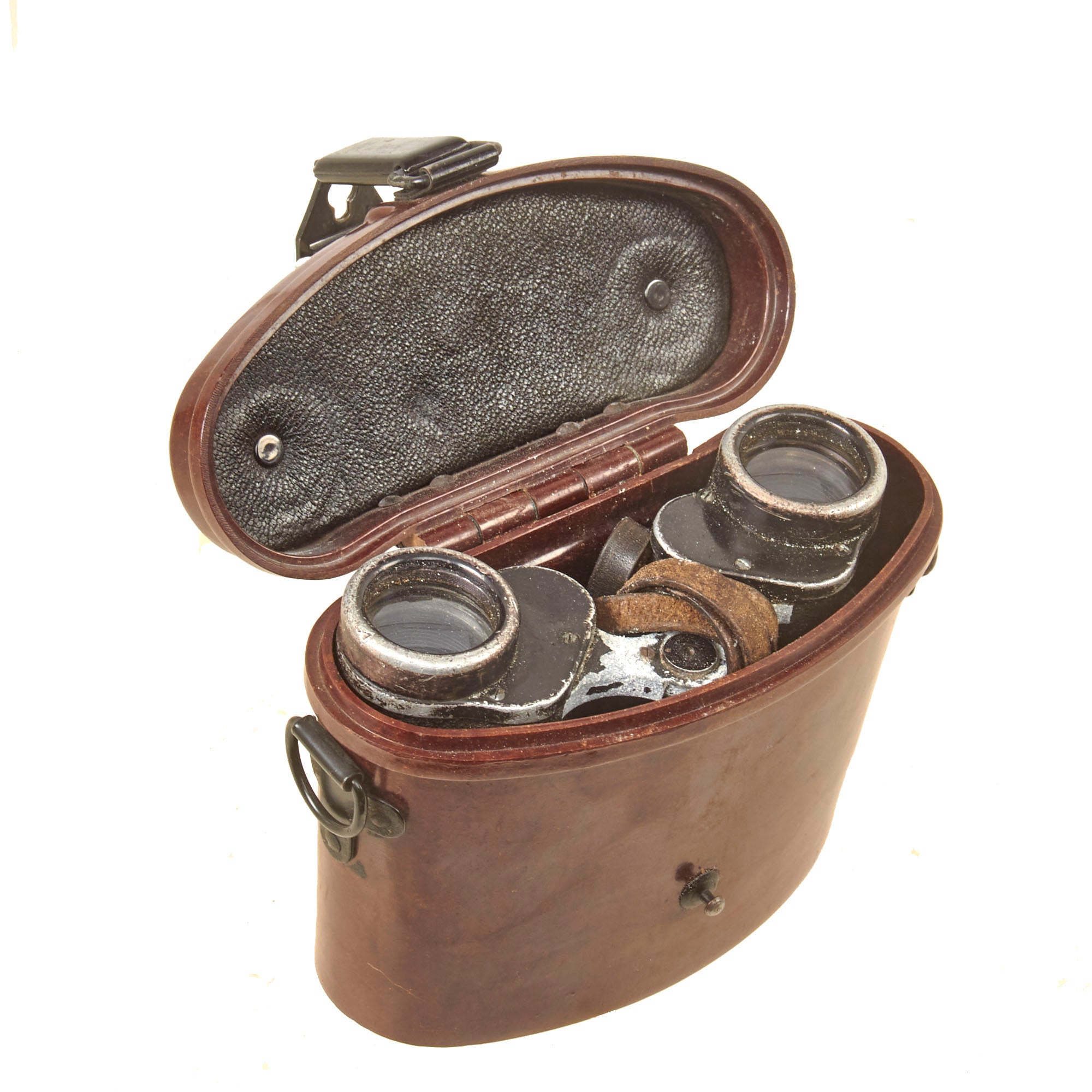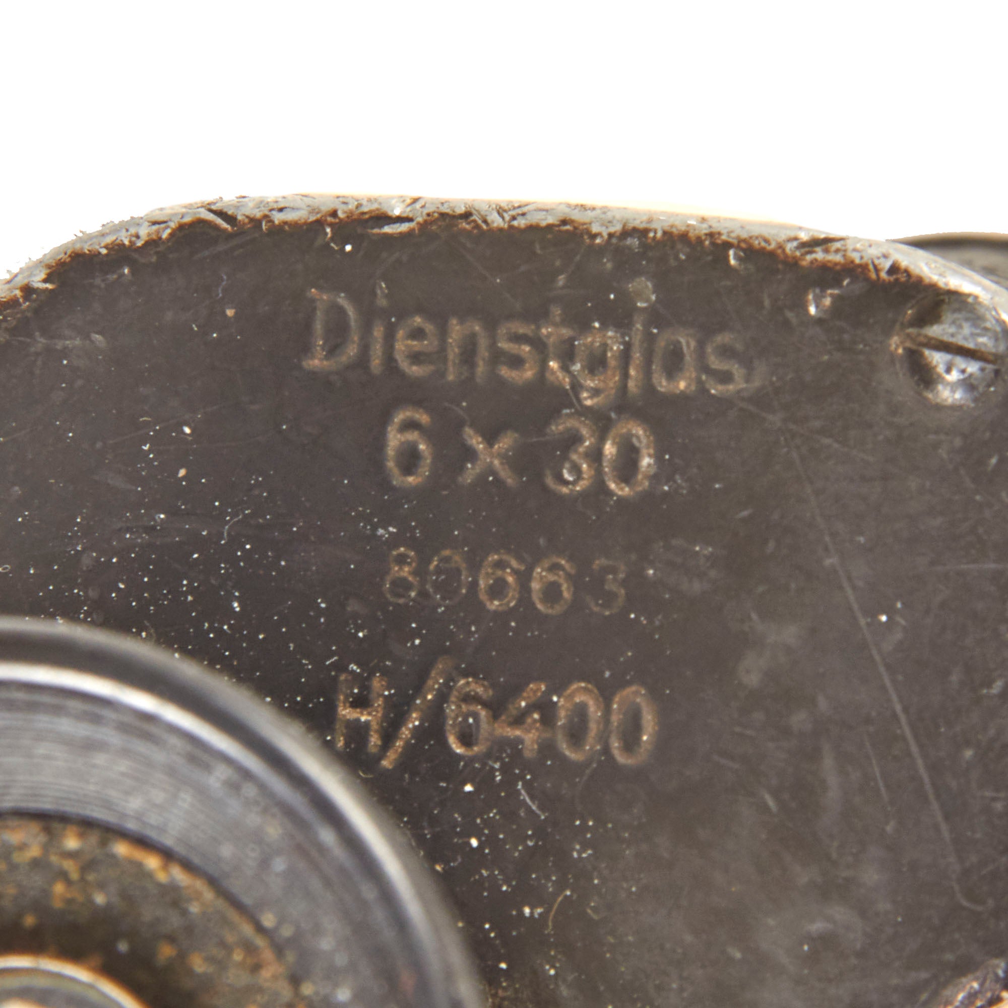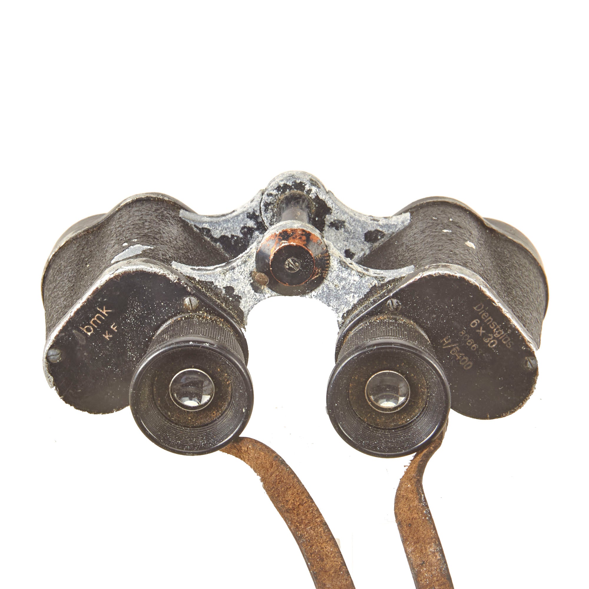 • Original Item: Only One Available. The 6x30 Dienstglas (Service Glass) was one of the most used German issued binoculars of WWII. This example is fully functional, with mostly clear optics, and working adjustments. Unfortunately the rubber eyepiece cover is missing and there is heavy wear across the binoculars, but the neck strap is intact. It is nicely marked as follows on the base of the right barrel:
