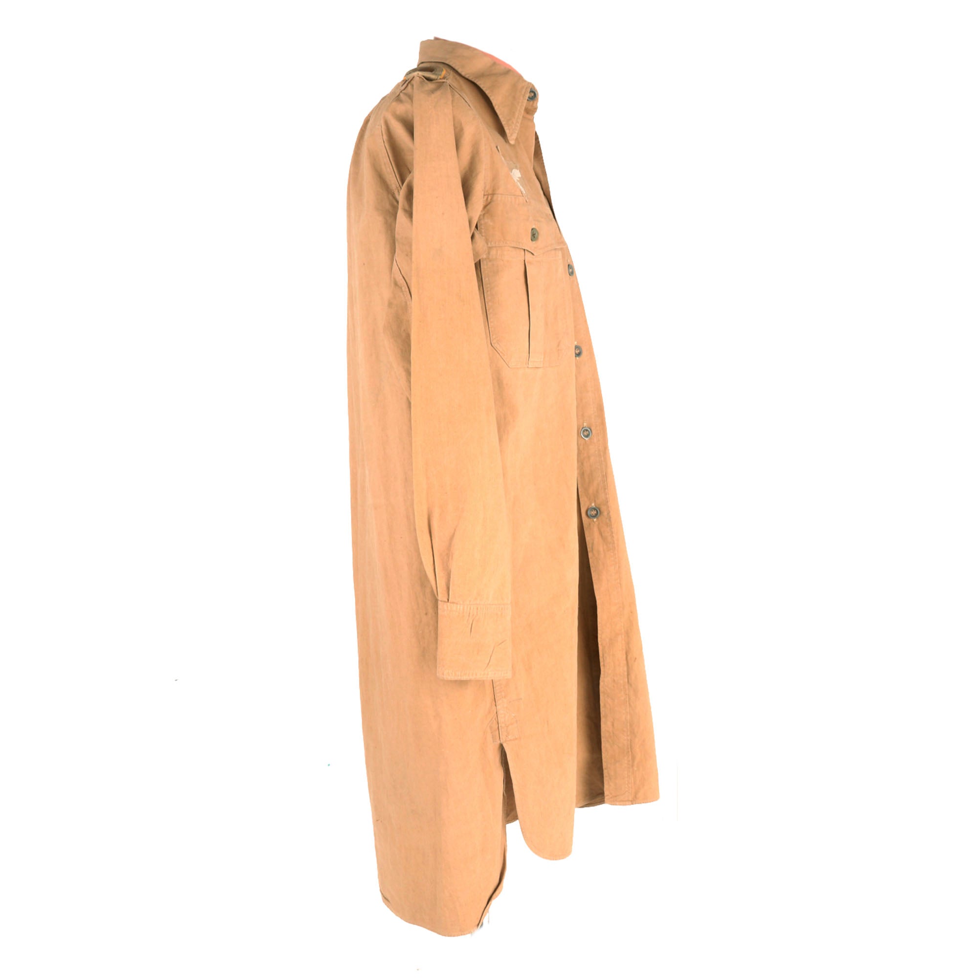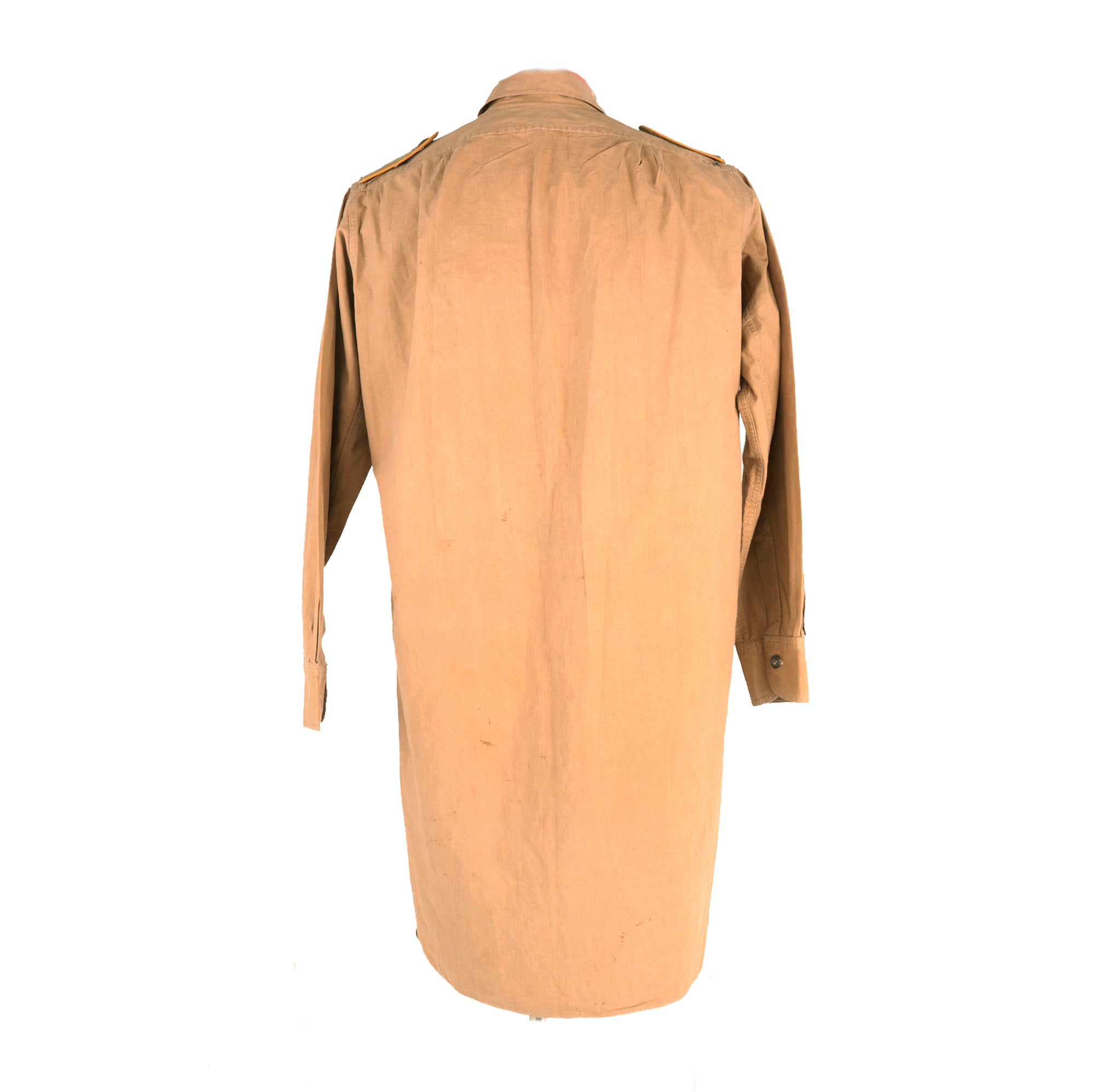 Original Item: Only One Available. Just acquired from a large military show, this is an fantastic lightly used rare World War II Deutsches Afrikakorps (DAK) Luftwaffe NCO Flight Jacket / Shirt, made from medium weight cotton with standard squared weave. It is the correct Dunkelgelb (dark yellow) tan color used by other branches in the Tropical campaigns, and features a fully open front closure, not the "step in" or "pull over" type like the work shirts that were also used. This is a jacket or long shirt intended to be worn in flight, where some level of insulation could be needed despite the hot climate.