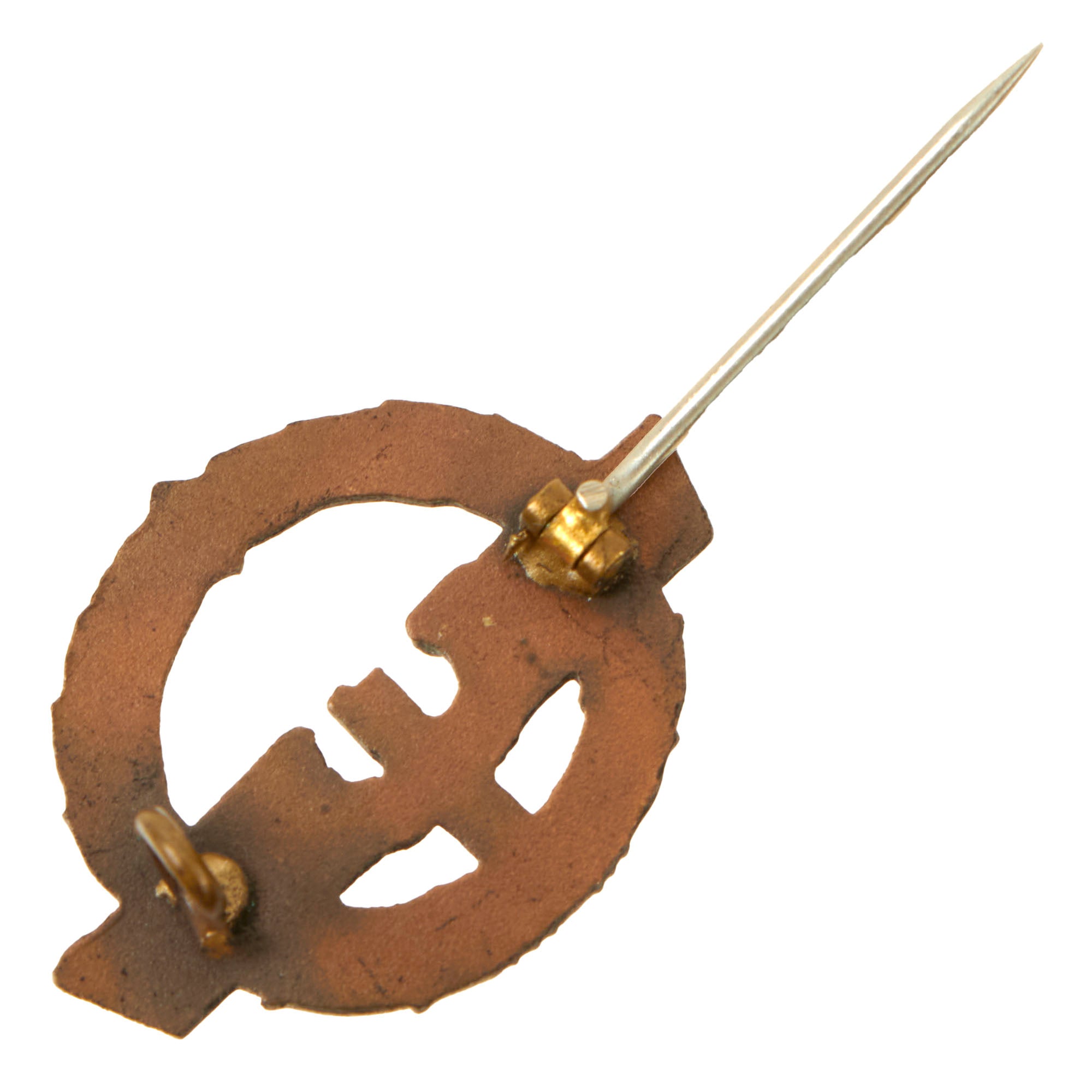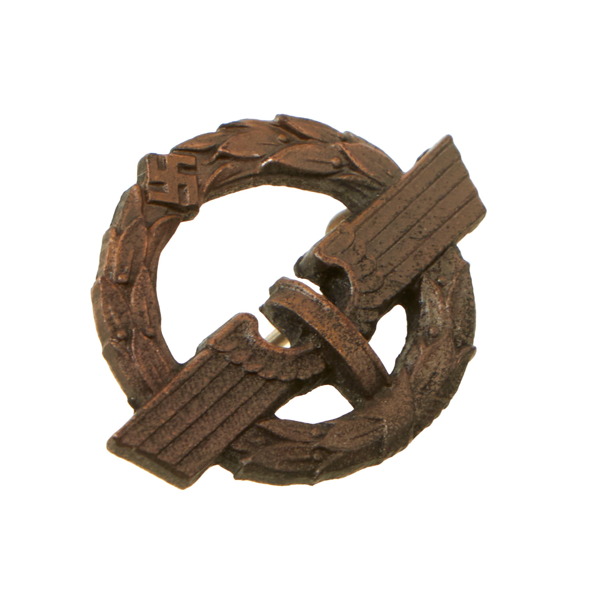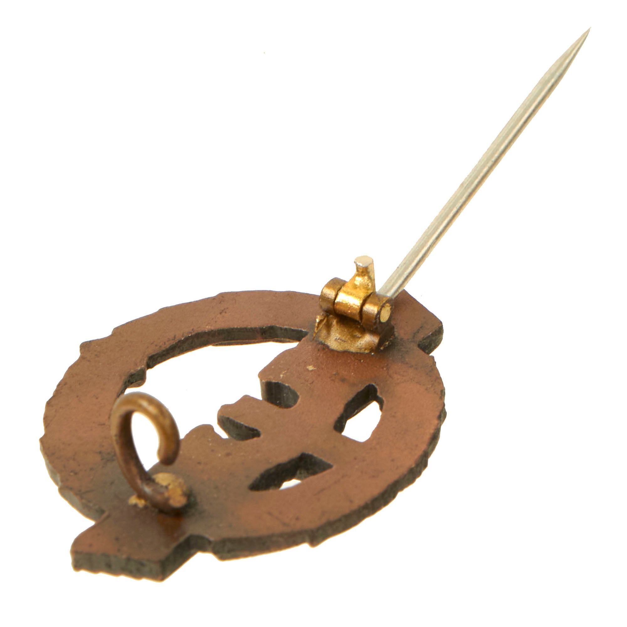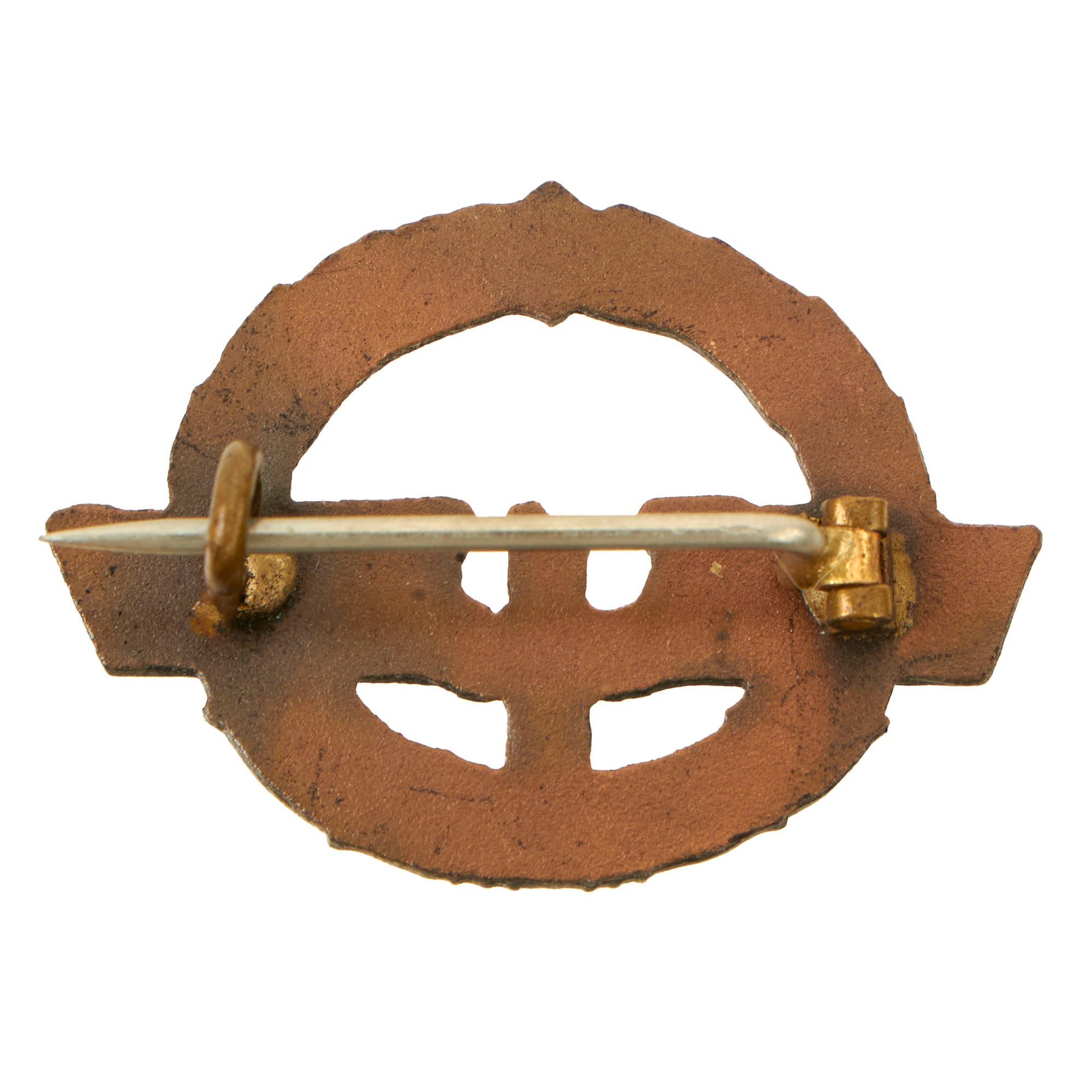 This example is textbook, measuring approximately 30mm wide by 20mm tall, and still retains most of the original bronze wash, which is so often missing from German awards. The body of the badge is most likely zinc alloy, while the functional pinback and catch are nickel silver and brass.