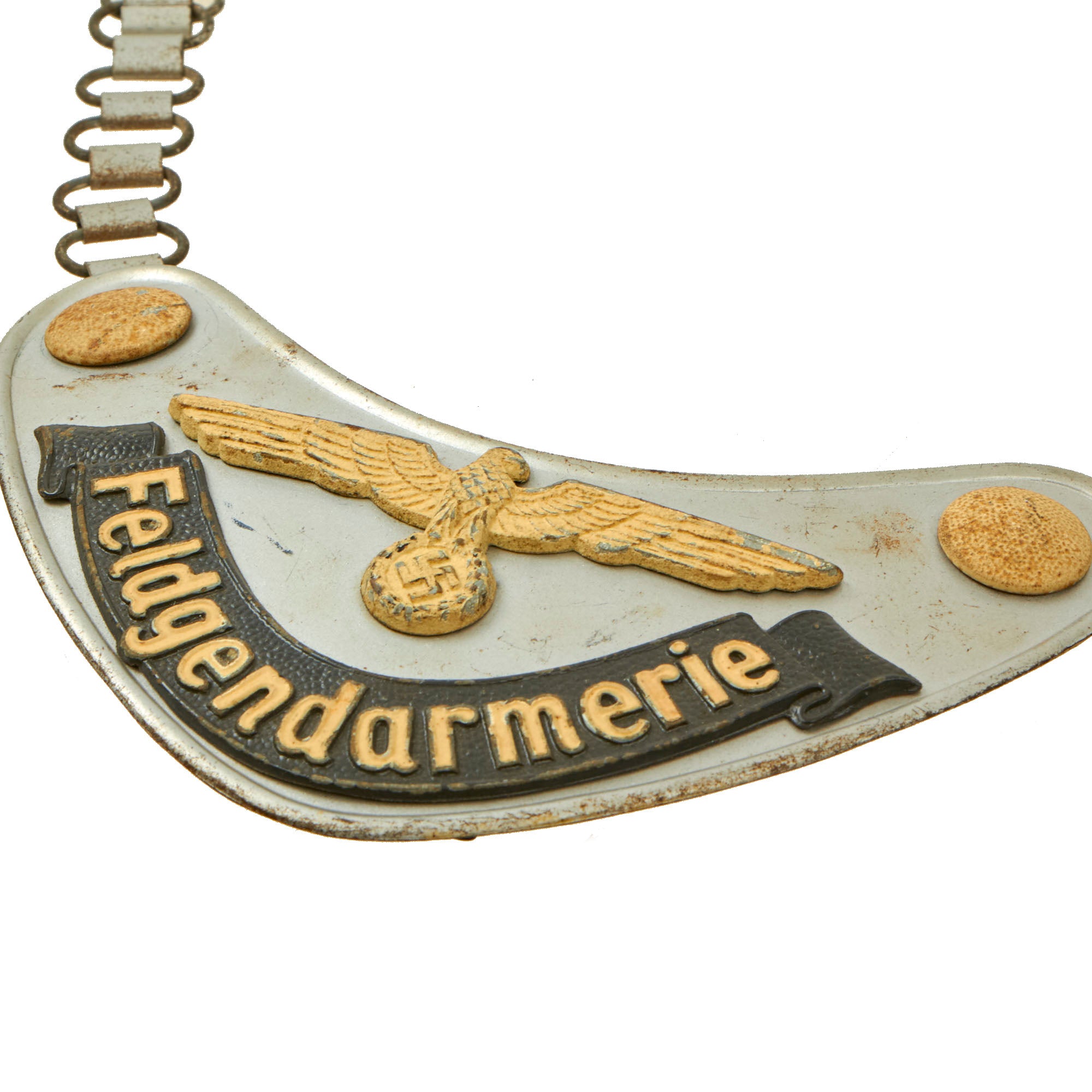 Original German WWII Feldgendarmerie Police Gorget by J.C. Maedicke of Berlin with Phosphorescent Paint and Neck Chain