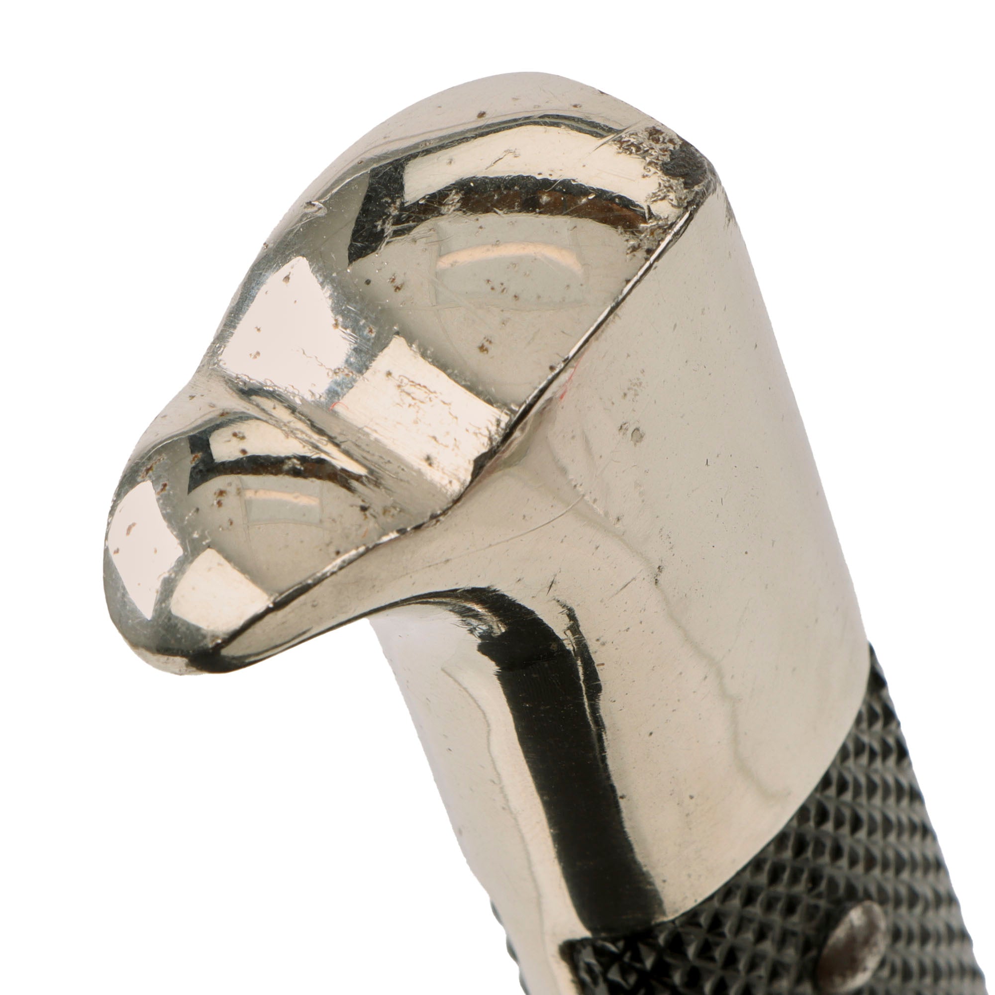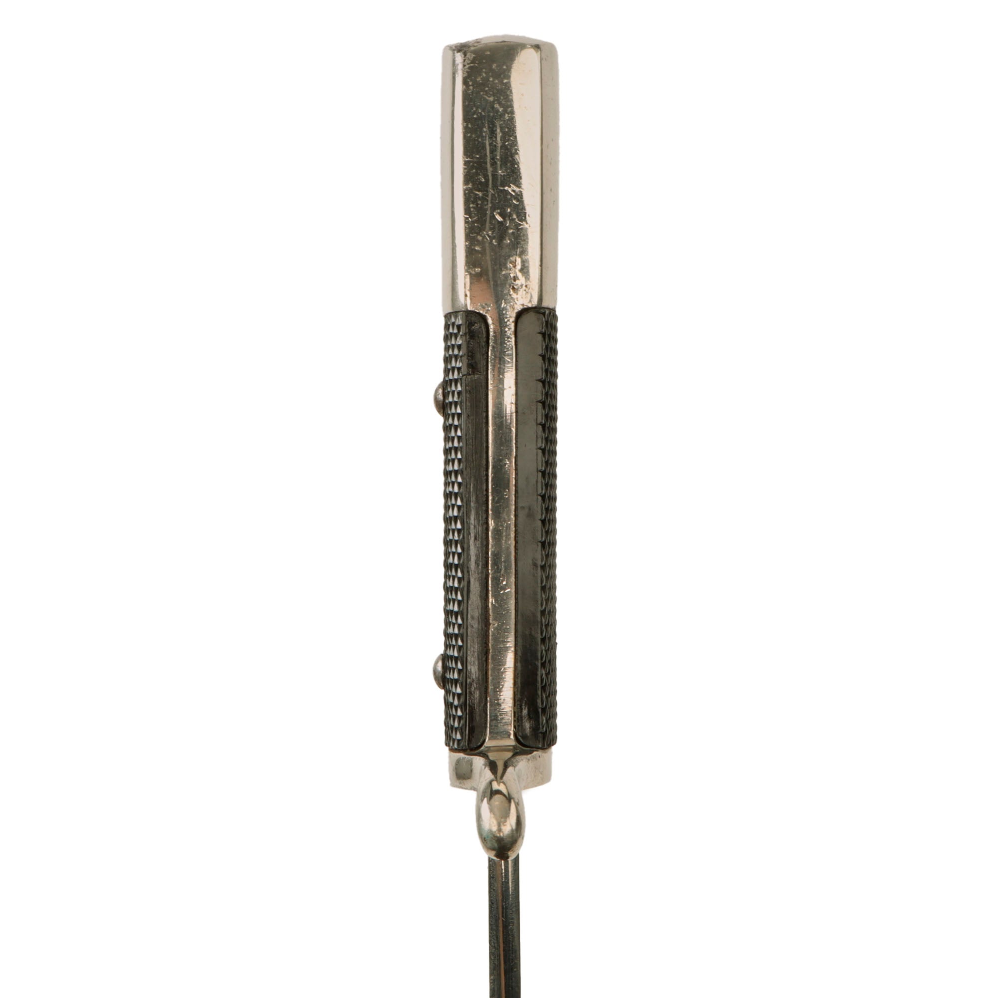 The blade is an excellent example, and the nickel plating is close to 100%, with just some runner wear and light scratching keeping it from being perfect. As is correct it has not had any sharpening, though there is a tiny bend on the edge. The original leather blade buffer is now missing, and there is no maker mark on the blade. This is not uncommon, as often knife companies would sell unmarked blade blanks to retailers, who would then mount and plate them.