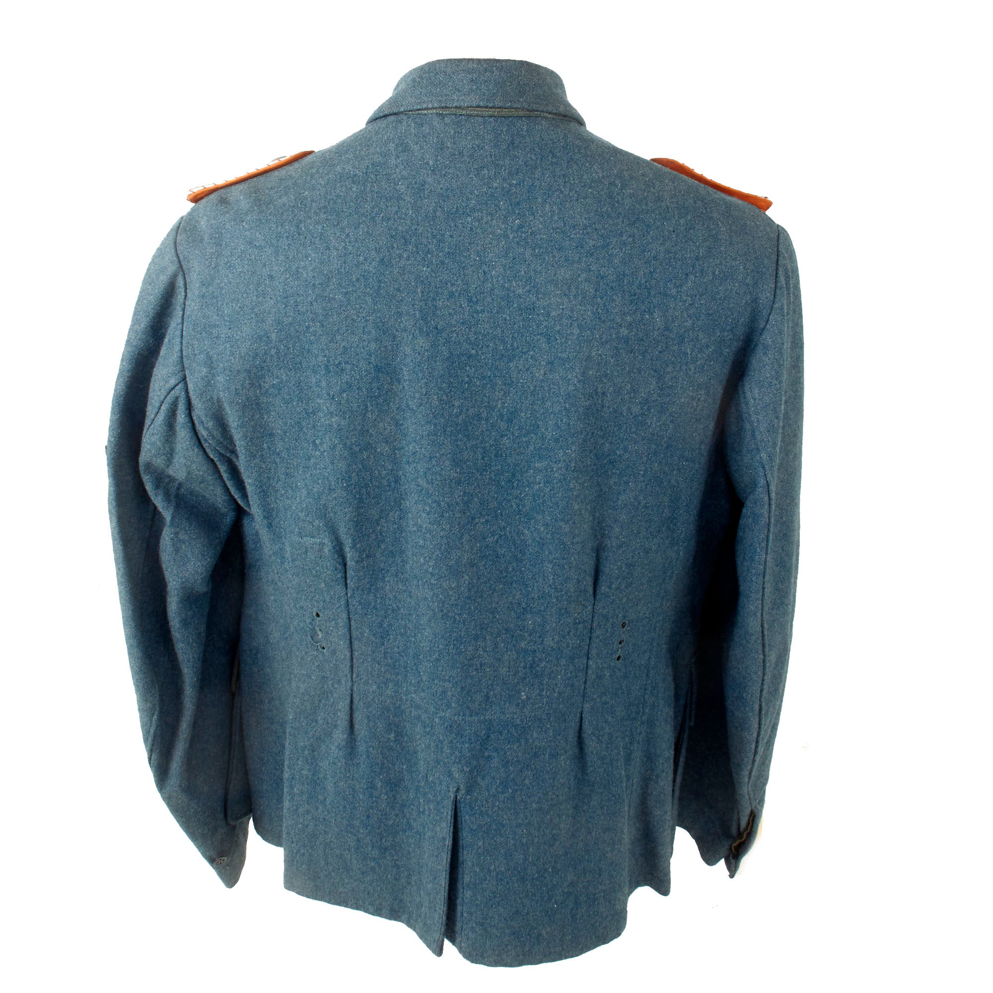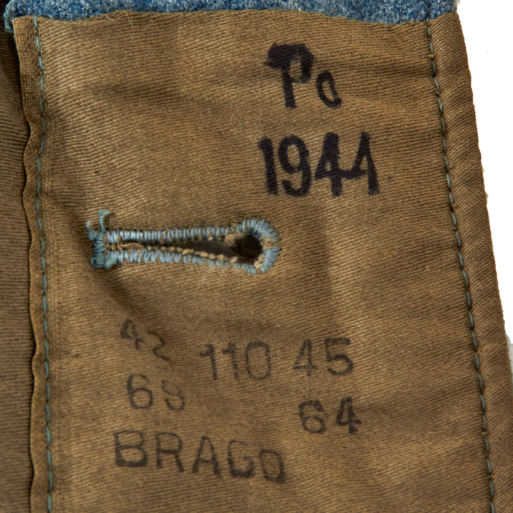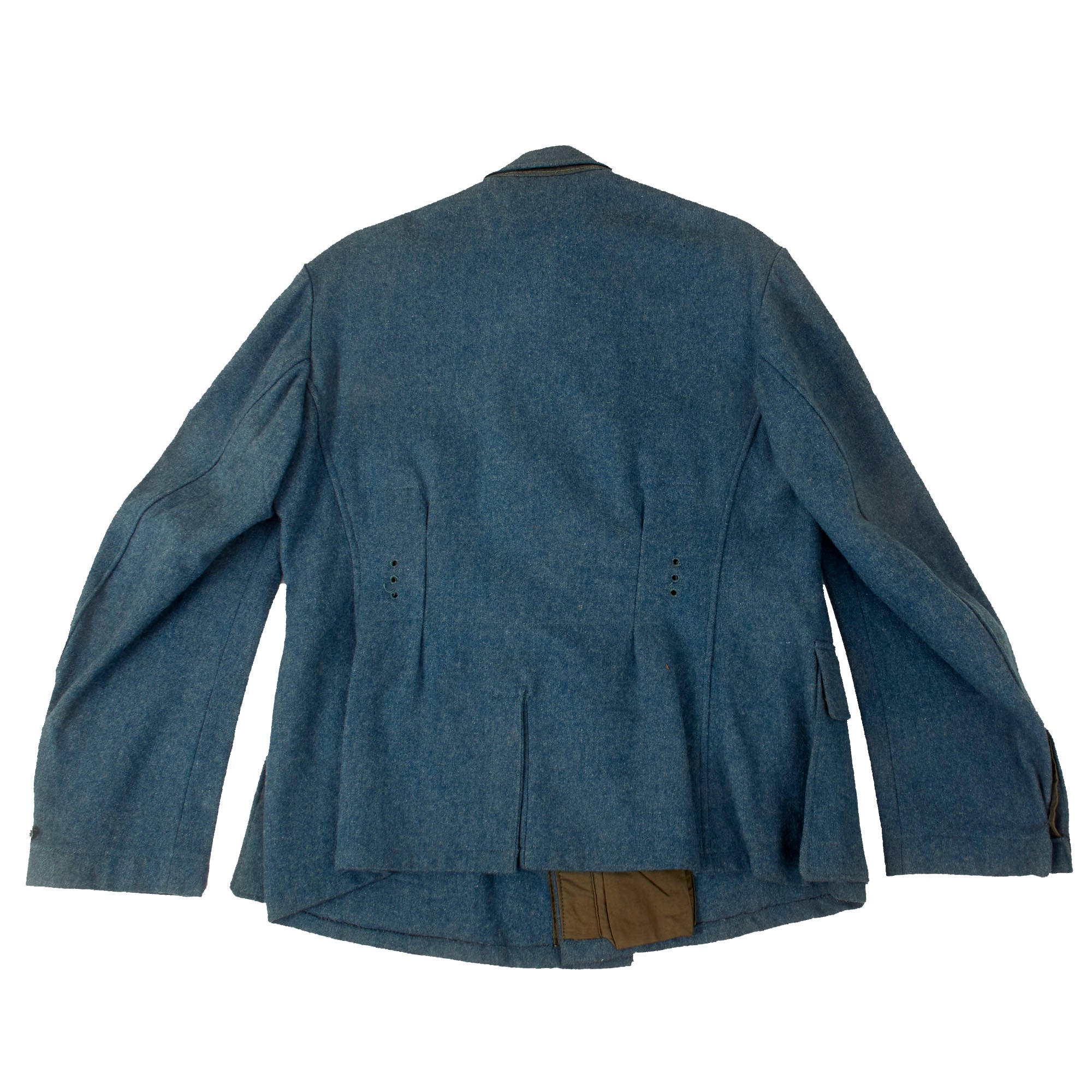 The interior is partially lined with lovely olive tan brushed cotton, while the sleeves on this "field tunic" are unlined. There are no internal pockets save for the bandage pocket" on the inner right bottom. It features four straps for belt hooks, though none are installed, which is correct for a police tunic, as they did not use the suspensions straps that the Army did, but would carry a fair amount of weight on their belts.