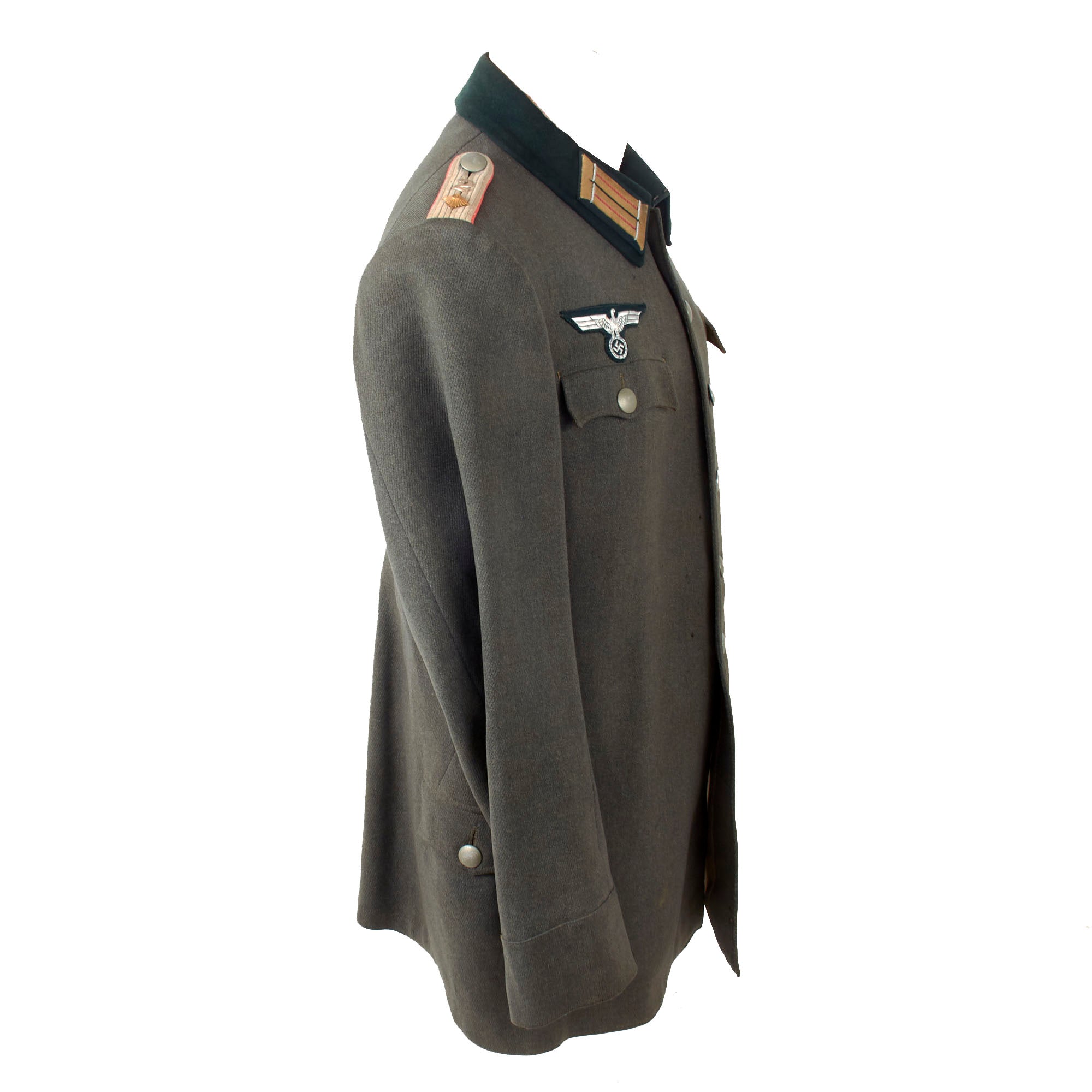 Original Items: Only One Set Available. This is a very nice early pattern German WWII Heer Army Panzer Armored Hauptmann Officer's Tunic, which is in the longer Pre-War Reichswehr Cut, significantly longer than those preferred during wartime, which also features internal pockets. It was most likely made early in the 1930s, but it is always possible that an officer who saw Reichswehr service may have wanted to indicate this by wearing an older style tunic. The tunic shows moderate wear from service and is in very good display condition, offered complete with original breeches.