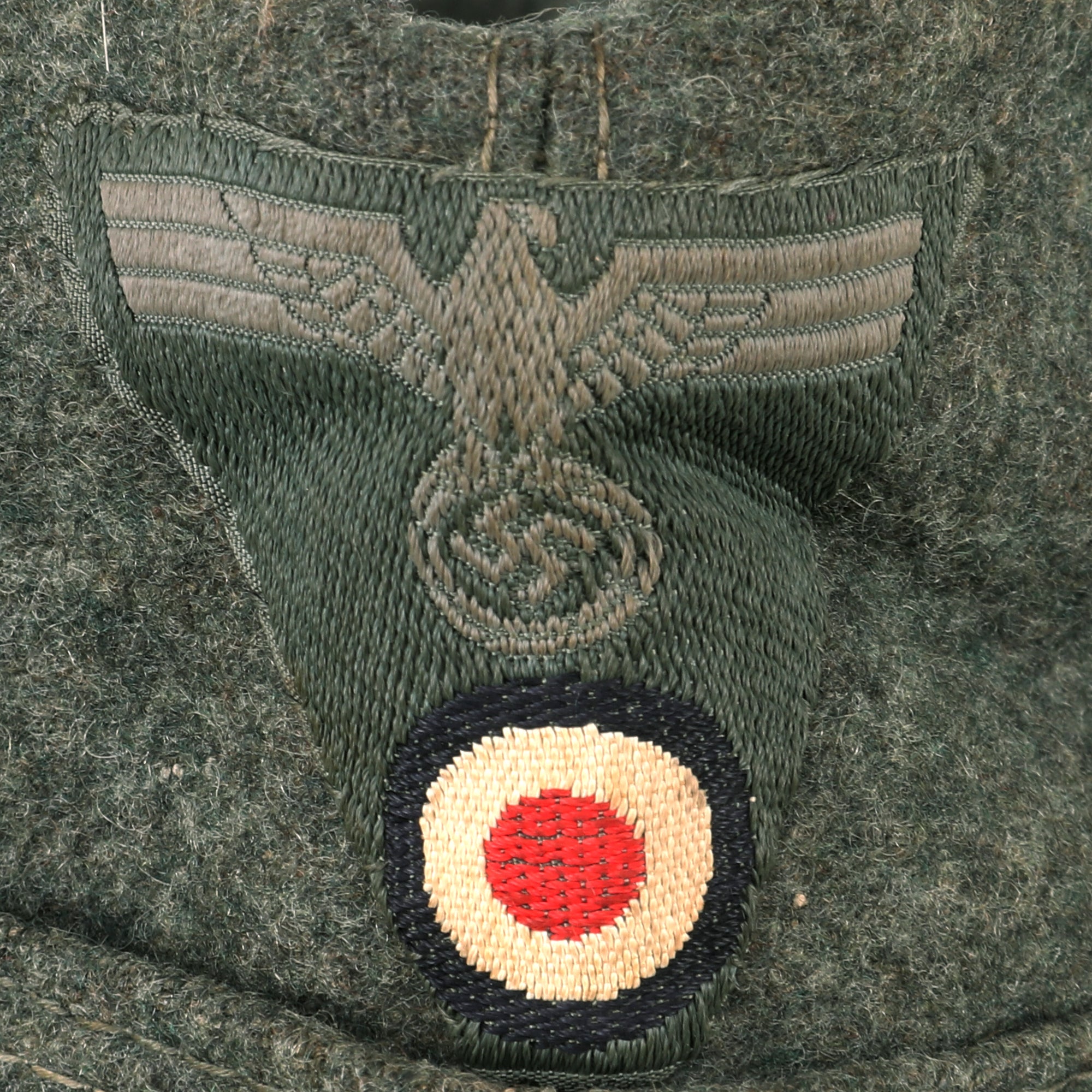 • Original Item: Only One Available. This is a lovely example of a German WWII Heer Army EM-NCO M38 overseas cap (Schiffchen), showing light period wear with a few repairs. The overseas cap, nicknamed in German military slang as Schiffchen, or literally "little ship" as it resembled an up-turned row-boat, was standard issue for all branches of the Heer.