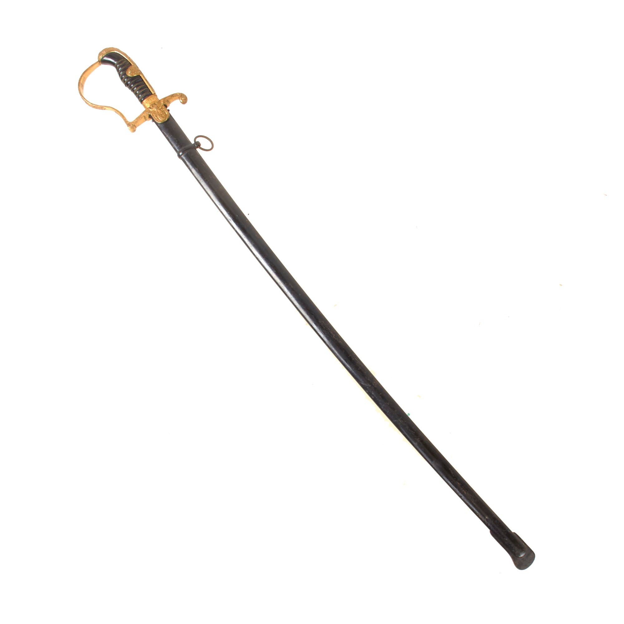 Original Item: Only One Available. This Army Dove Head Sword is a very nice example, produced by the renowned Solingen-based firm of WKC Waffenfabrik, previously Weyersberg Kirschbaum & Cie. It comes complete with its original black enamel steel scabbard, which is also in very good shape.