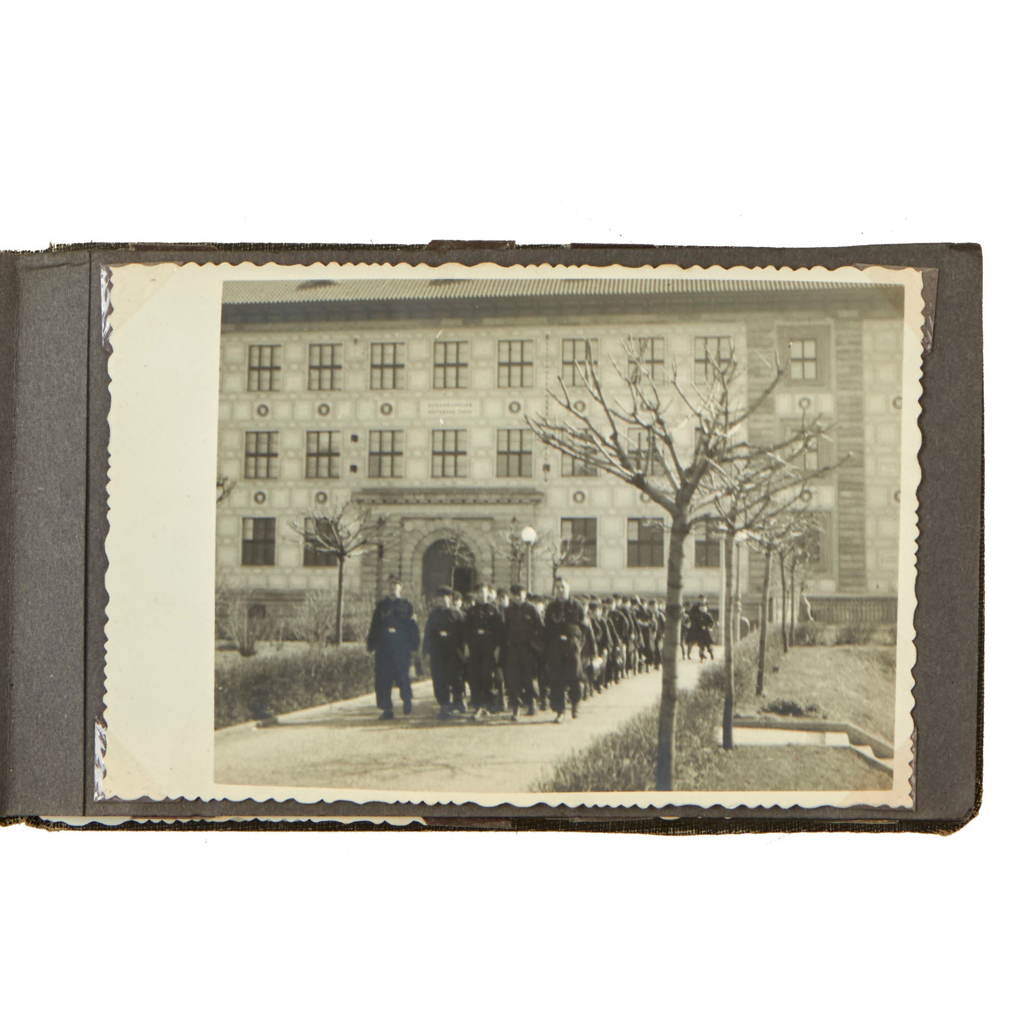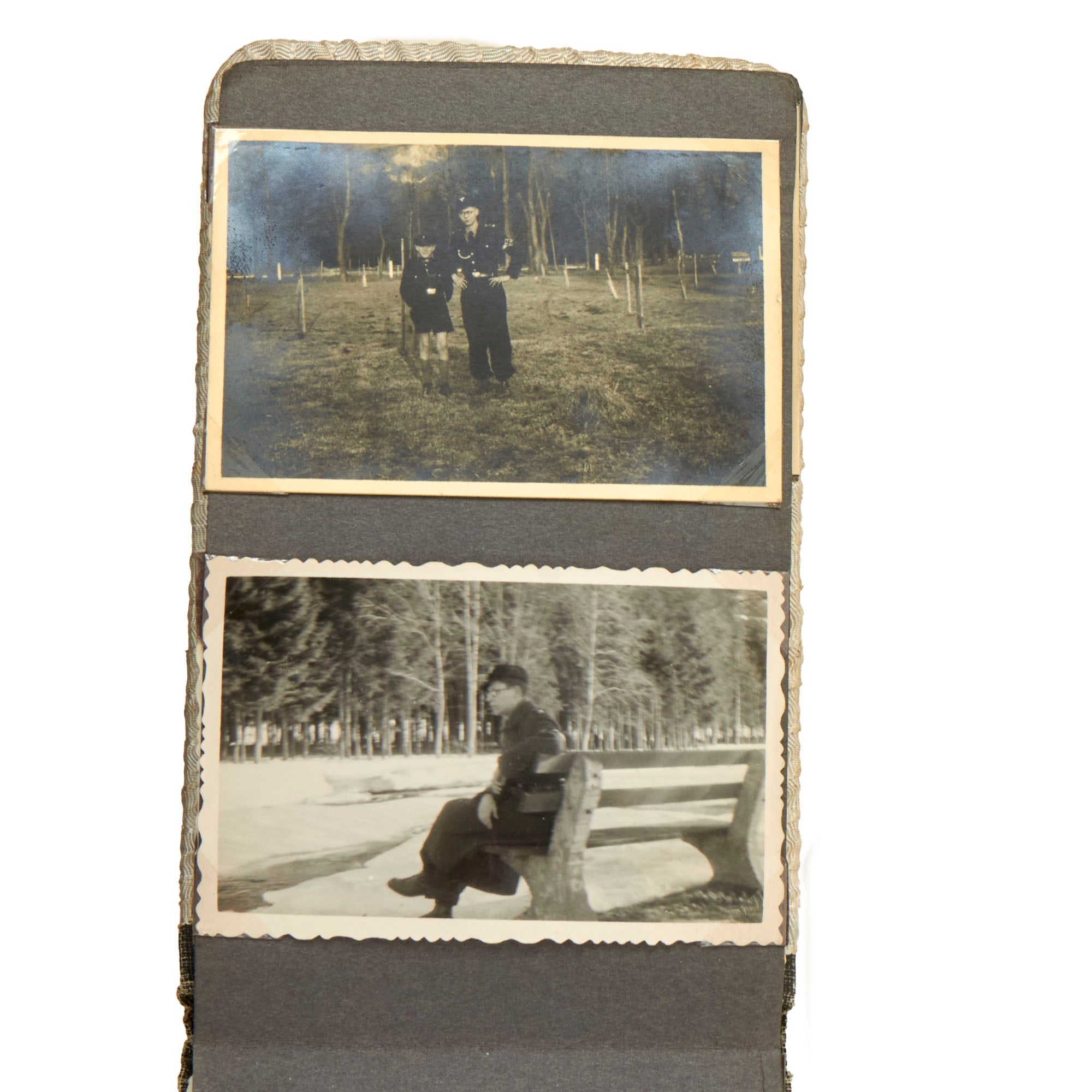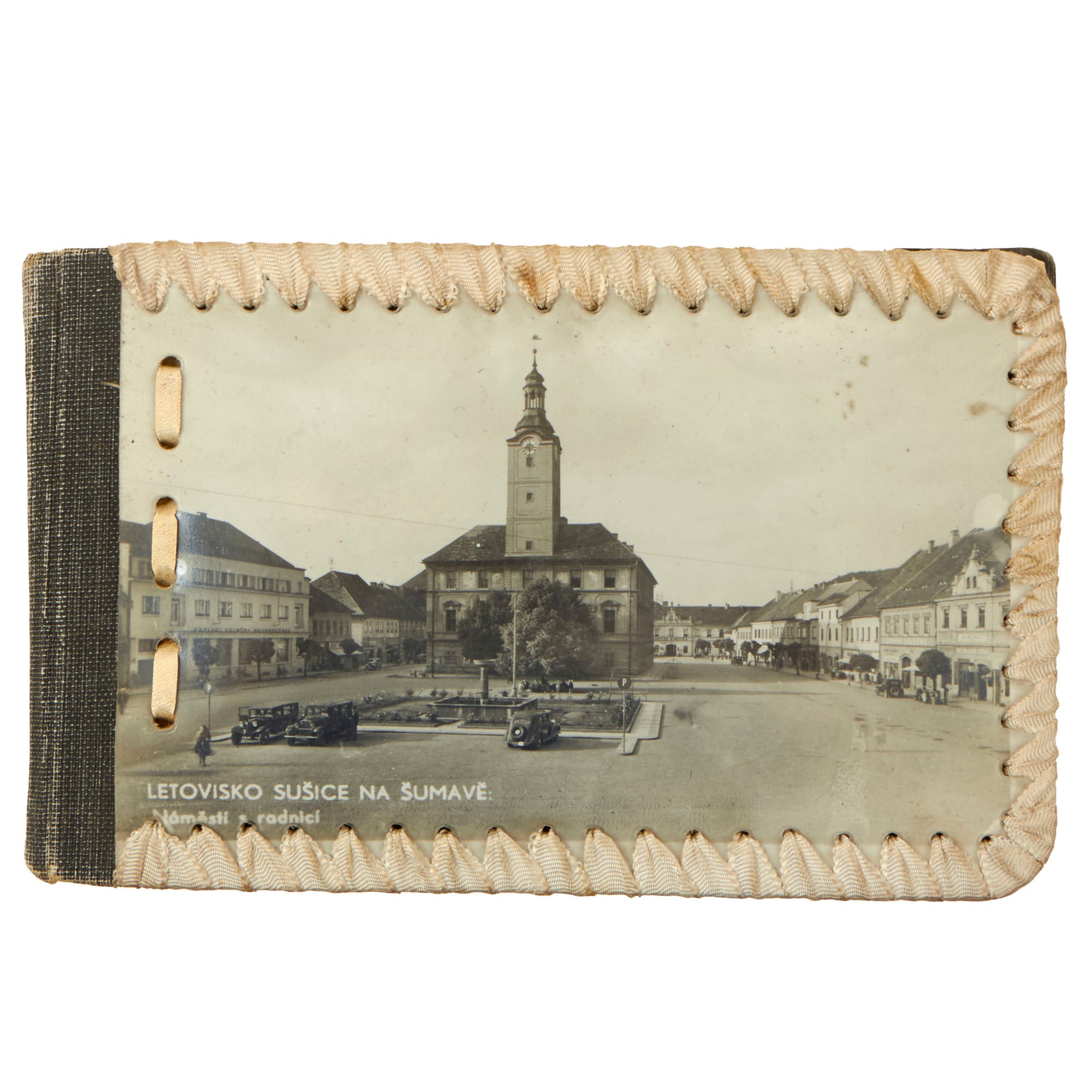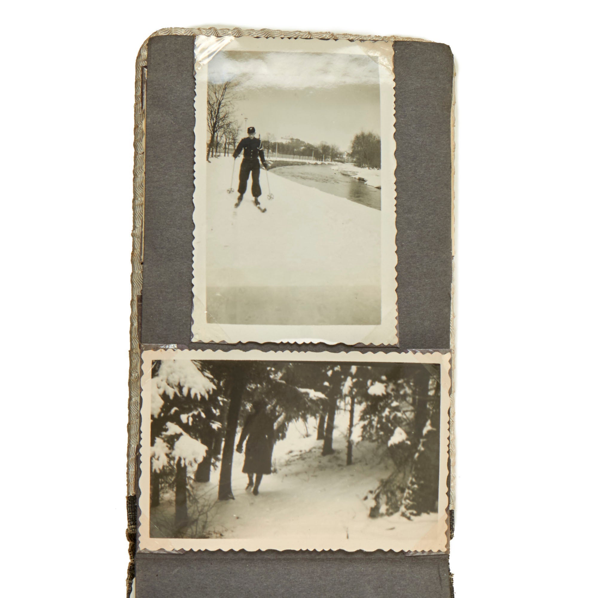 Original Item: One-Of-A-Kind. This is a wonderful personal photo album from a Leader in the HJ National Youth Organization, showing pictures from his time in service, as well as many pictures of the places he visited. The album is covered with black fabric, however it has had a piece of plastic laced to the front, under which is a picture of the Czech resort LETOVISKO SUŠICE NA ŠUMAVĚ (Sušice resort in the Šumava Mountains). It is a relatively small album compared to most we handle, measuring approximately 6" x 3 5/8", and is a bit worn around the edge, so this is not an album that spent its live in a closet.