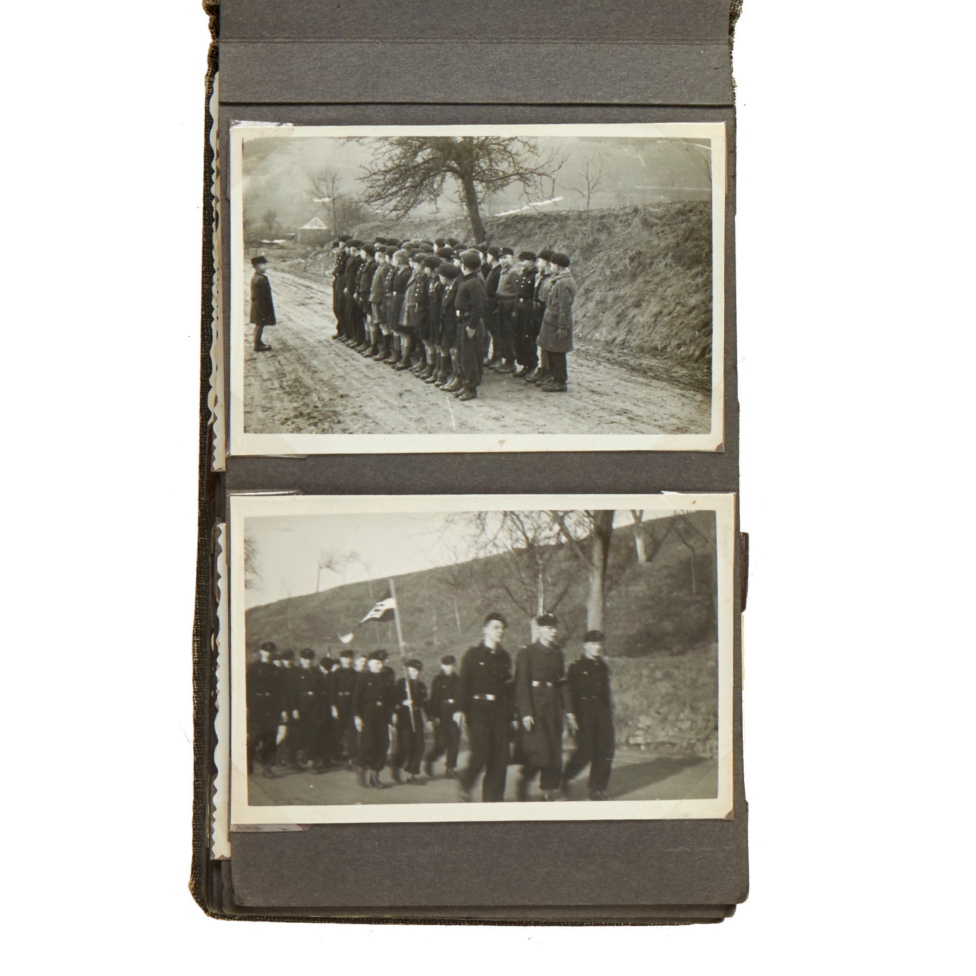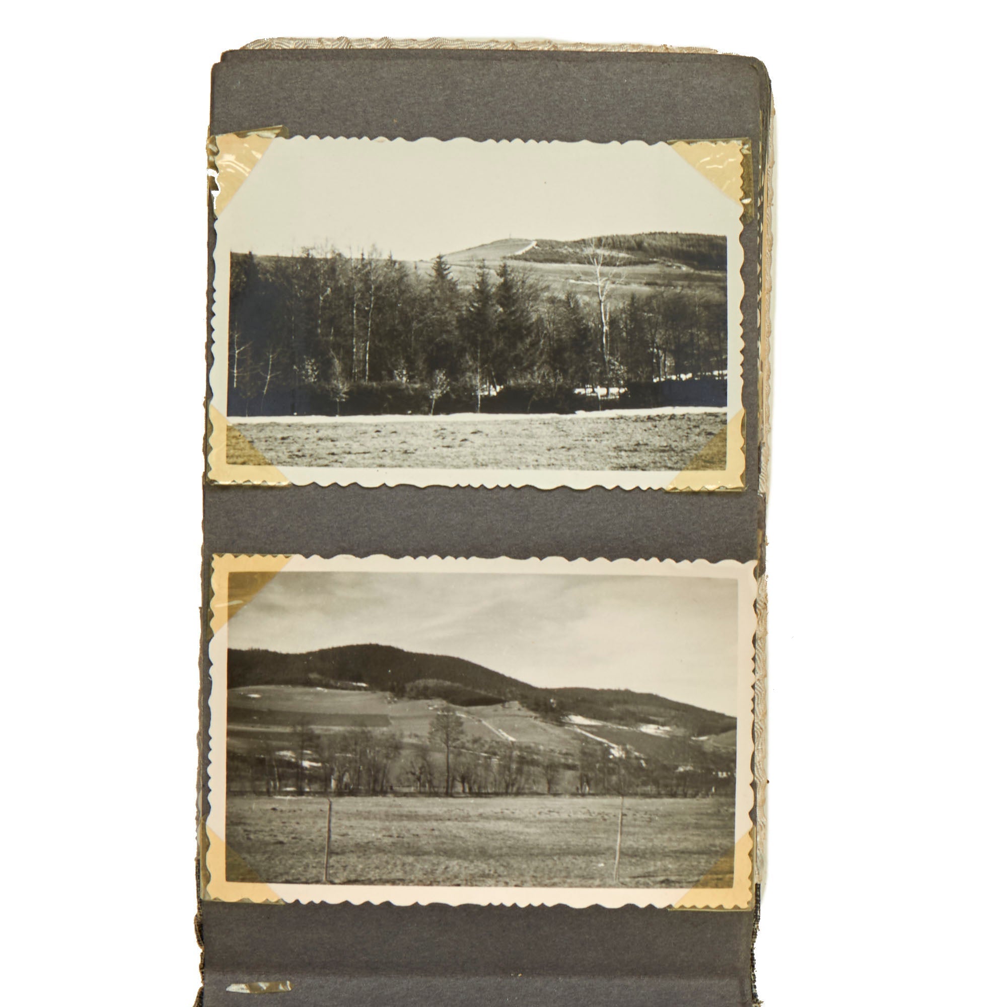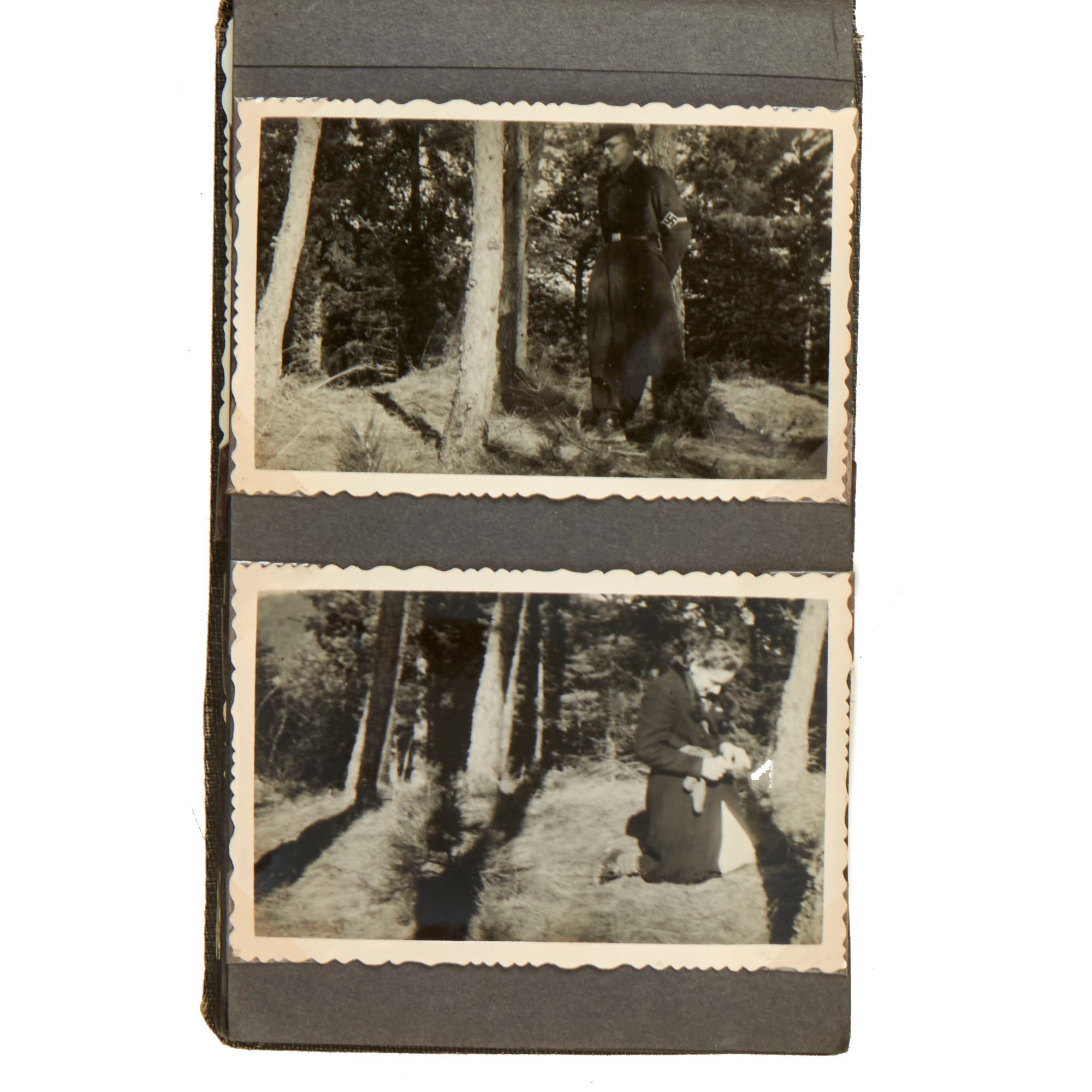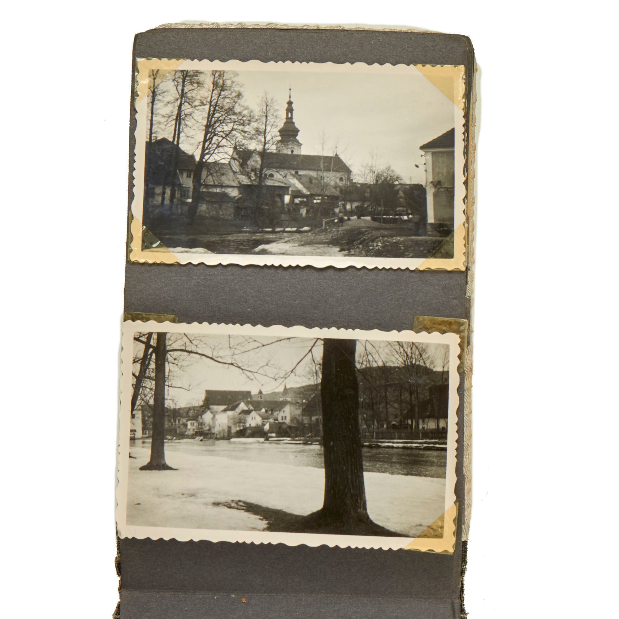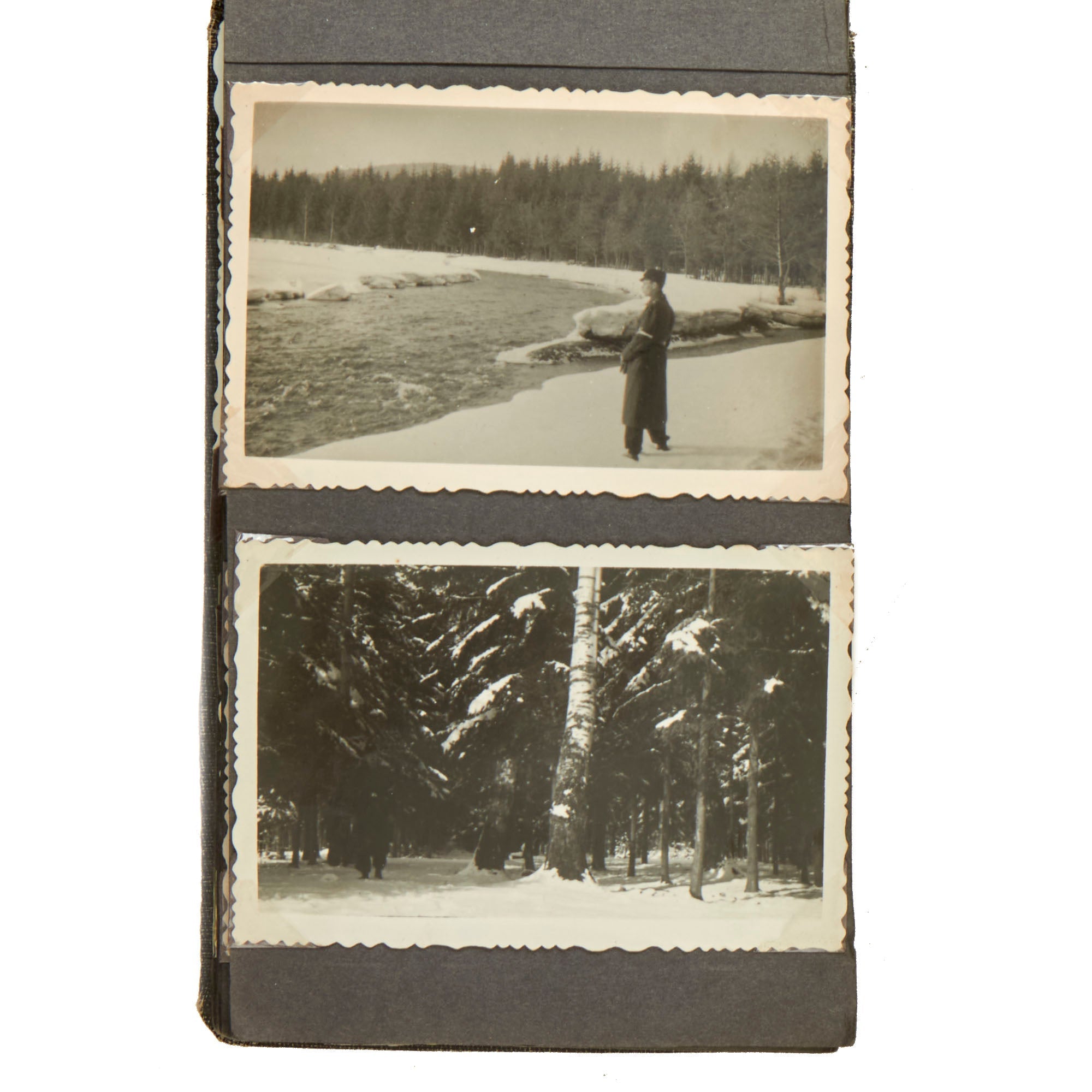 Original Item: One-Of-A-Kind. This is a wonderful personal photo album from a Leader in the HJ National Youth Organization, showing pictures from his time in service, as well as many pictures of the places he visited. The album is covered with black fabric, however it has had a piece of plastic laced to the front, under which is a picture of the Czech resort LETOVISKO SUŠICE NA ŠUMAVĚ (Sušice resort in the Šumava Mountains). It is a relatively small album compared to most we handle, measuring approximately 6" x 3 5/8", and is a bit worn around the edge, so this is not an album that spent its live in a closet.
