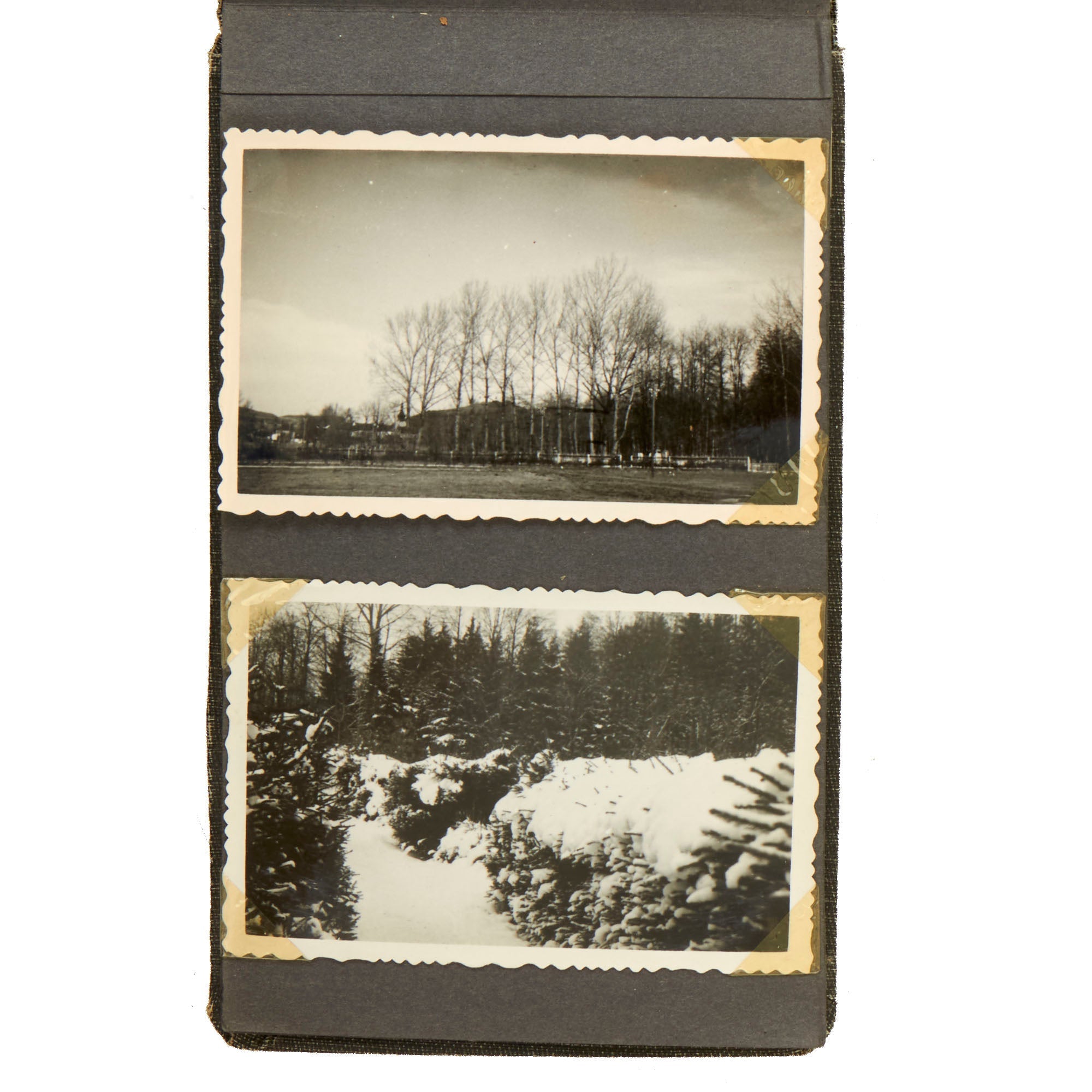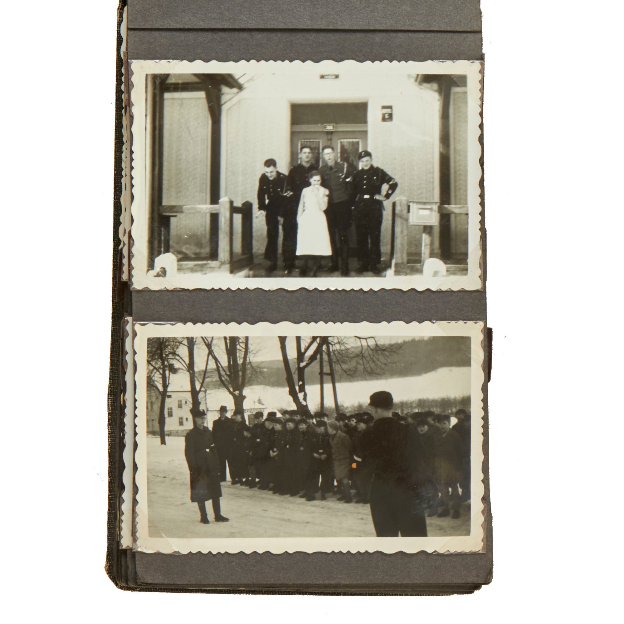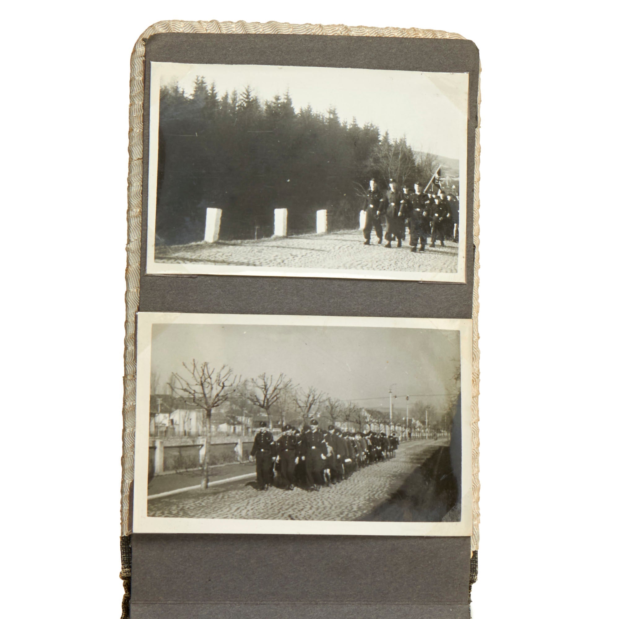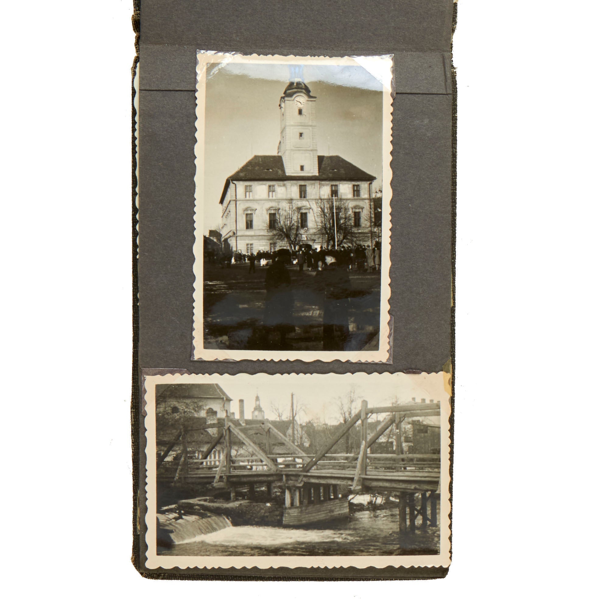 Original Item: One-Of-A-Kind. This is a wonderful personal photo album from a Leader in the HJ National Youth Organization, showing pictures from his time in service, as well as many pictures of the places he visited. The album is covered with black fabric, however it has had a piece of plastic laced to the front, under which is a picture of the Czech resort LETOVISKO SUŠICE NA ŠUMAVĚ (Sušice resort in the Šumava Mountains). It is a relatively small album compared to most we handle, measuring approximately 6" x 3 5/8", and is a bit worn around the edge, so this is not an album that spent its live in a closet.